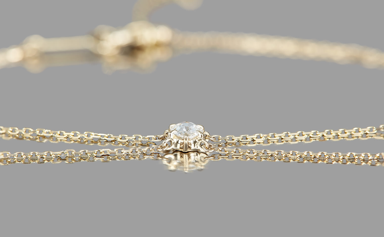 Diamonds in fluid motion, their light tracing a delicate radiance. The Golden Pavilion Bracelet reflects architectural elegance, a shimmering tribute to balance, beauty, and precision.