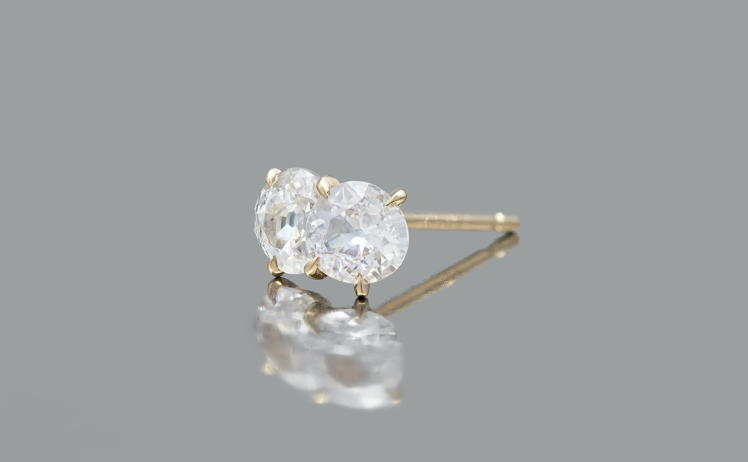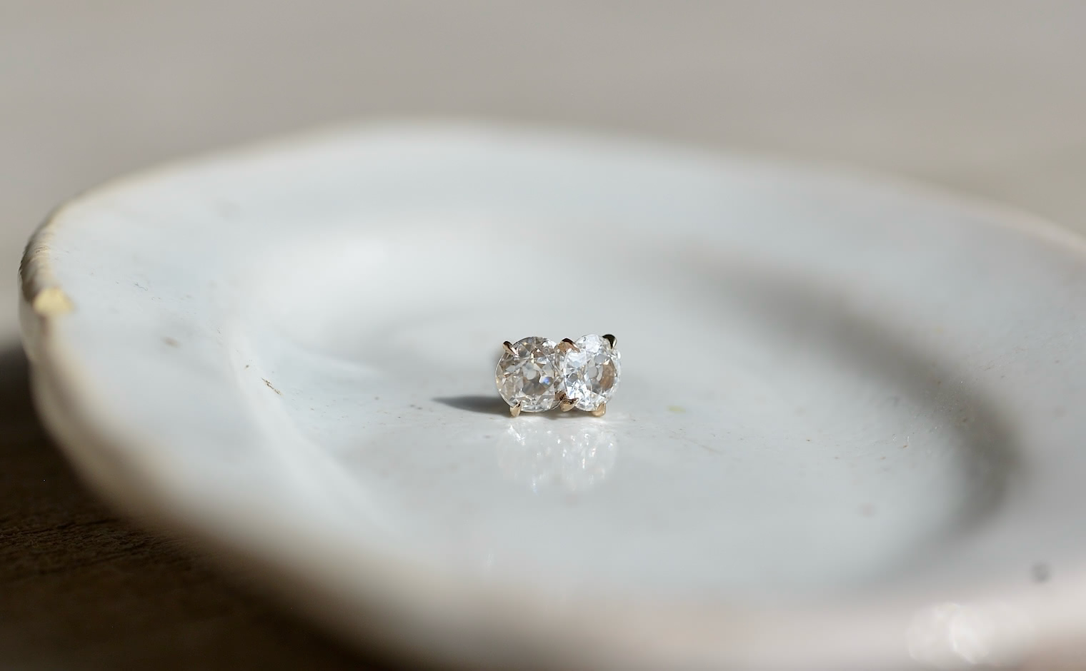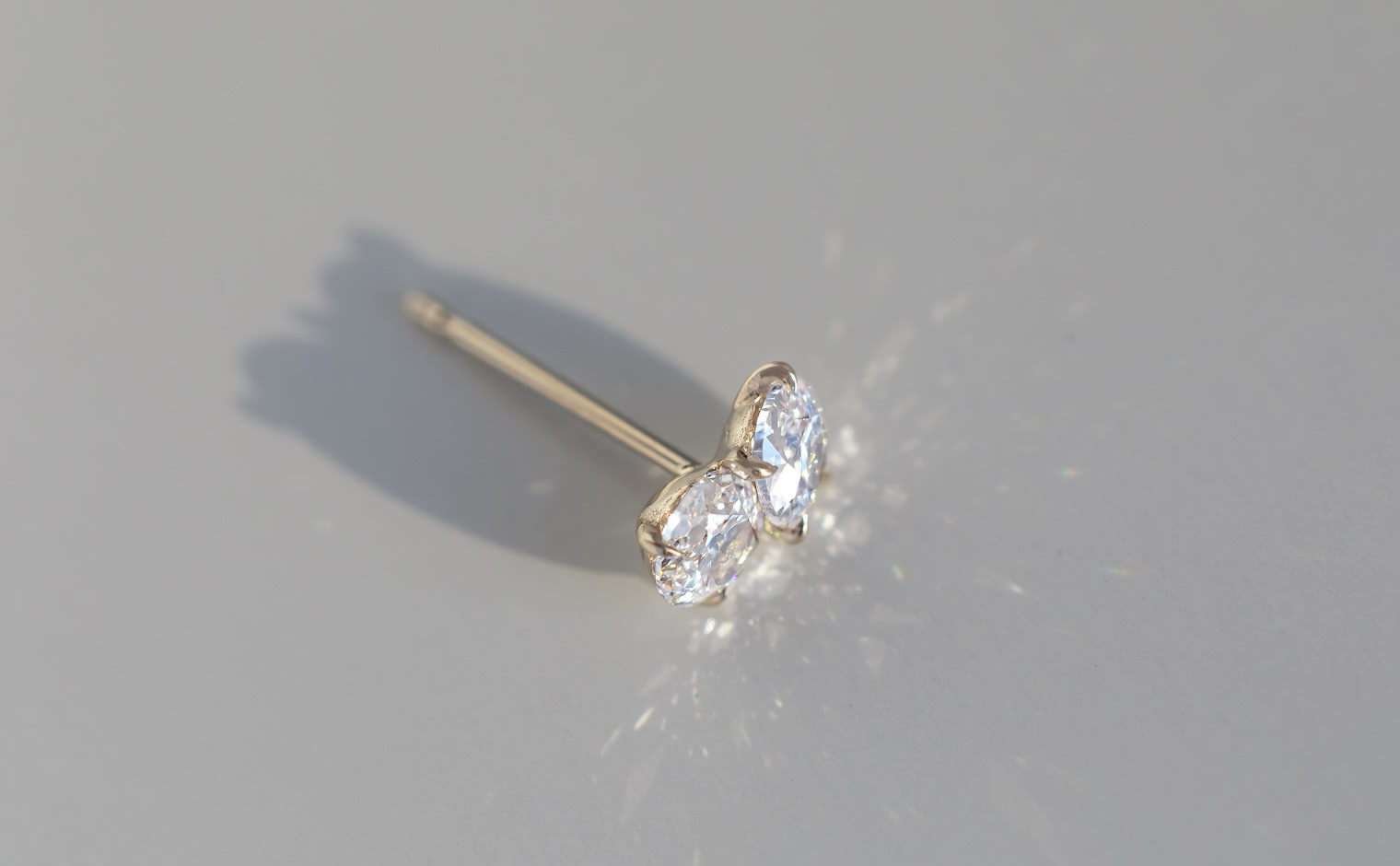 A double daydream. With its two antique-cut dazzling snow white diamonds meticulously placed in the center of the crafted beige gold setting, this dainty and sweet Diamond Calyx Stud – Antique flies you away to a place of whimsical daydreams.