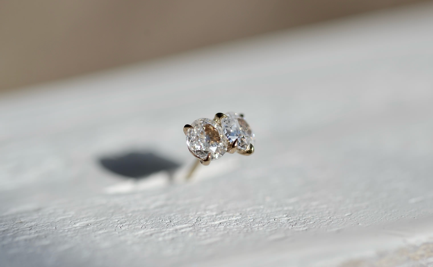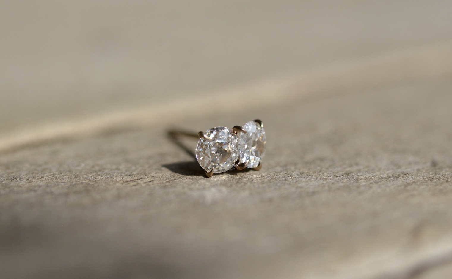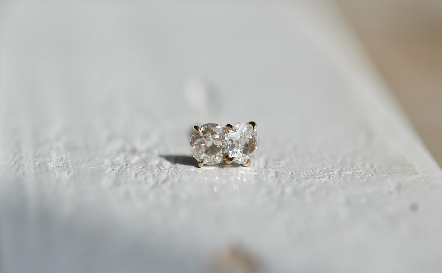 A double daydream. With its two antique-cut dazzling snow white diamonds meticulously placed in the center of the crafted beige gold setting, this dainty and sweet Diamond Calyx Stud – Antique flies you away to a place of whimsical daydreams.
