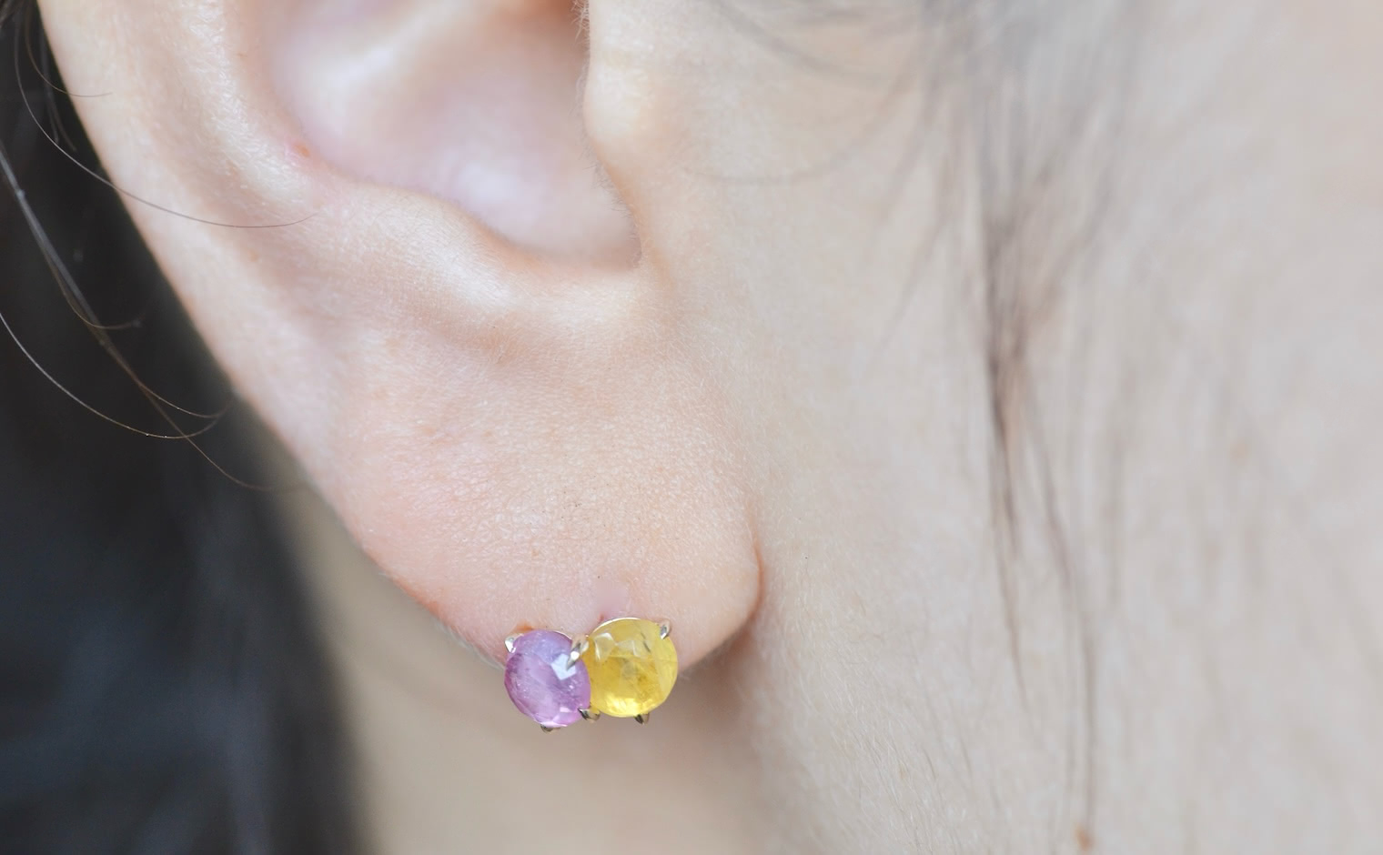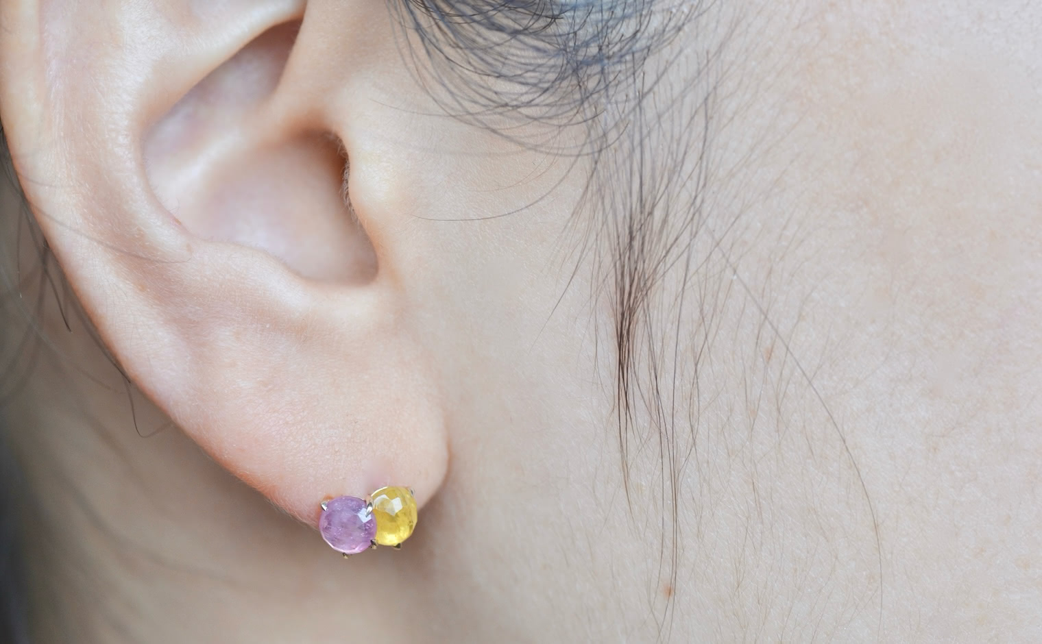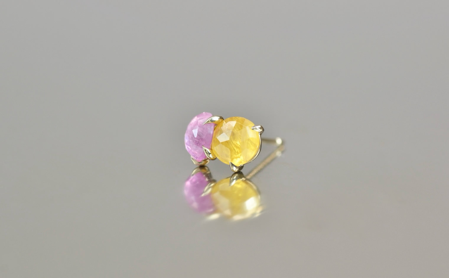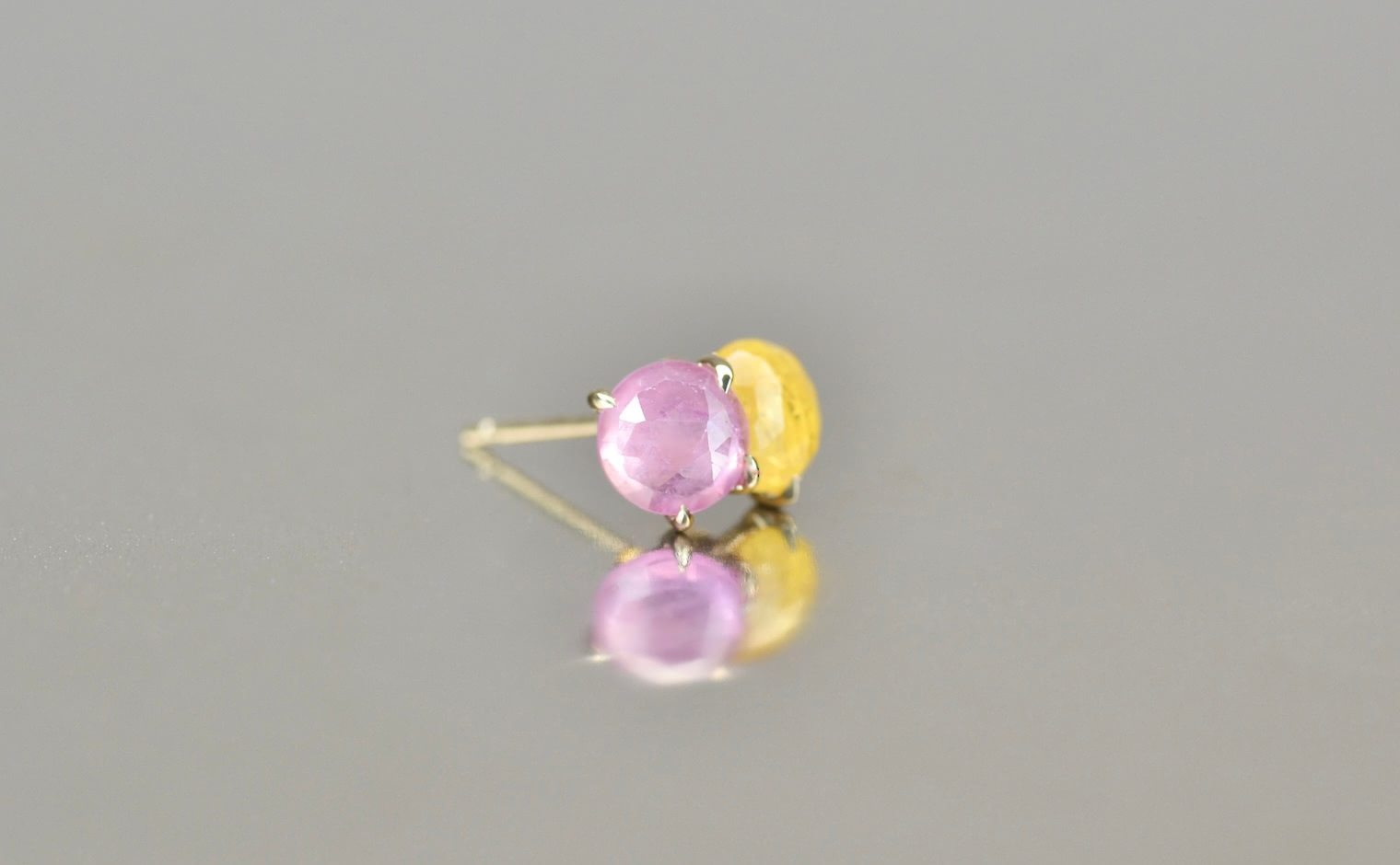 Dewy pinks and yellows are paired up in this effortlessly beautiful earring.