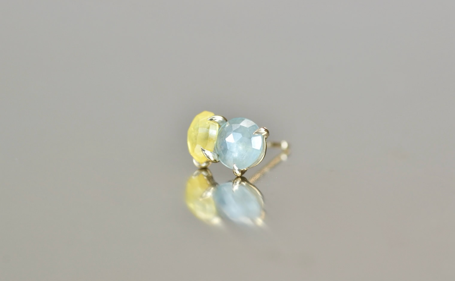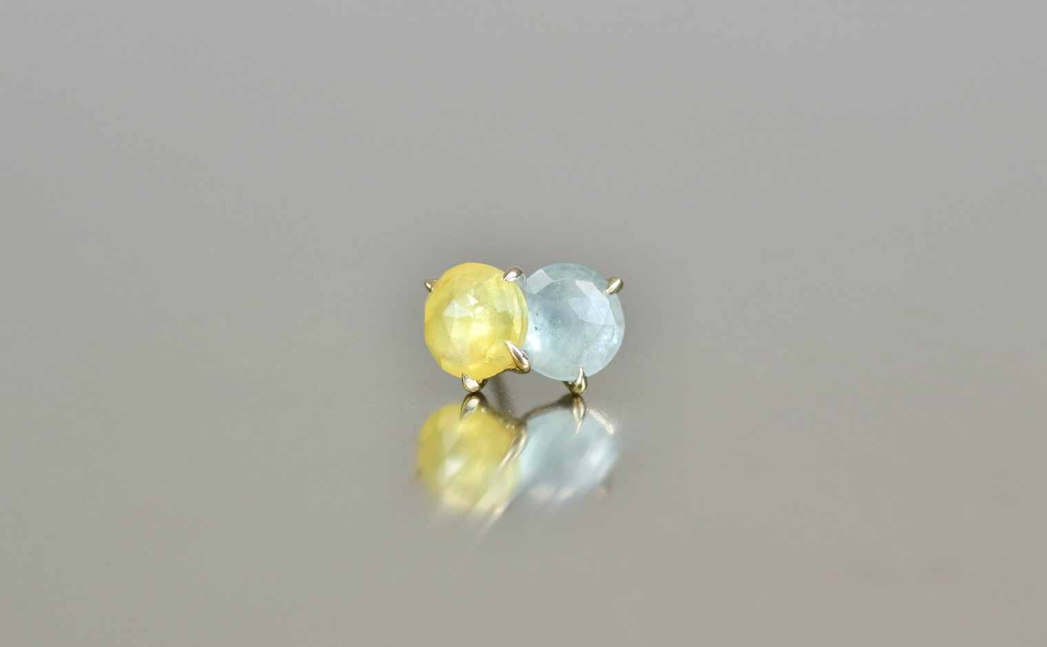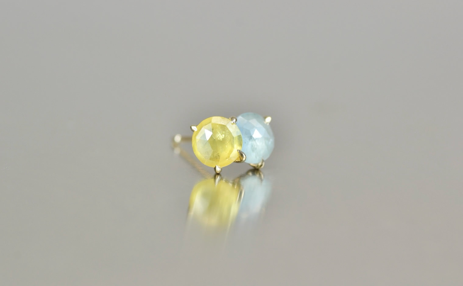 Two opaque sapphires are paired with an expert eye for and set like petals gently overlapping one another.