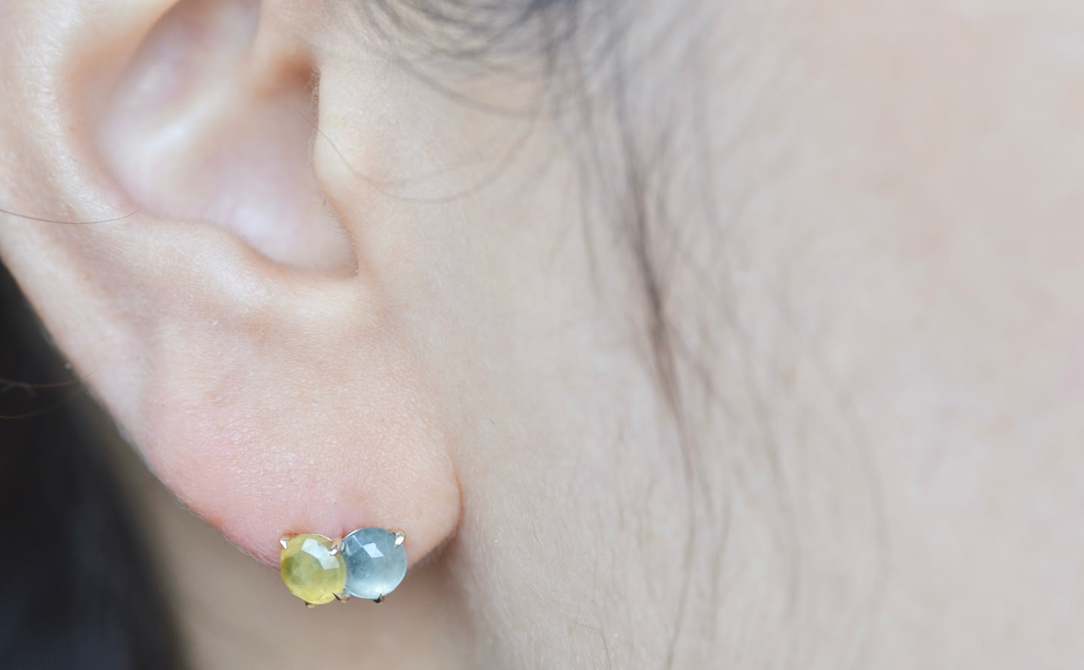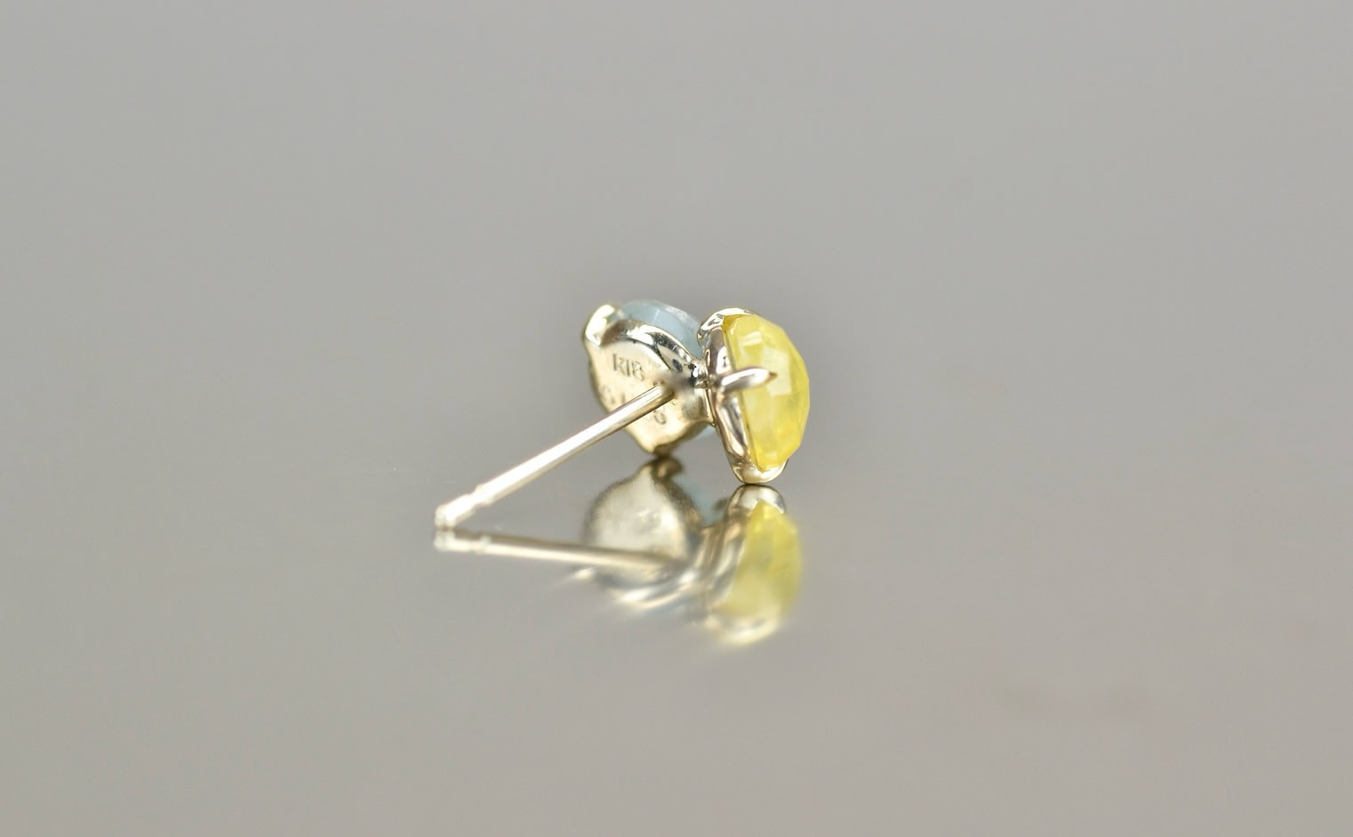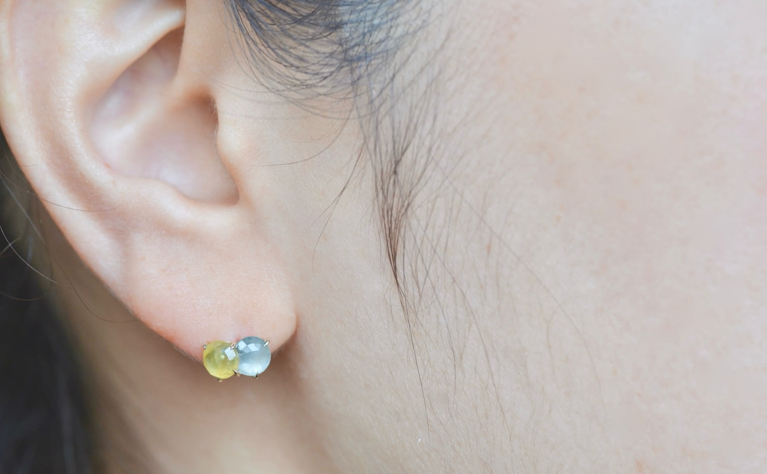 Two opaque sapphires are paired with an expert eye for and set like petals gently overlapping one another.