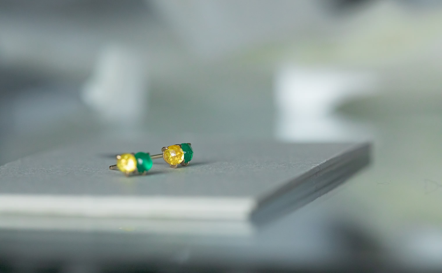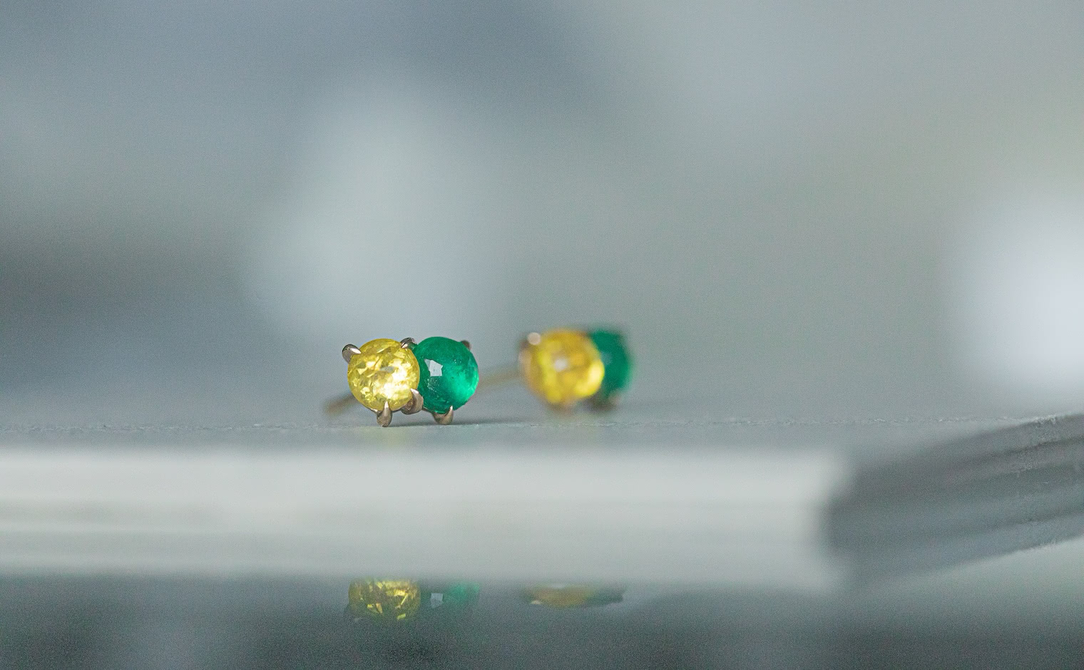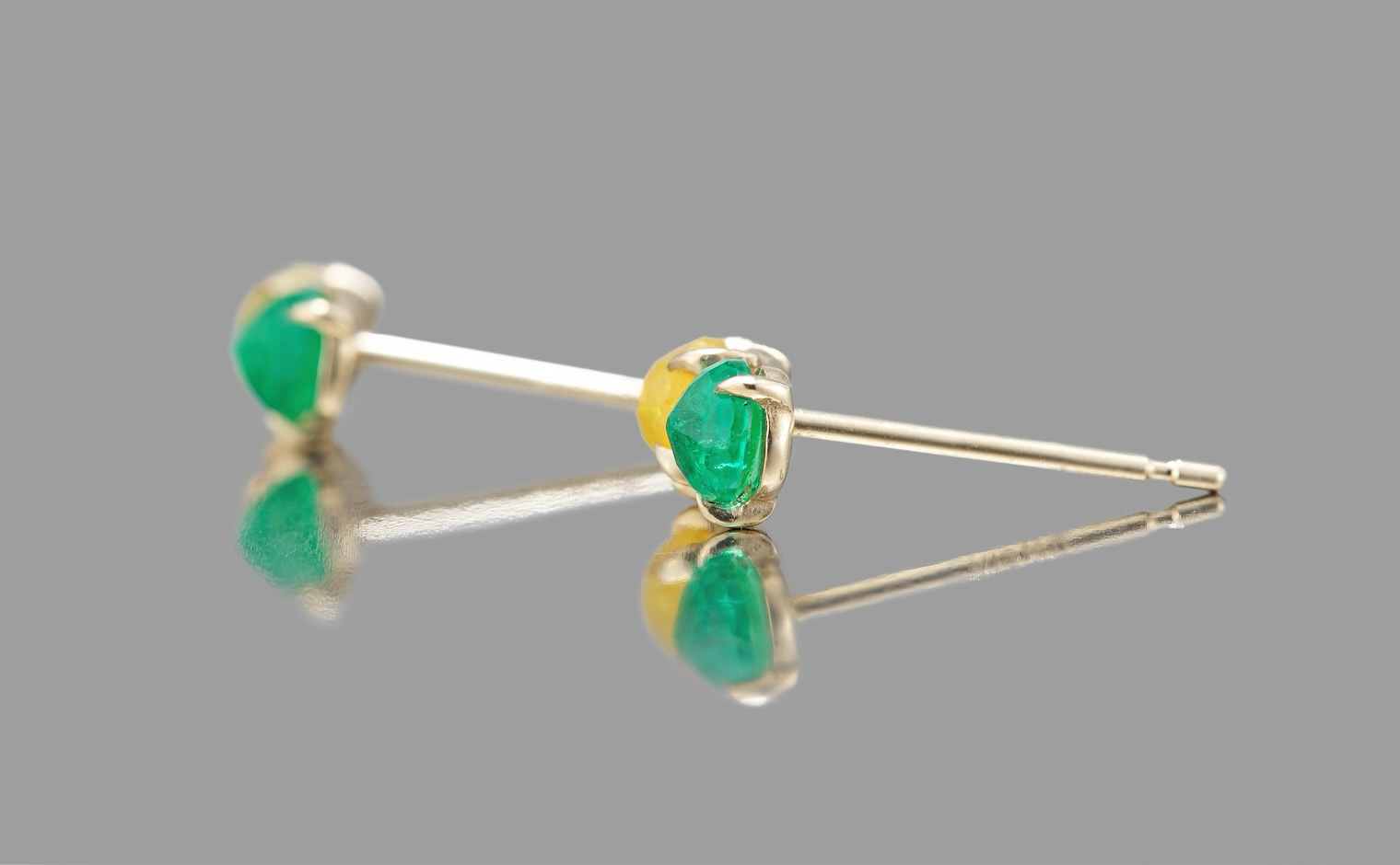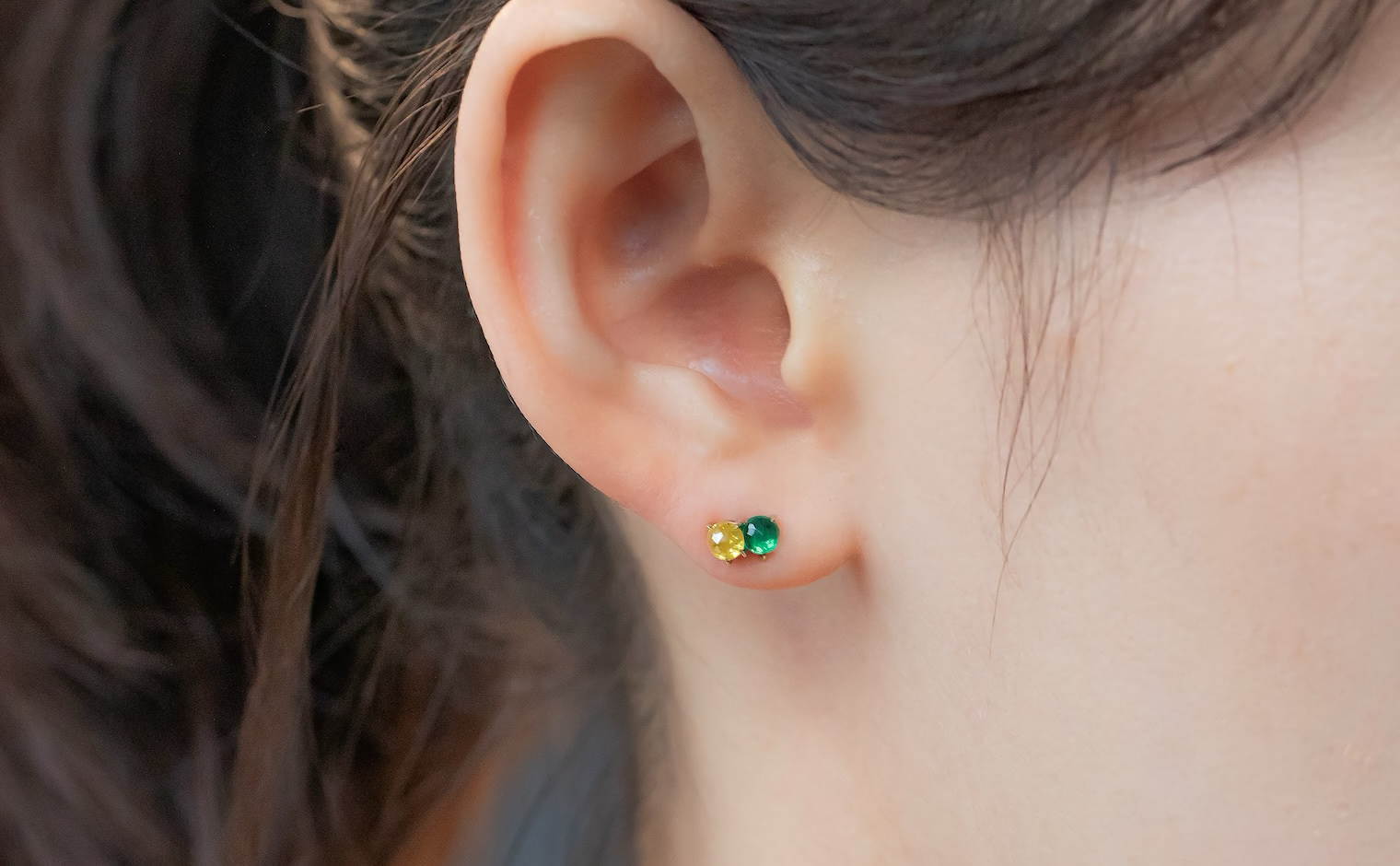 Kismet of simplistic beauty and vibrant elegance. Two-of-a-kind alluring stones in one masterful creation. With their breathtaking, striking emerald green gemstones paired with the brightest of yellow diamonds slightly overlapping against each other on a delicate Beige gold Calyx Setting, the Calyx Studs-Diamond & Emerald delight both the vividly bold and the classically sophisticated.