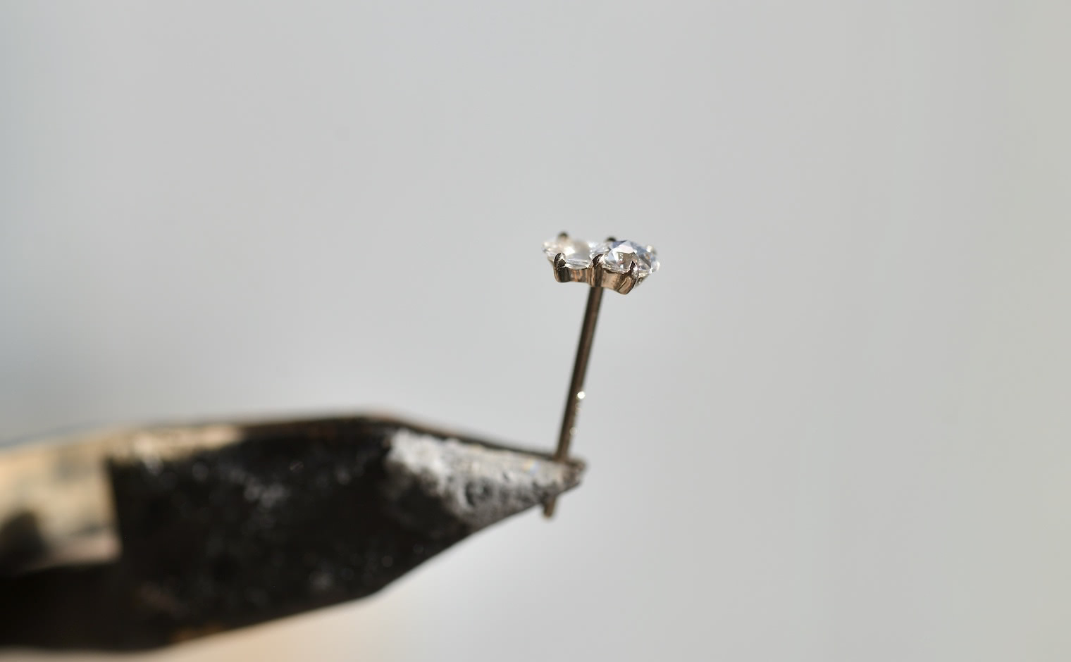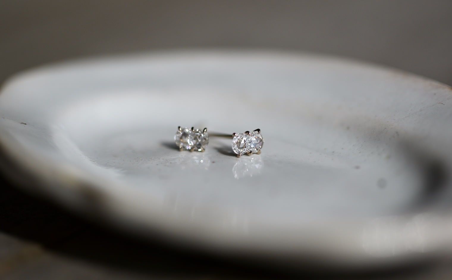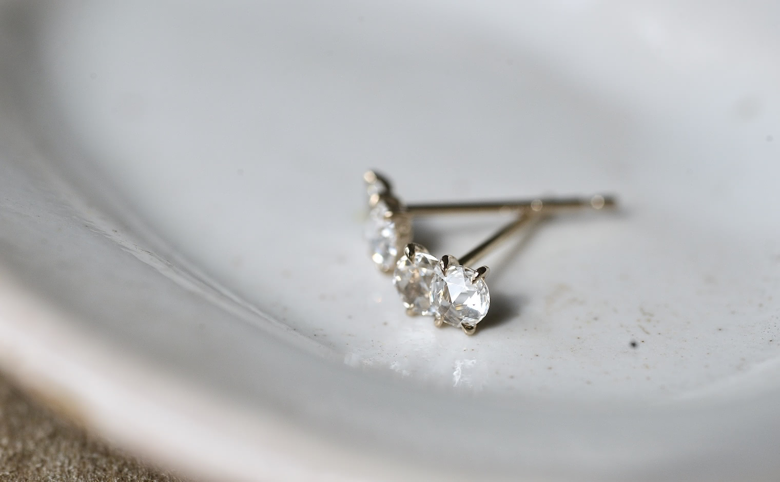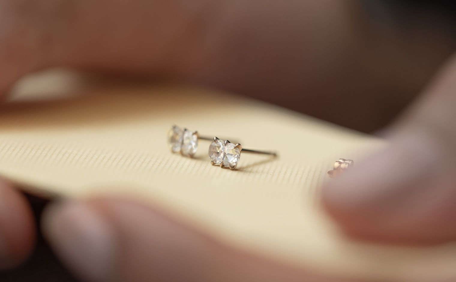 Diamonds in serene rhythm, their light shimmering with soft brilliance. The Calyx Studs–Petite exude timeless sophistication, a graceful expression of artistry and lasting allure.