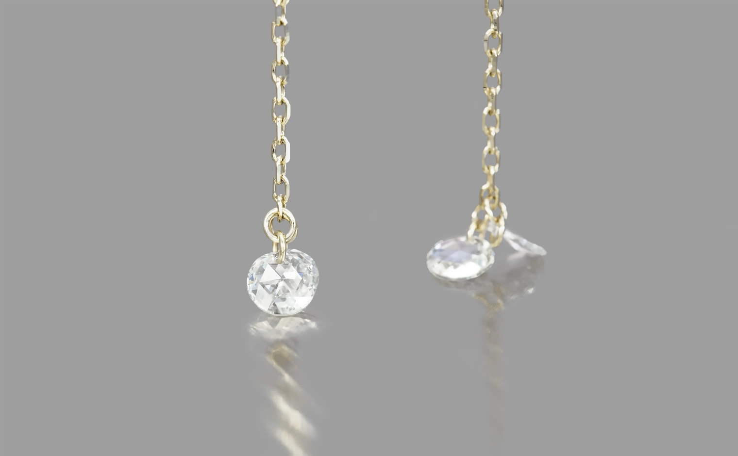 Each diamond swings freely and independently on its own perfect hoop, creating shimmying and dancing movement with your every step. -