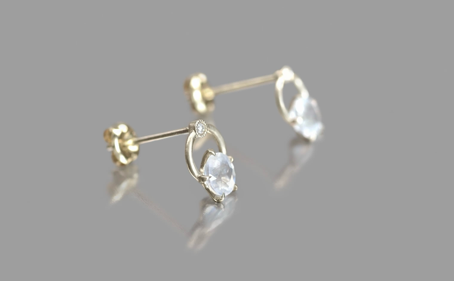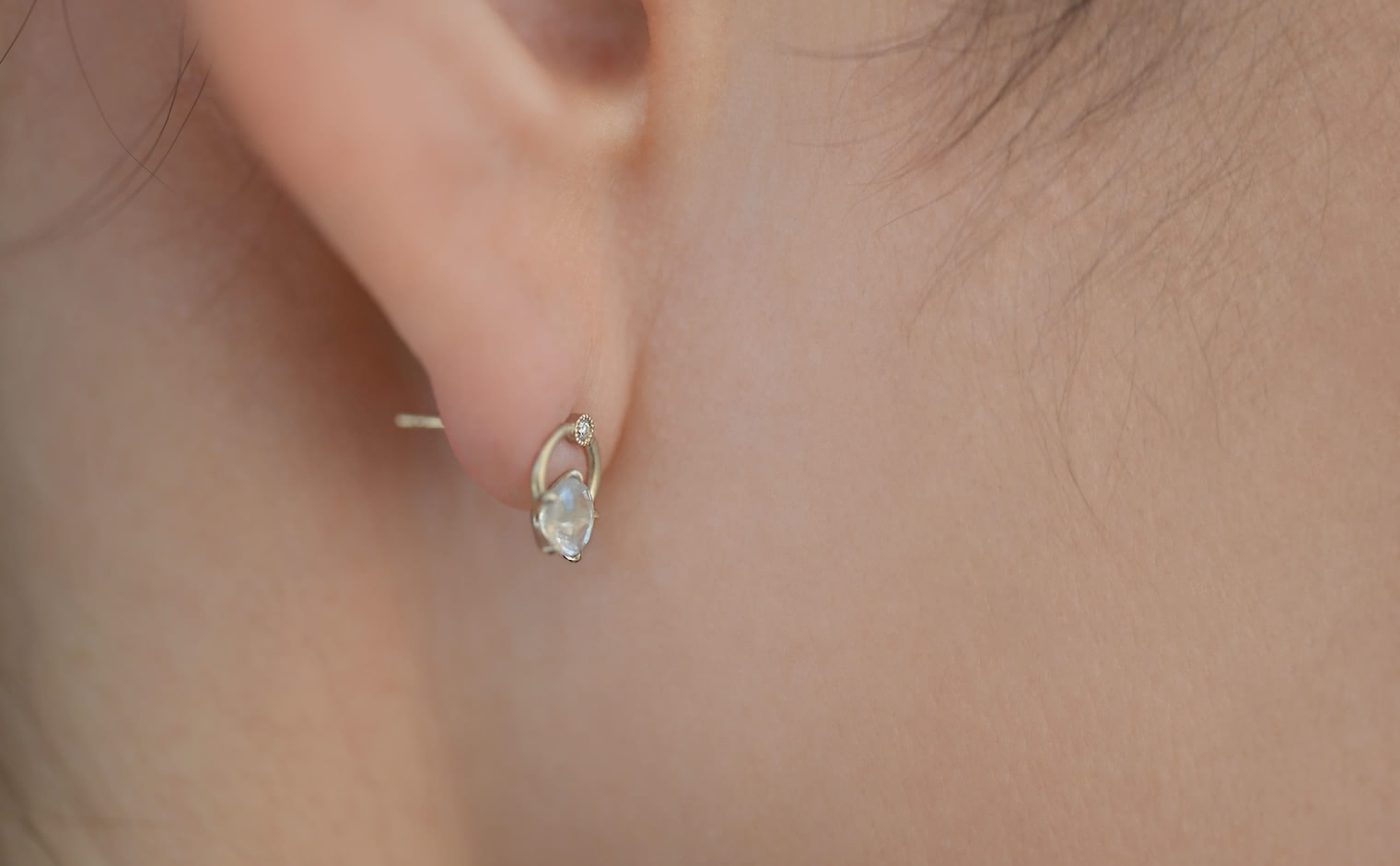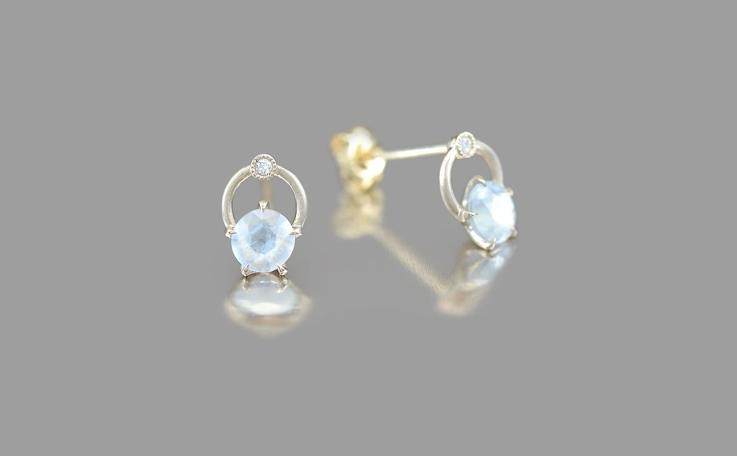 These luminescent moonstones are expertly selected for their adularescence and ability to simply glow against your ear as you wear them.After being carefully faceted and polished, the natural beauties are set in a frame of custom-blended, high-karat gold.