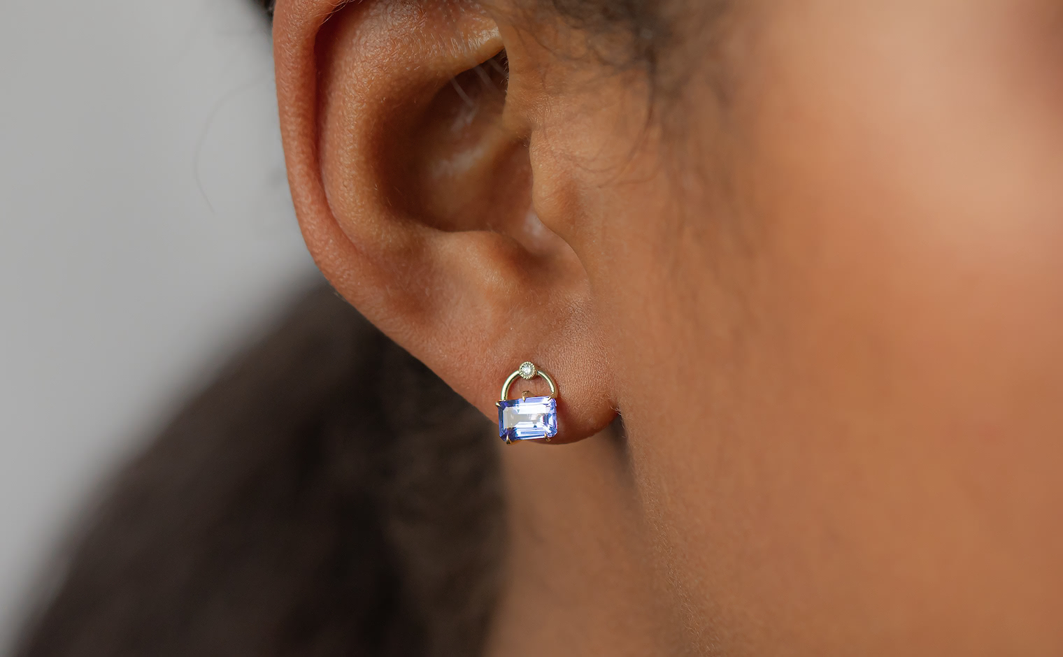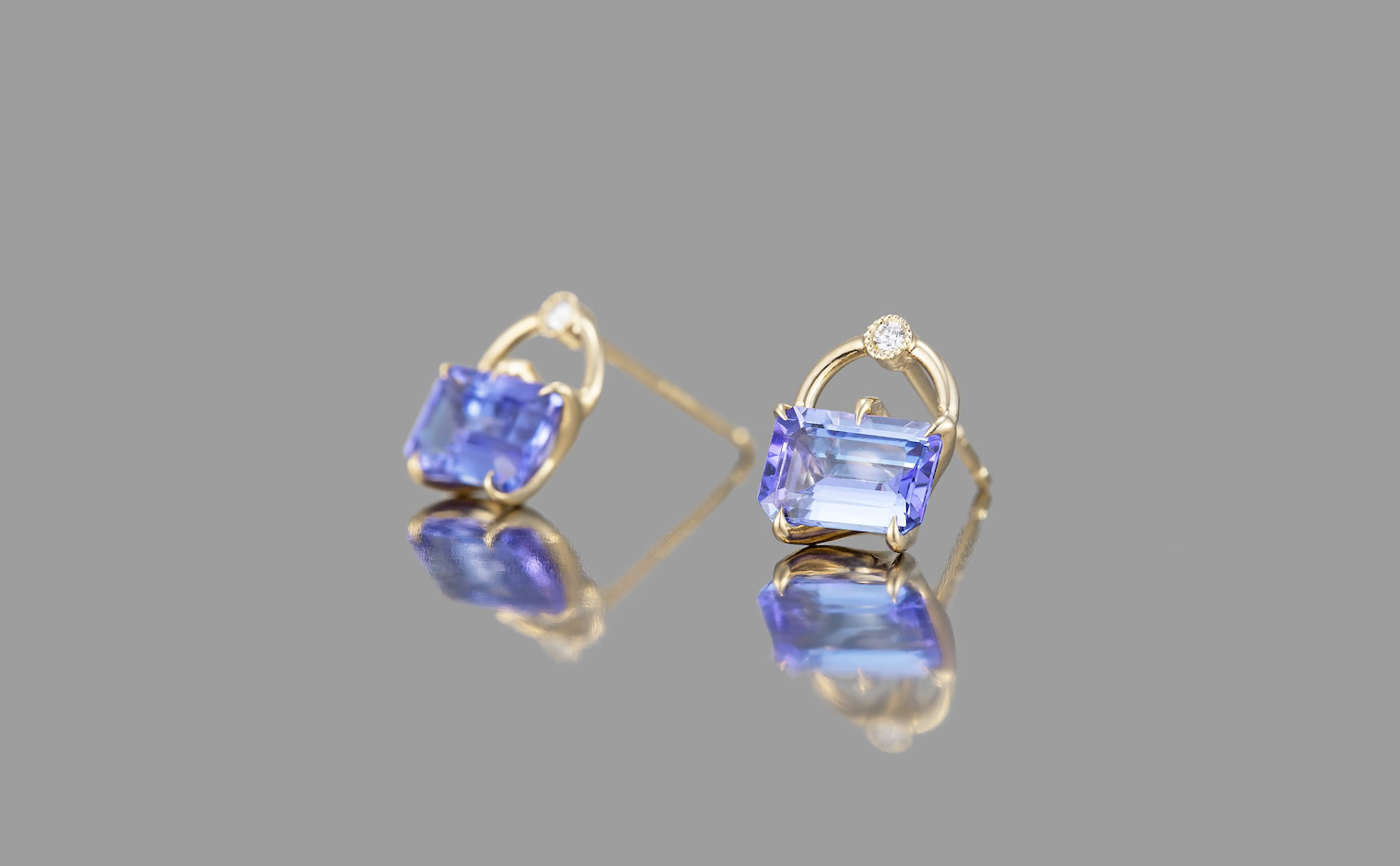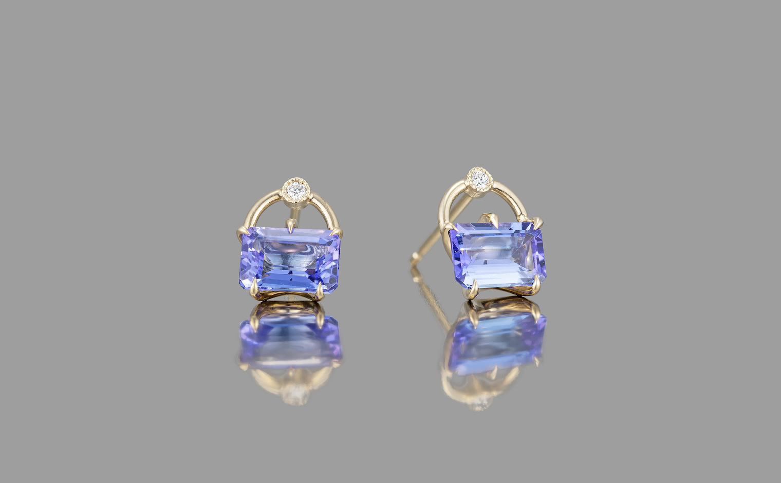 Delectable pretty little things. With a pair of glowing periwinkle Tanzanite gems cut and carefully placed in our signature handcrafted beige gold handle settings accented by sweet diamonds to add a little extra spark, the Handle Studs-Tanzanite elevate your look with their sparkling, sophisticated radiance.