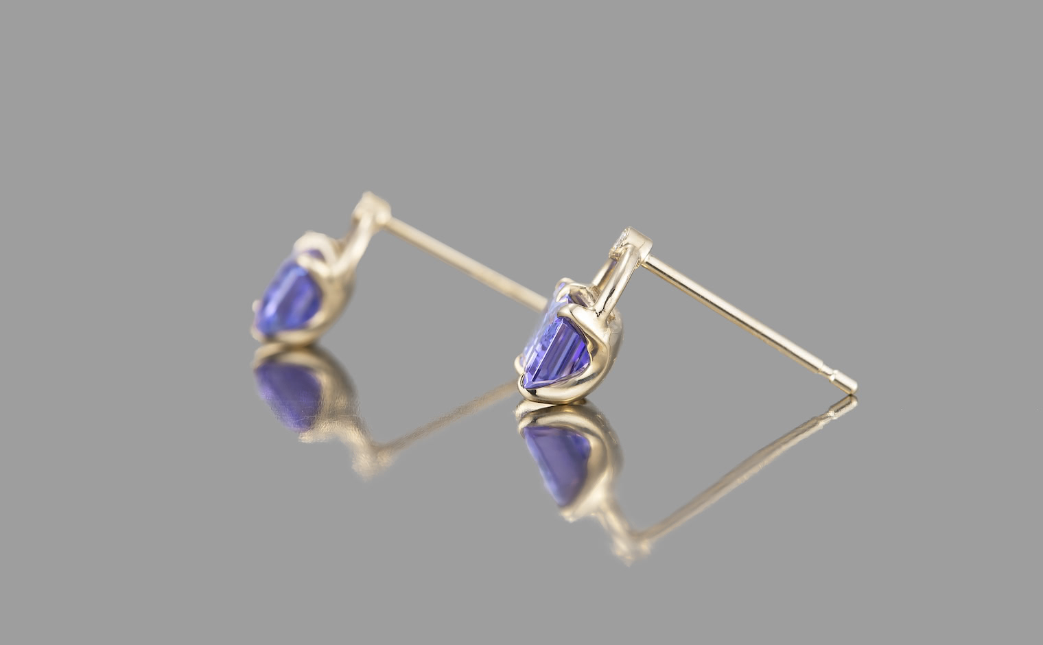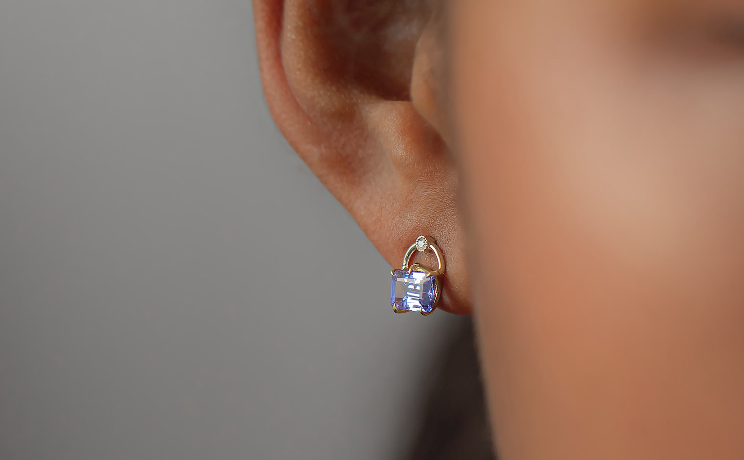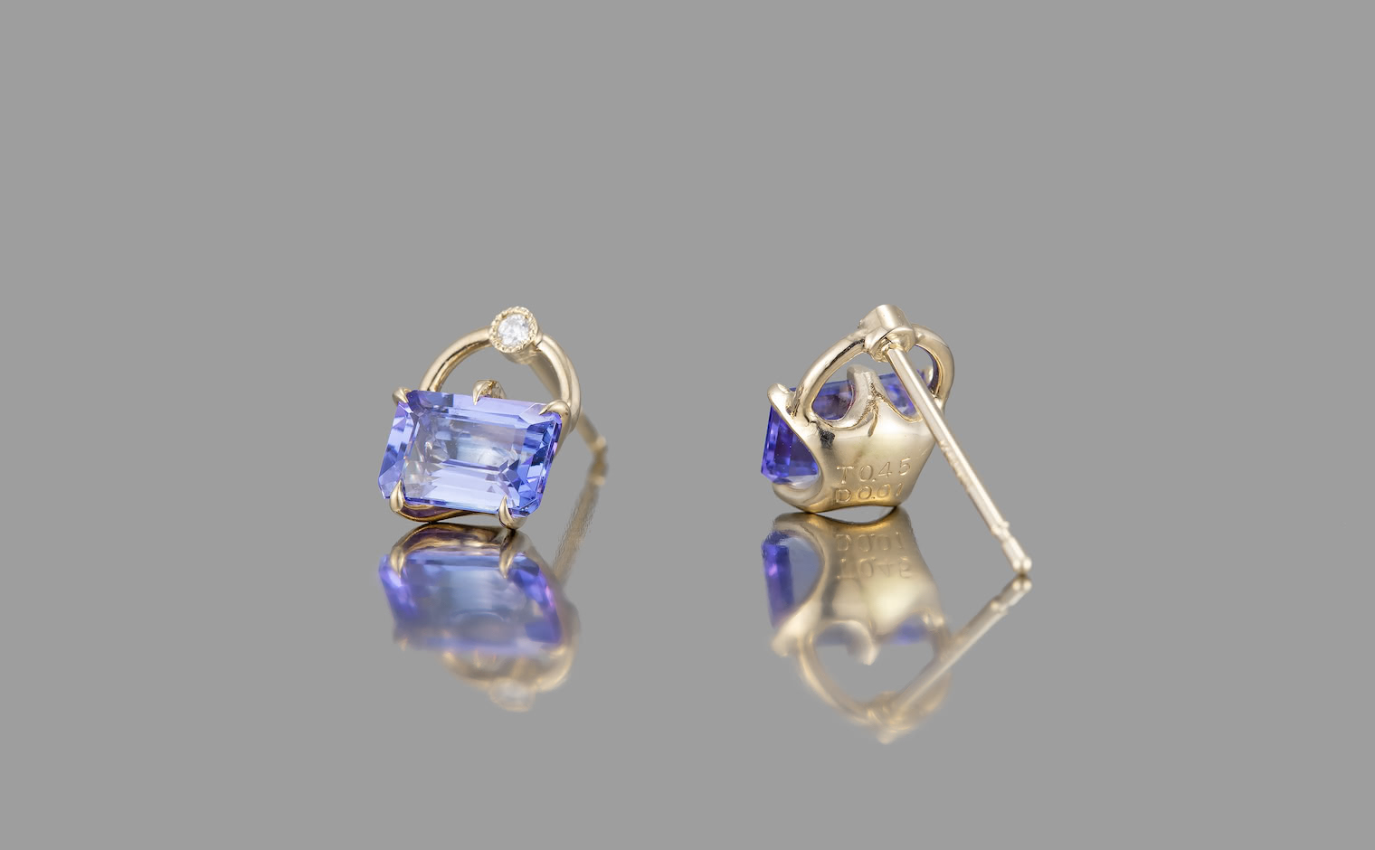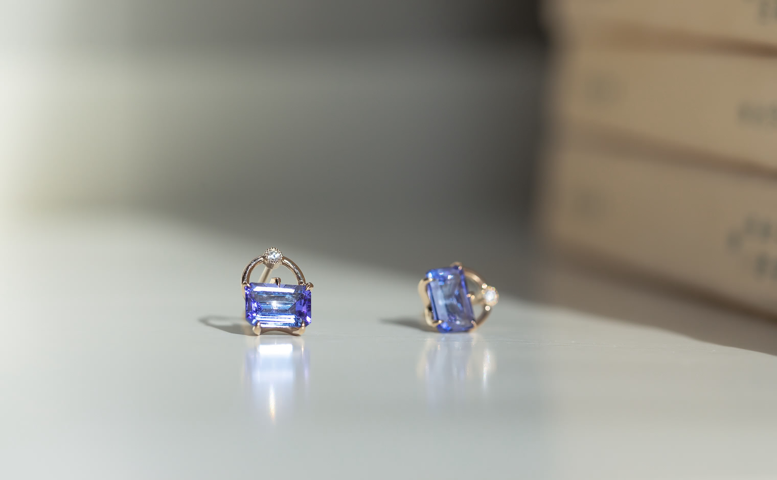Delectable pretty little things. With a pair of glowing periwinkle Tanzanite gems cut and carefully placed in our signature handcrafted beige gold handle settings accented by sweet diamonds to add a little extra spark, the Handle Studs-Tanzanite elevate your look with their sparkling, sophisticated radiance.