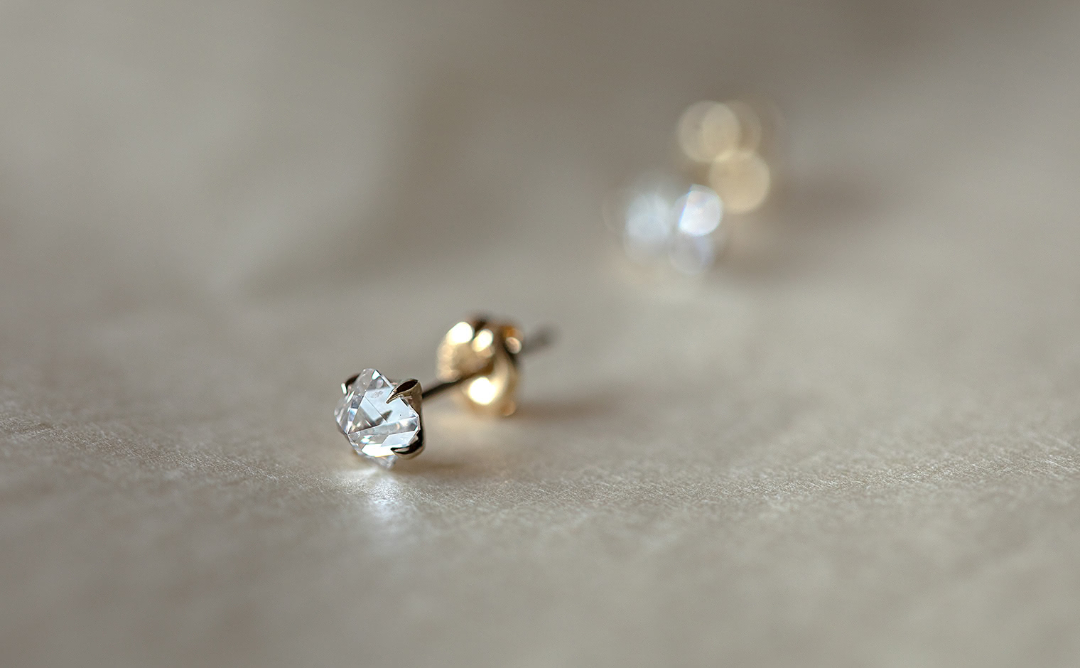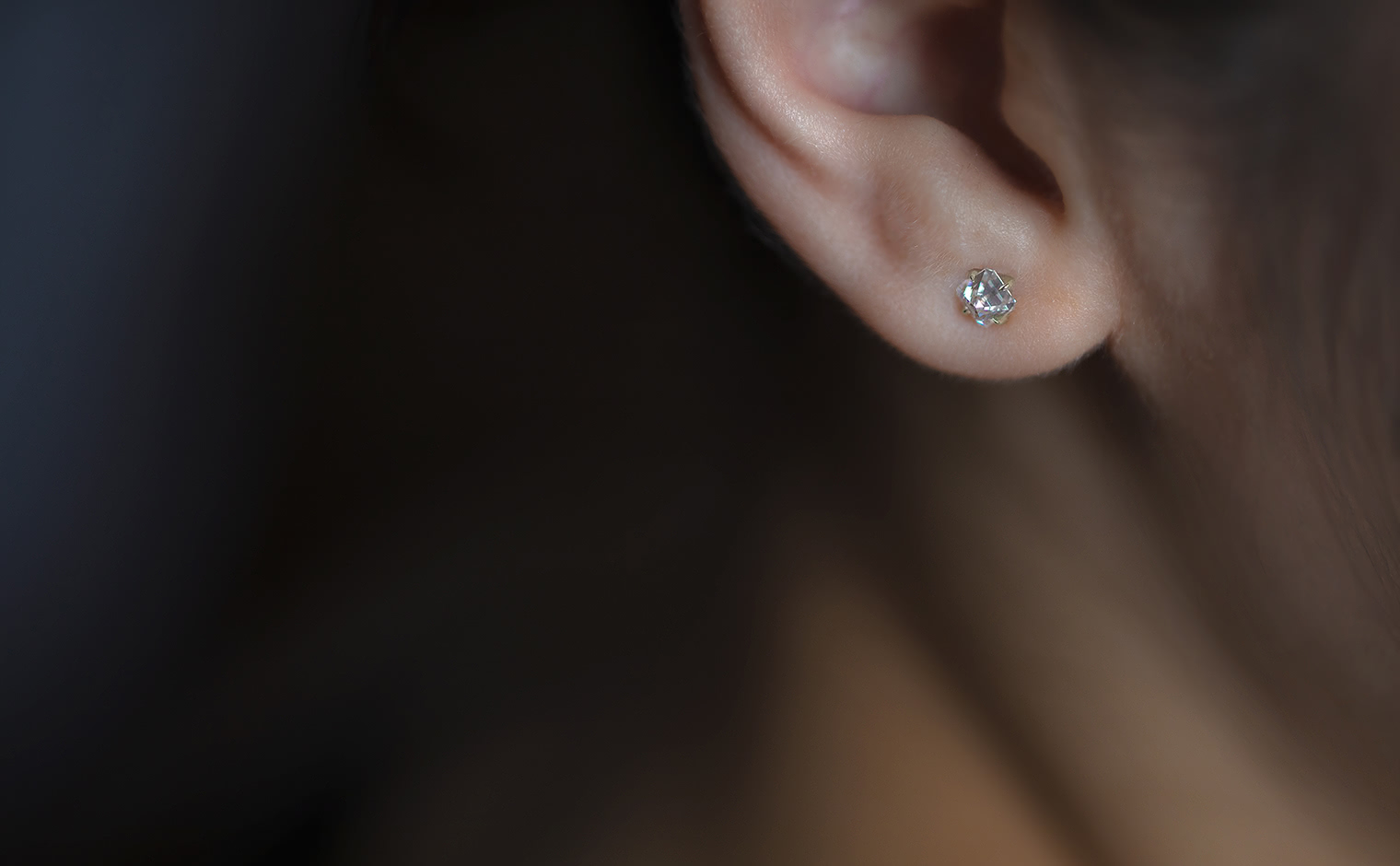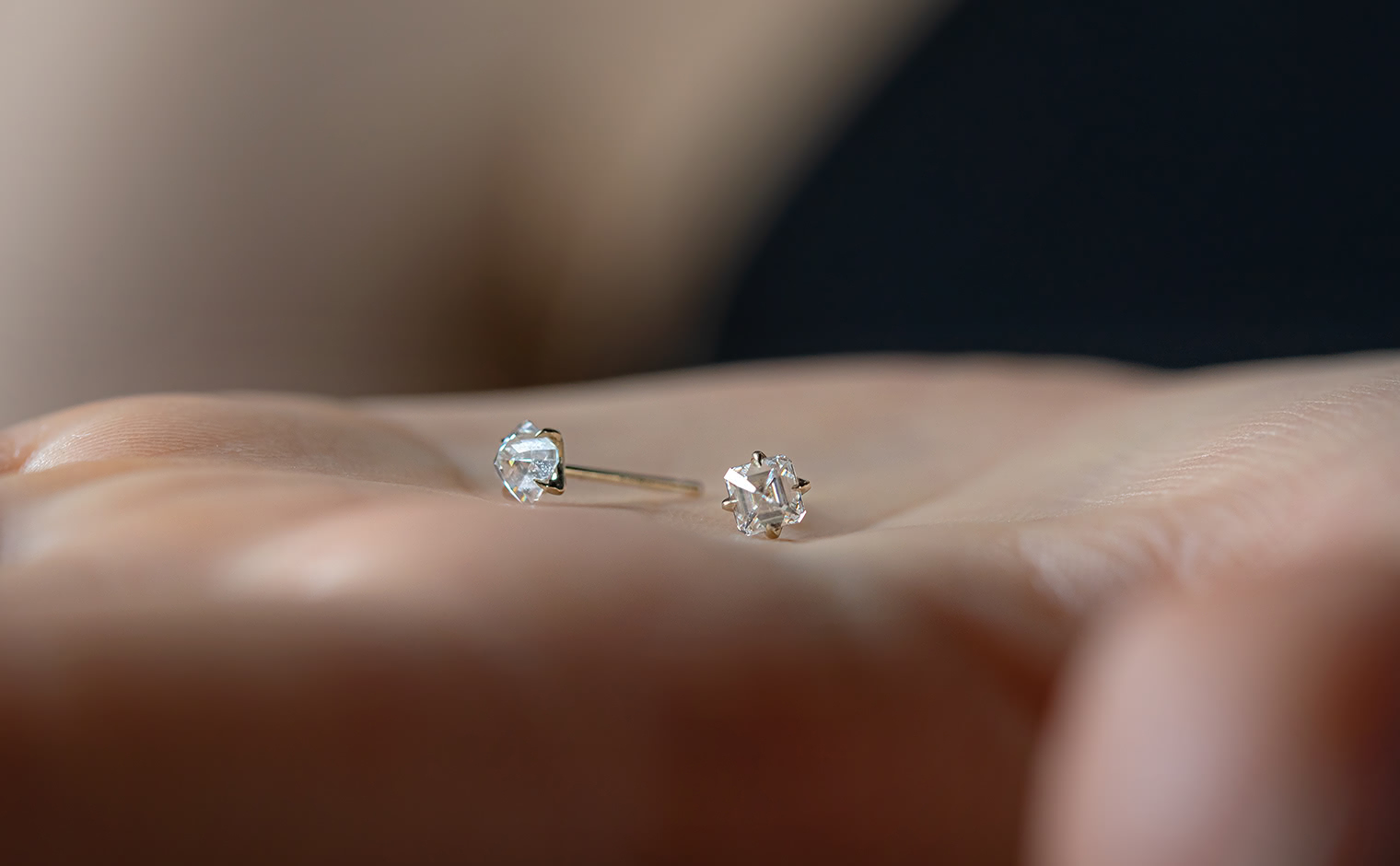 Tiny icicle droplets. With twin glowing hand-cut diamonds inverted to create smooth icy peaks on custom-metal settings, the Ice Studs are the perfect pair for some frosty flirtation on a crisp, playful evening.