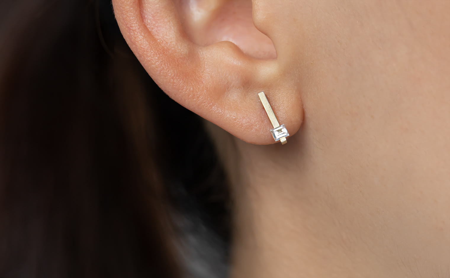 A duet of radiance and symmetry. With the idyllically glowing white Carré-cut diamonds meticulously secured into a pair of artistically handcrafted earring settings, the Light Pillars Studs-Carré elevate the meaning of minimalist modern charm.