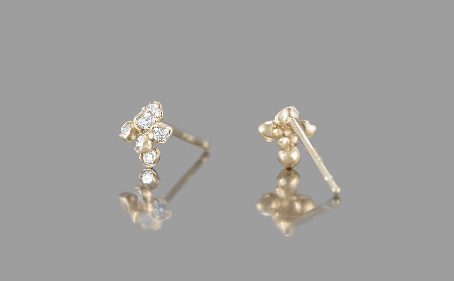 Diamonds in delicate clusters, their glow exuding quiet grace. The Orchid Studs–Petite reveal effortless elegance, a whisper of luminous charm.