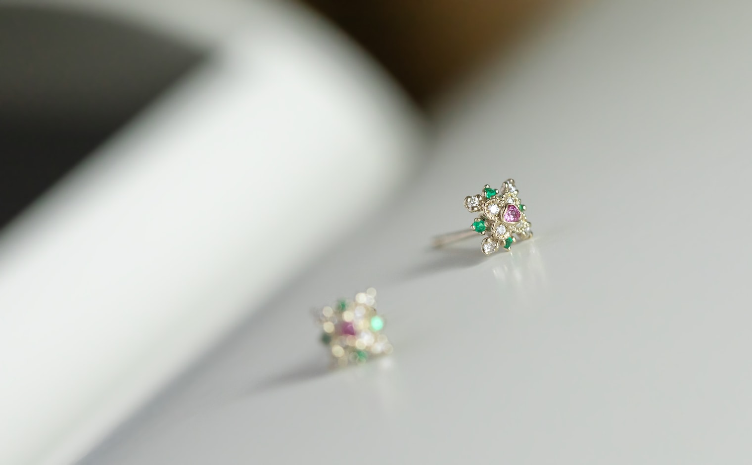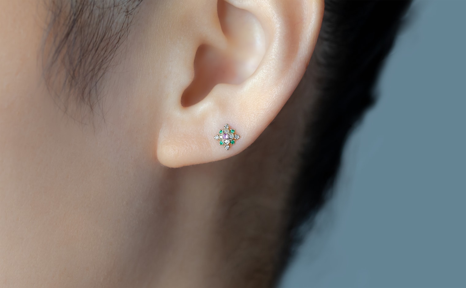 A vibrant bloom of emeralds, sapphires, and diamonds, their brilliance unfolding in radiant harmony. The Orchid Studs–Rainbow reflect effortless charm, a luminous celebration of color and light.