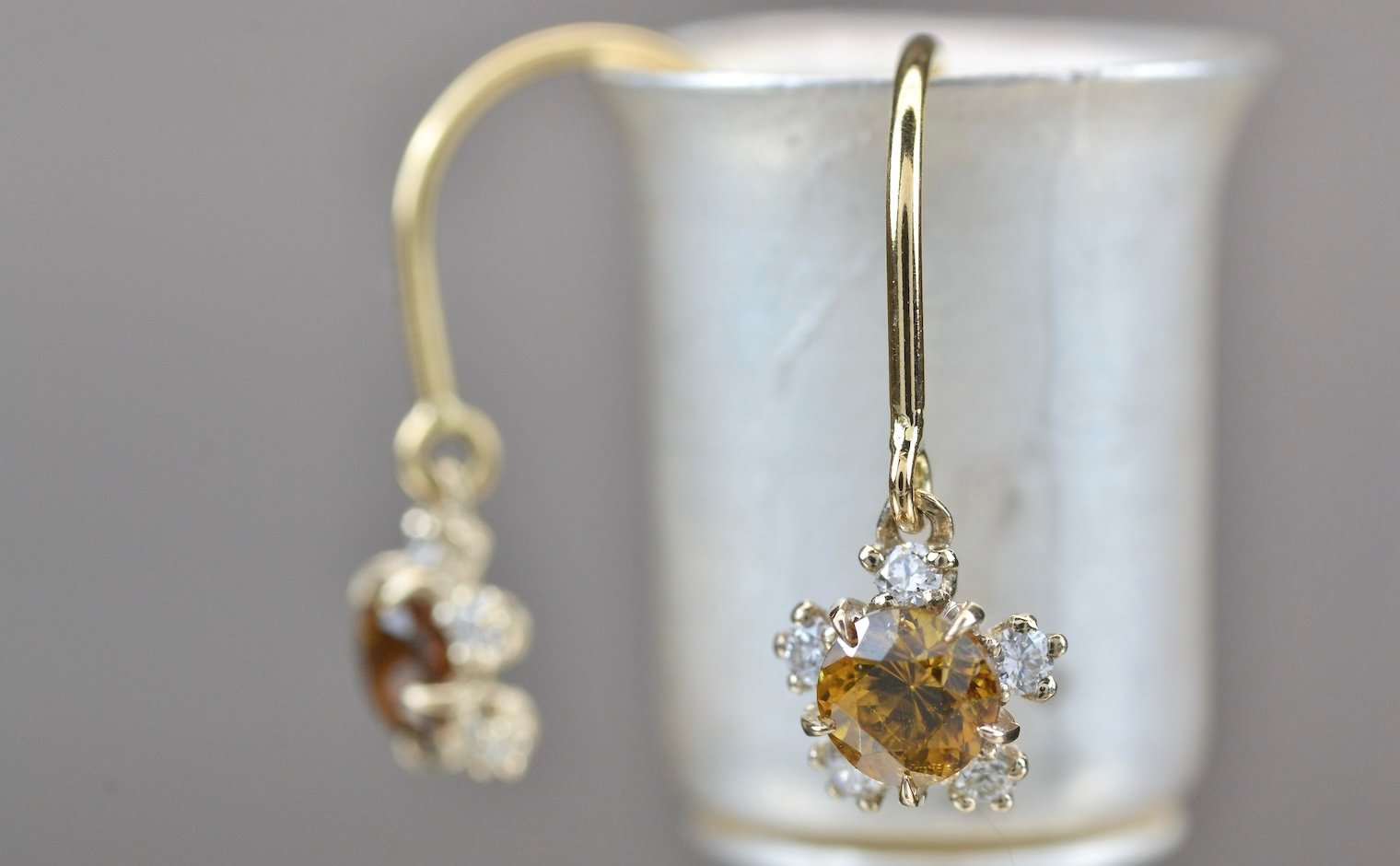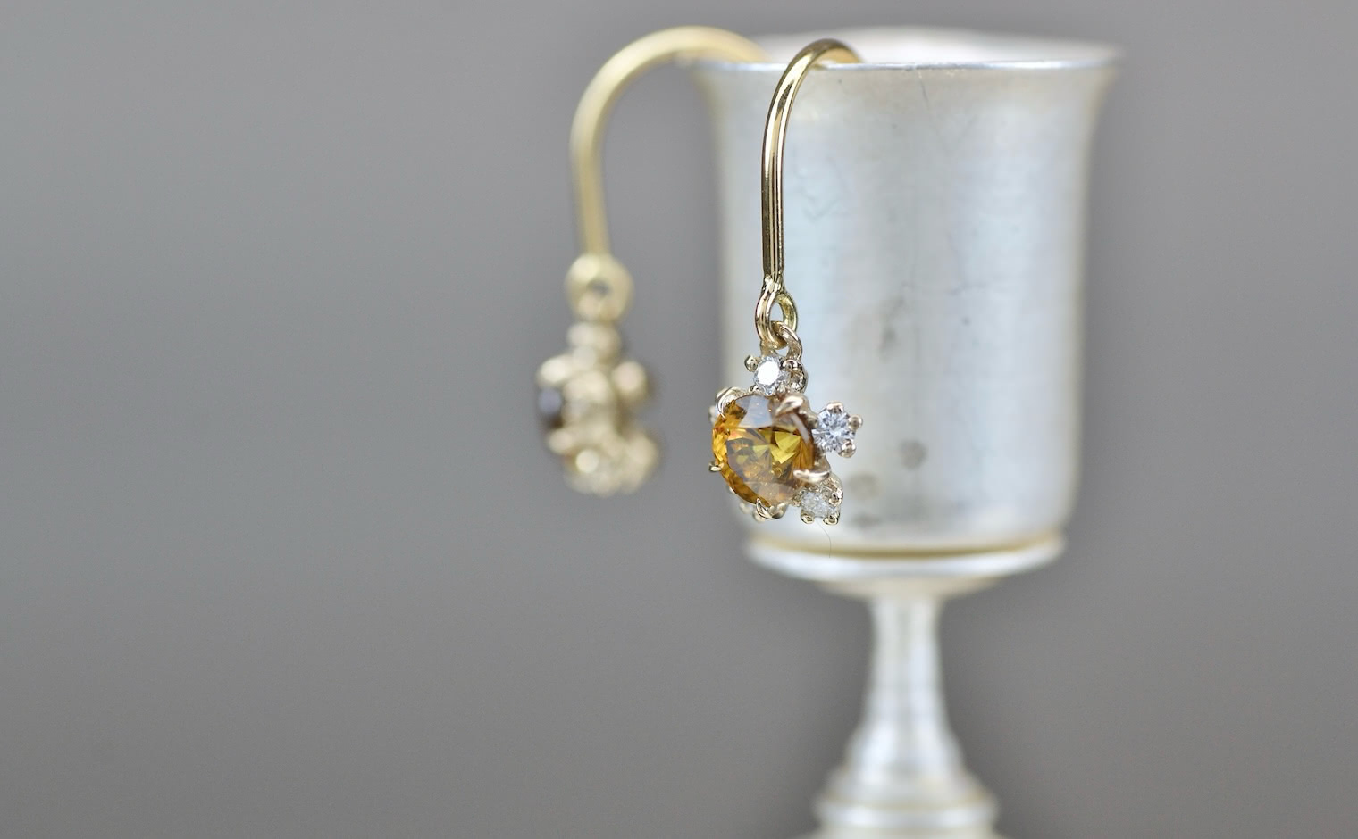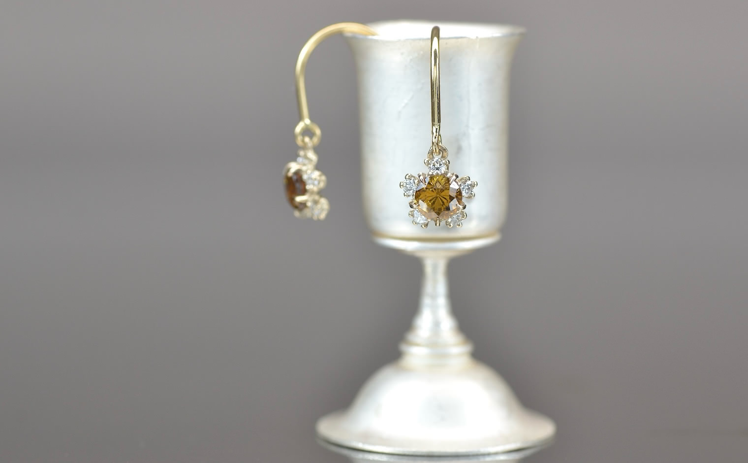 Artfully arranged in a handcrafted setting of custom-blended gold, these earrings are one of a kind. As memorable as the wearer. -