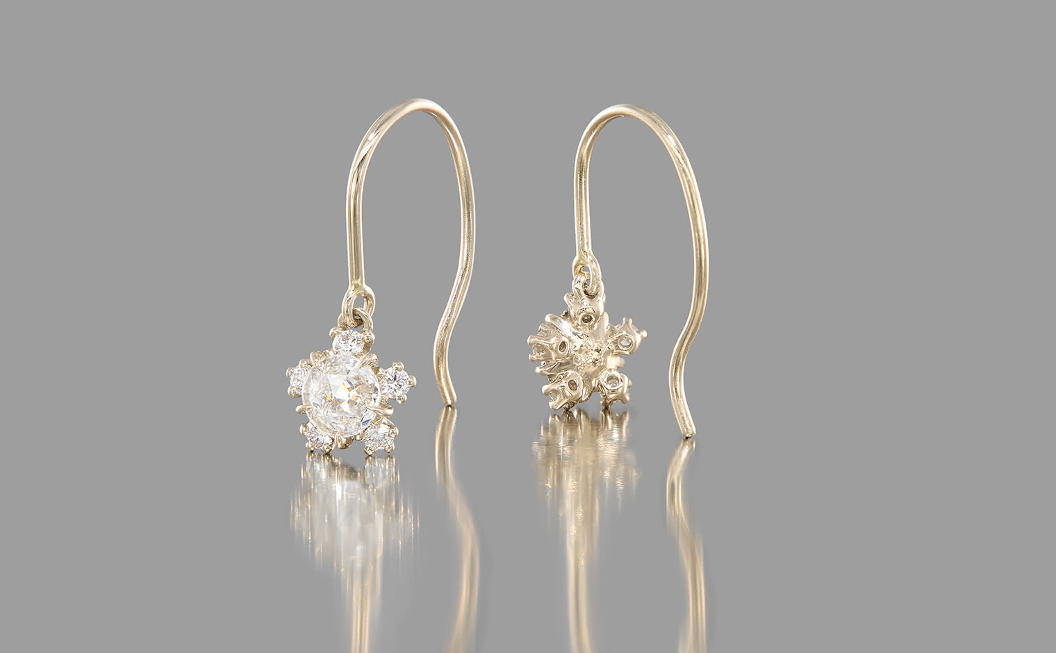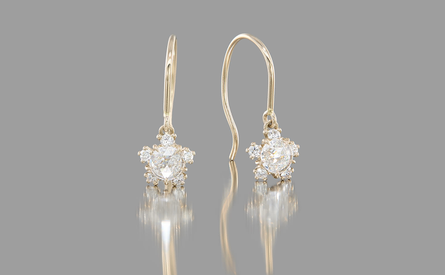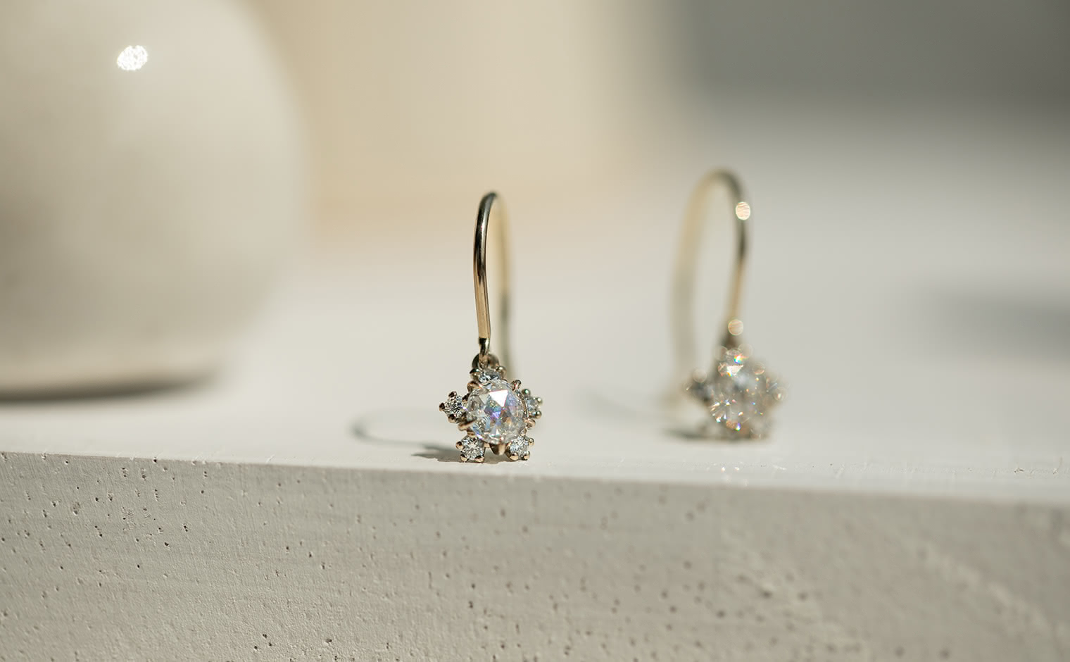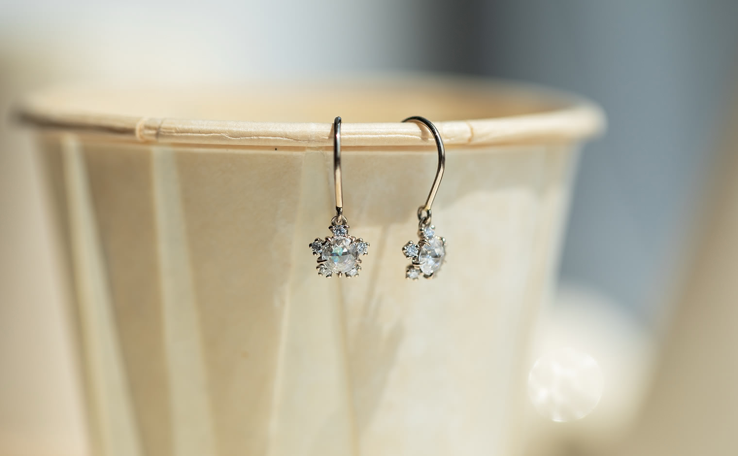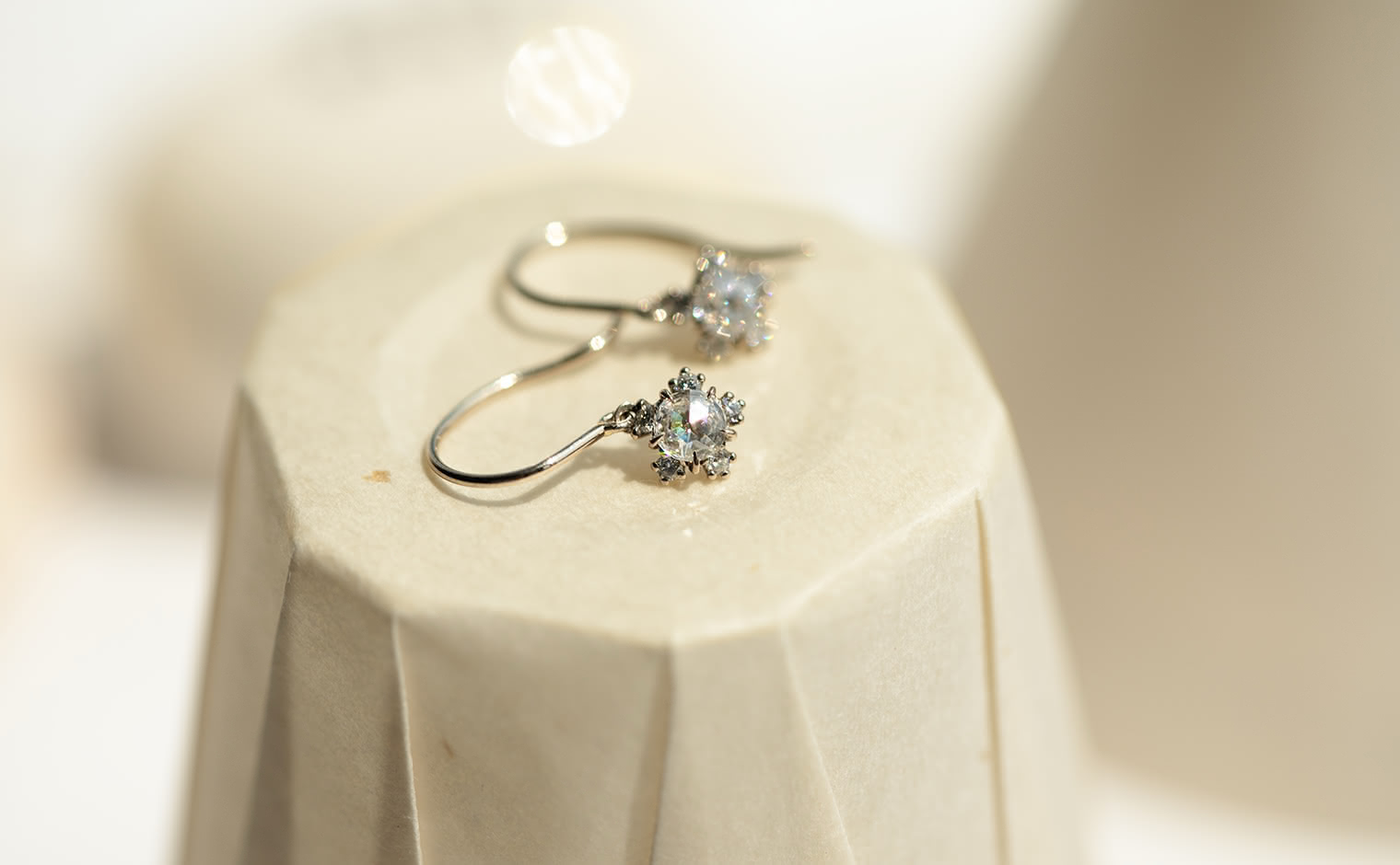 Diamonds in delicate balance, their light revealing a serene brilliance. The Snowflake Earrings–Victorian embody refined beauty, a timeless whisper of grace and elegance.