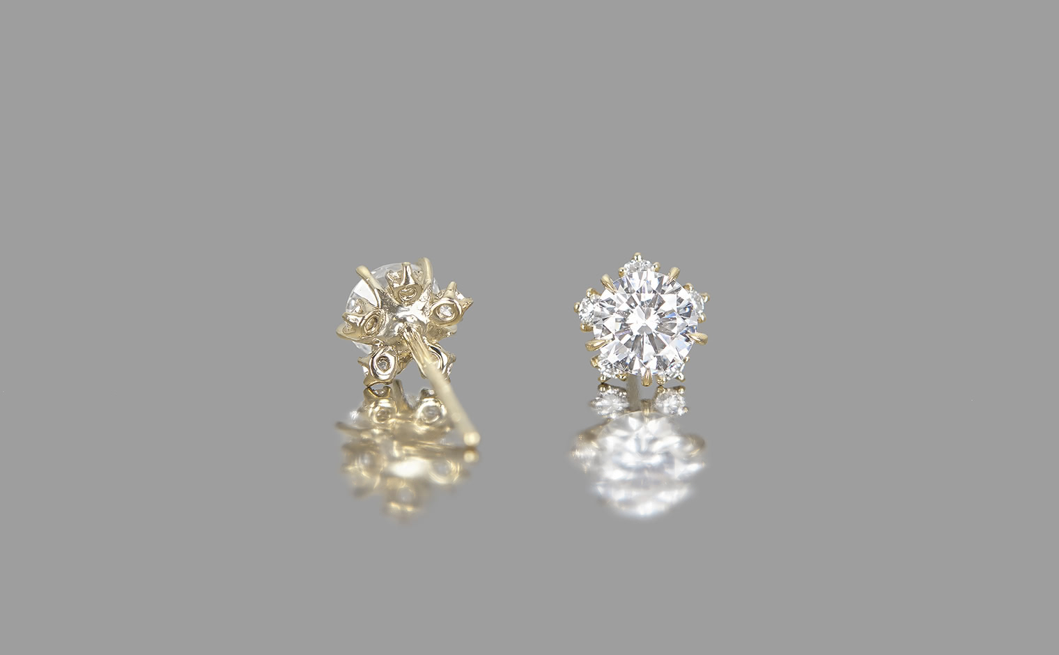 Diamonds in gentle brilliance, their light and form meeting with quiet grace. The Snowflake Studs reflect timeless beauty, a delicate expression of elegance and enduring charm.