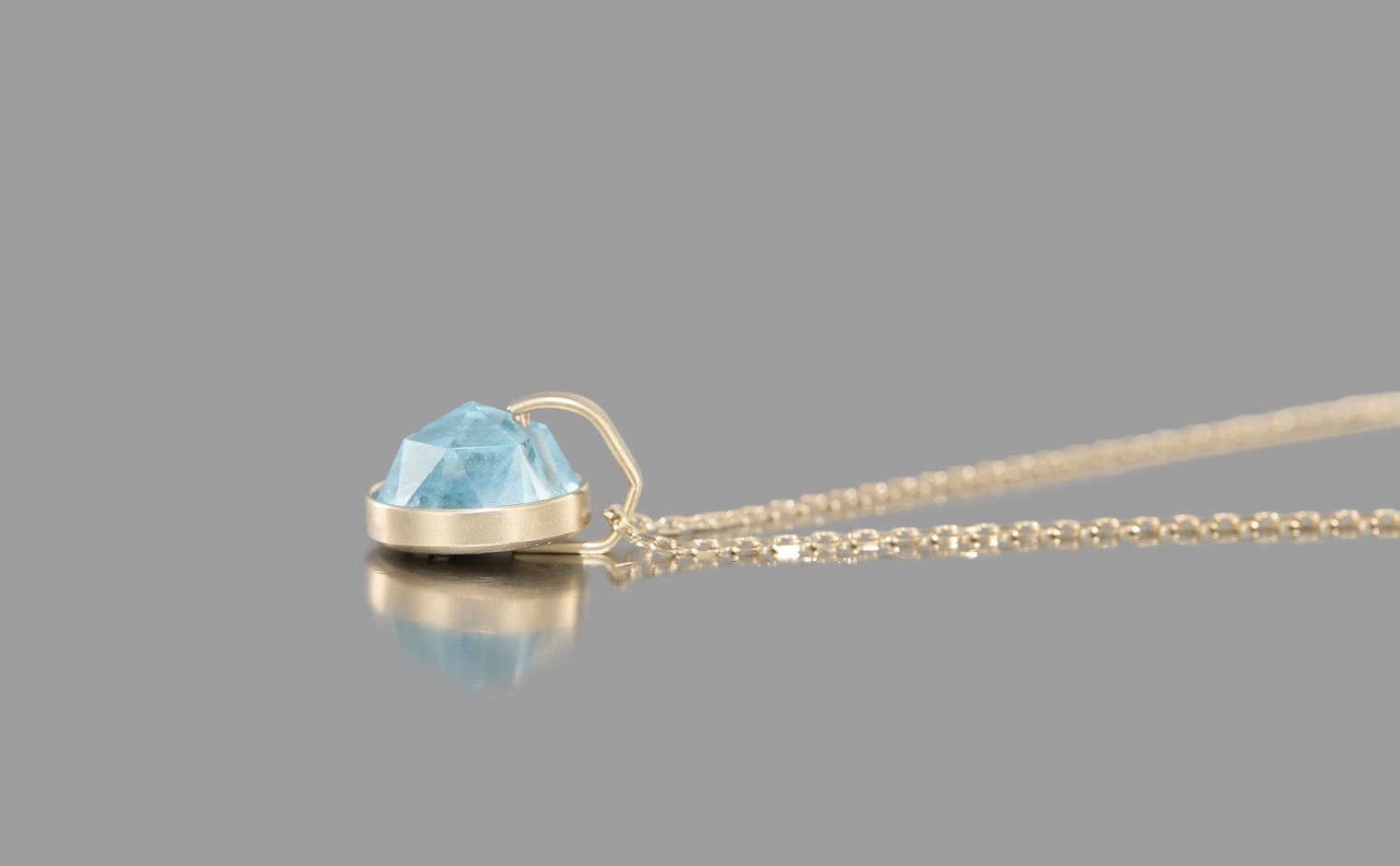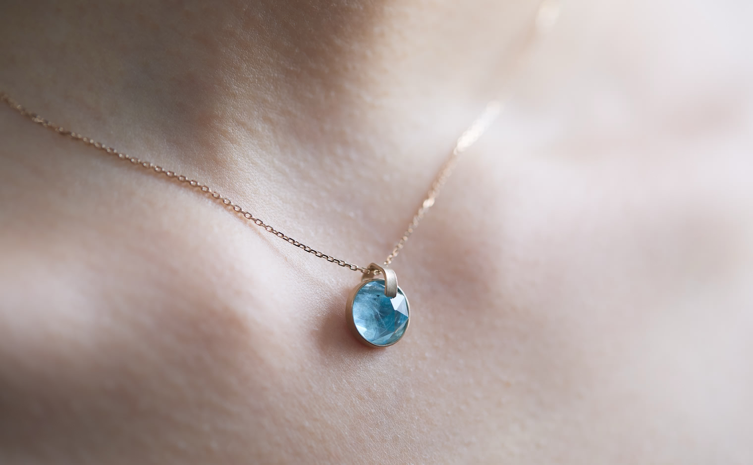 An aquamarine touched by light, its clarity whispering of open skies. The Azure Aquamarine Necklace reflects quiet luminosity, a delicate expression of clarity and calm.