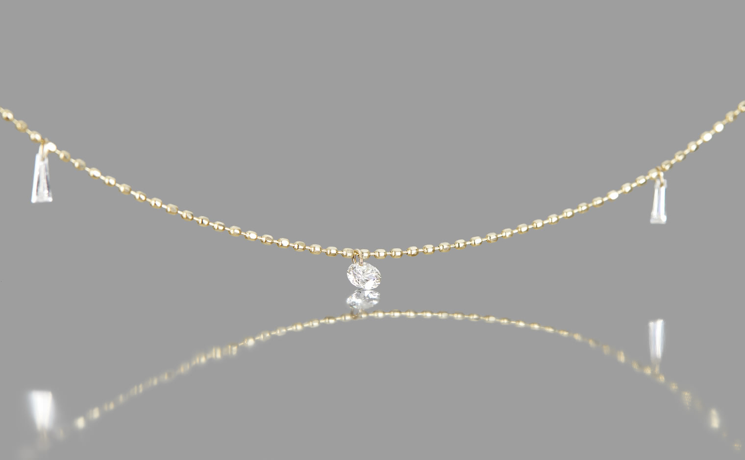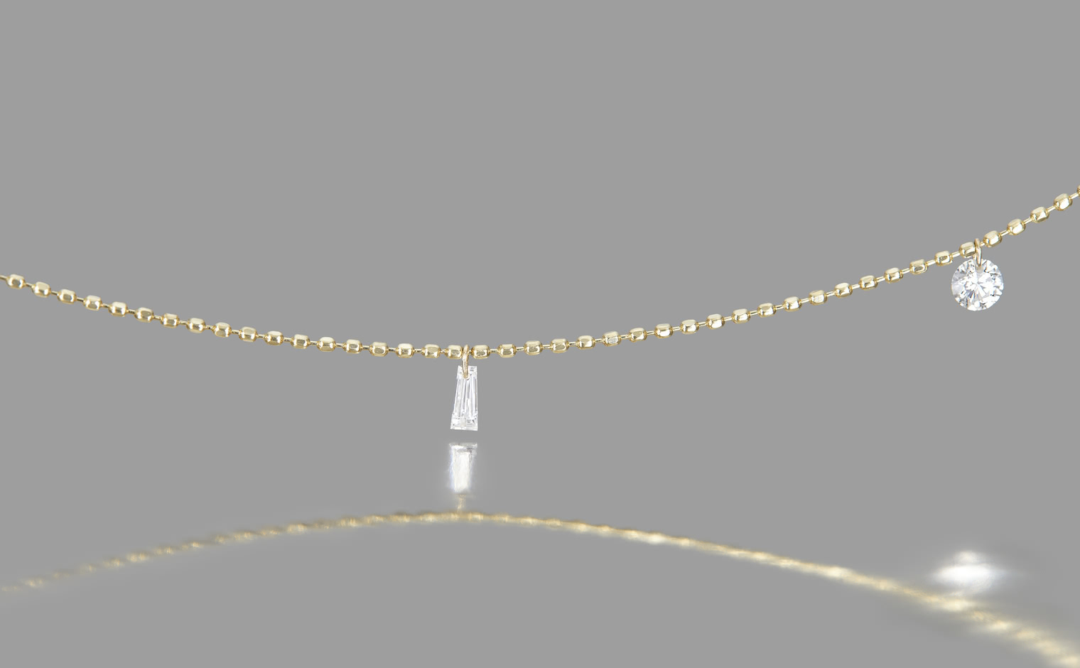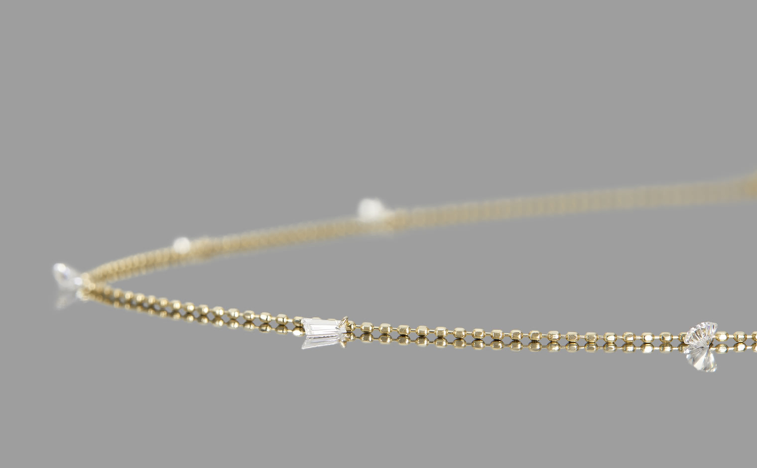Alternating diamonds trace a quiet rhythm of light and form. The Baguette & Round Diamond Necklace reflects kataoka’s timeless craftsmanship—graceful, balanced, and composed to endure.