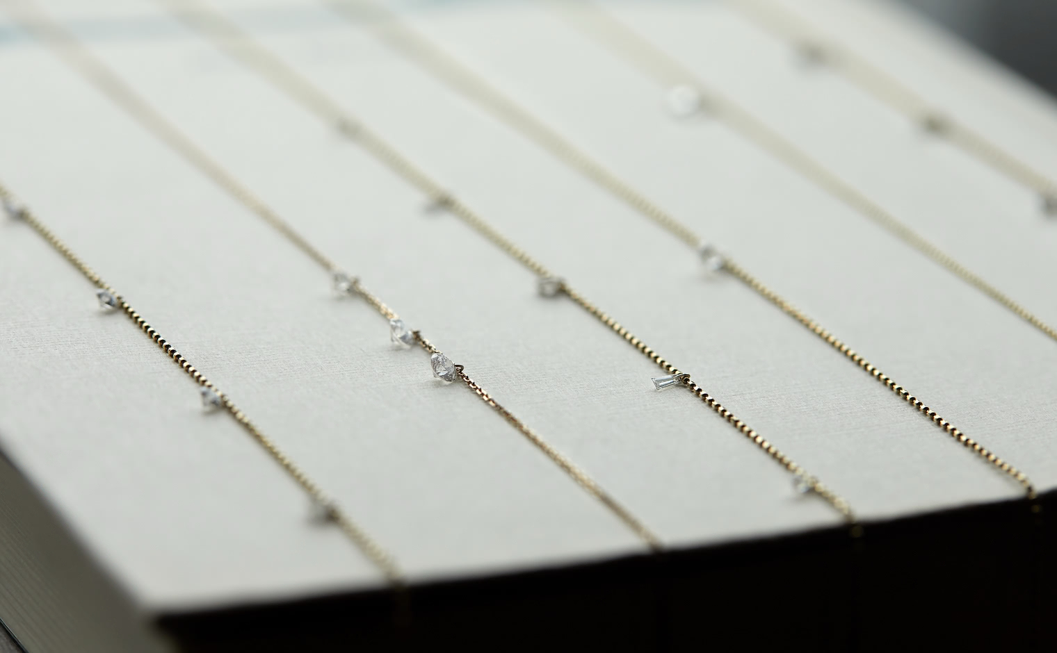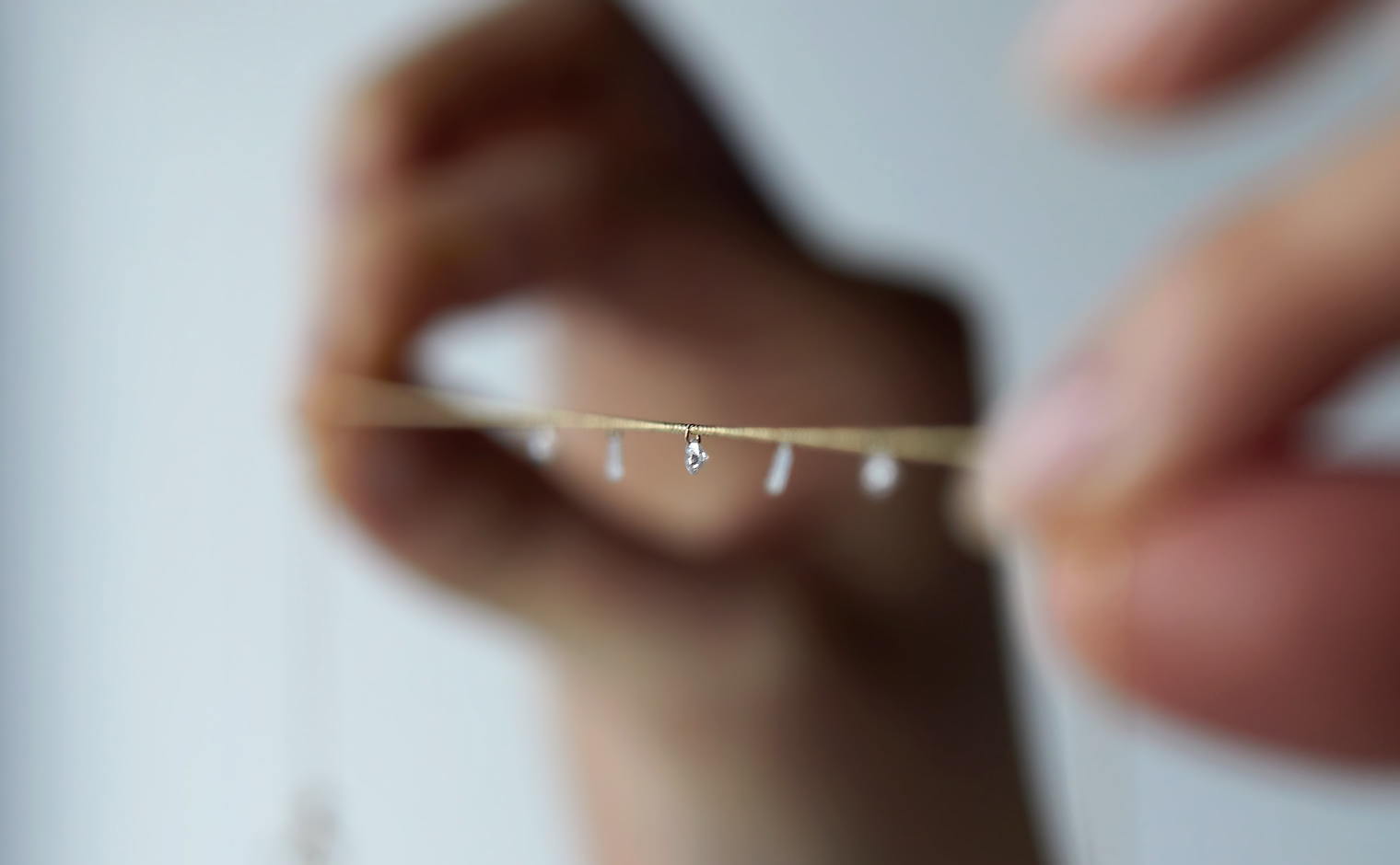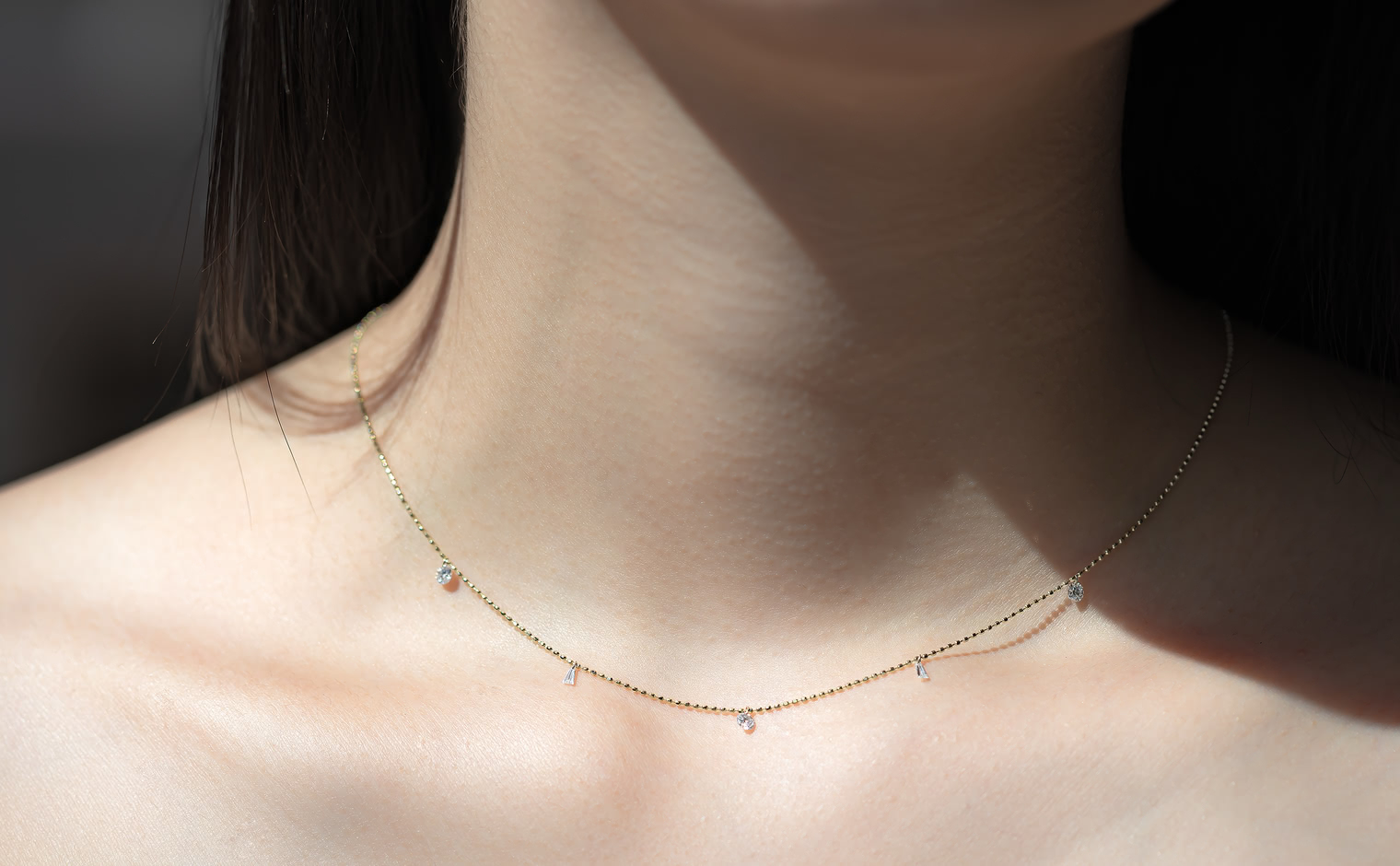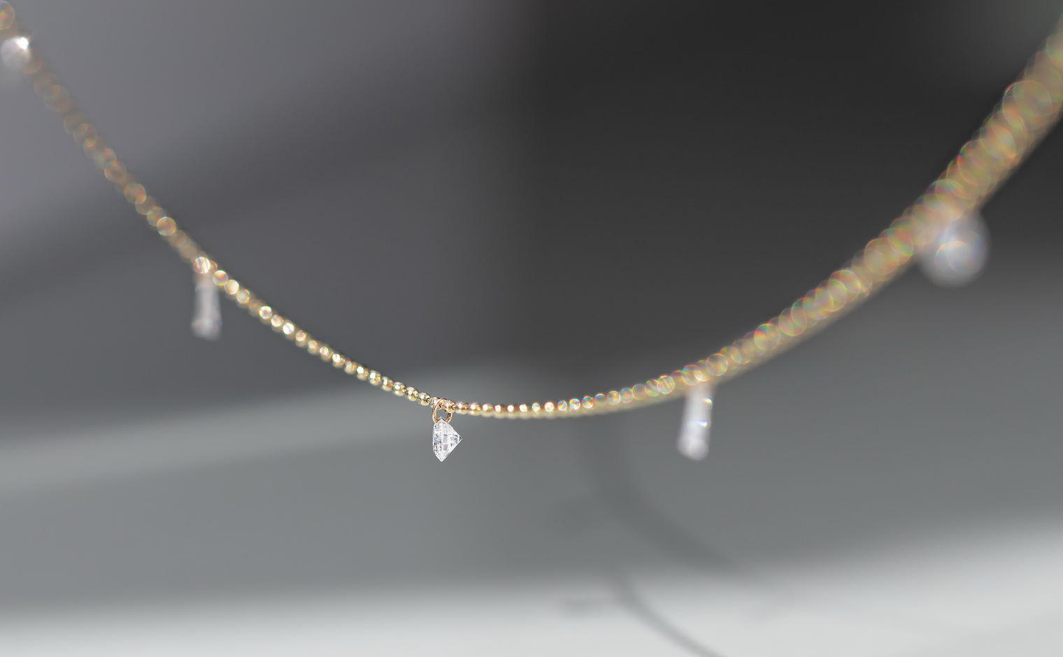 Alternating diamonds trace a quiet rhythm of light and form. The Baguette & Round Diamond Necklace reflects kataoka’s timeless craftsmanship—graceful, balanced, and composed to endure.