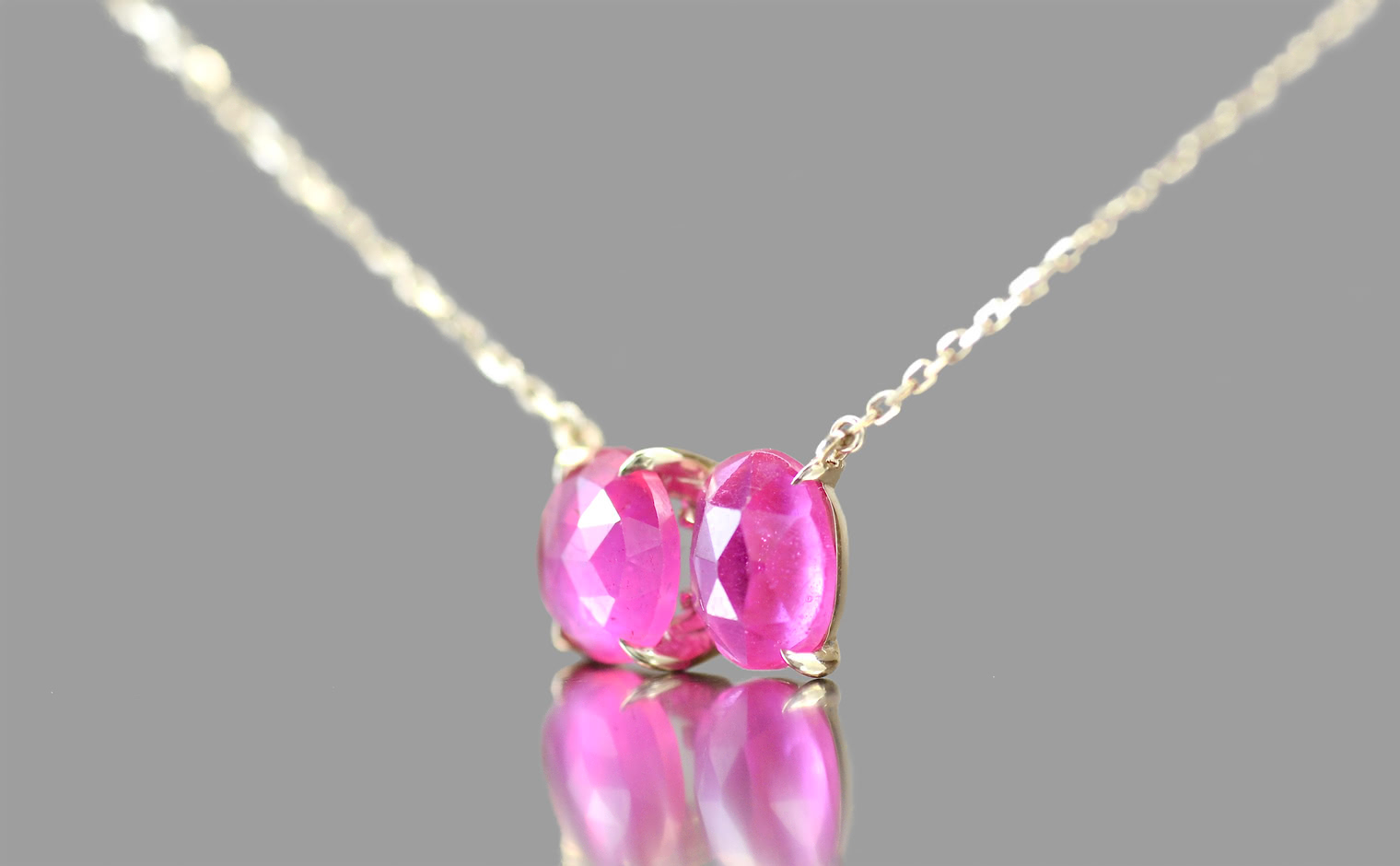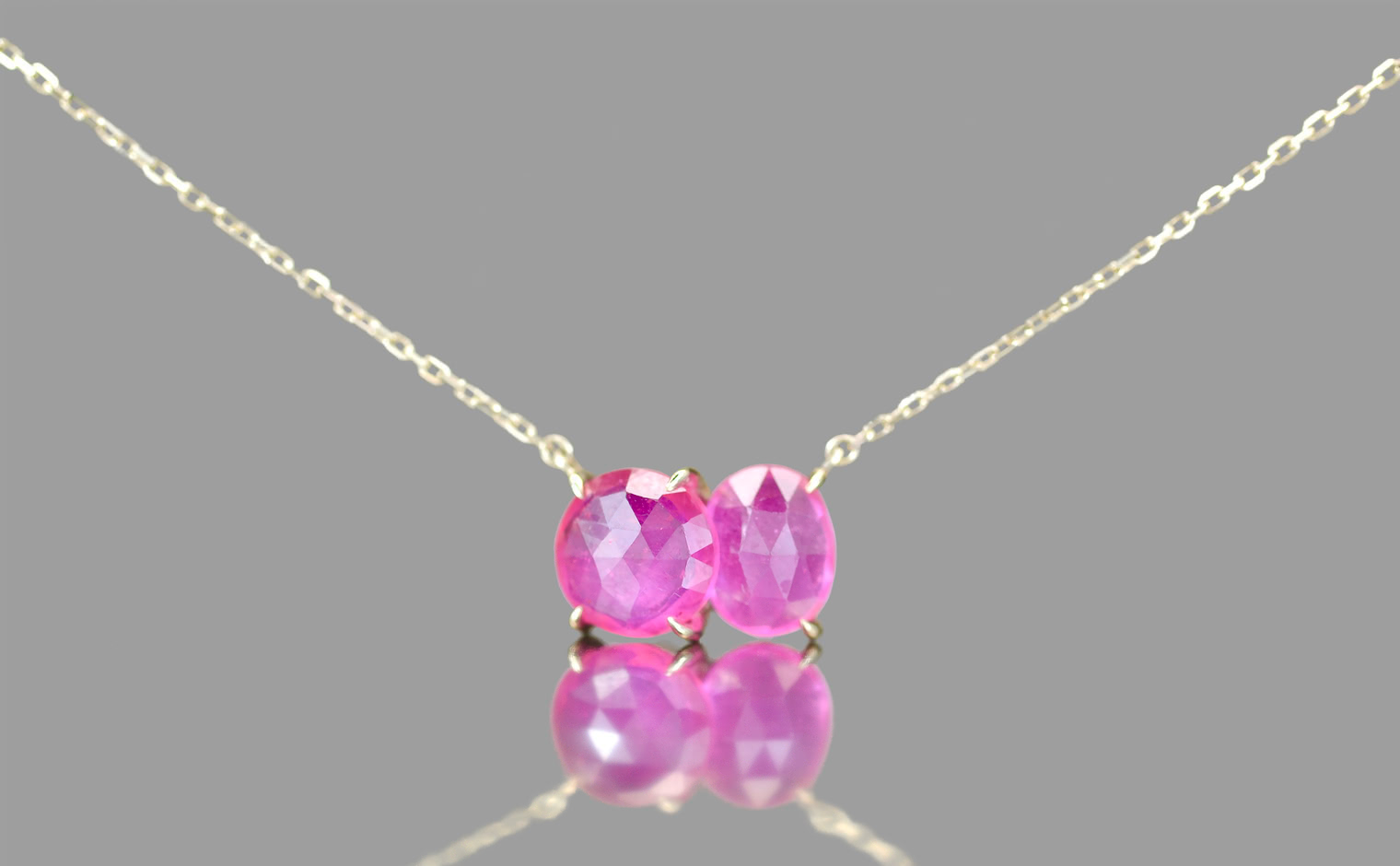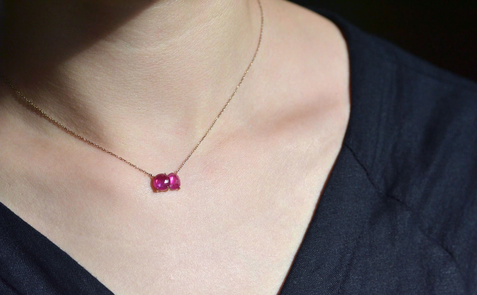 Like a beautiful bouquet of roses, these rubies are carefully chosen and gathered together to create a necklace to brighten any day. Facets are expertly cut in these stones to mimic the petals on a flower and to catch the light every time you move. A delicate chain of gold with a special locking mechanism allows you to choose your perfect length.