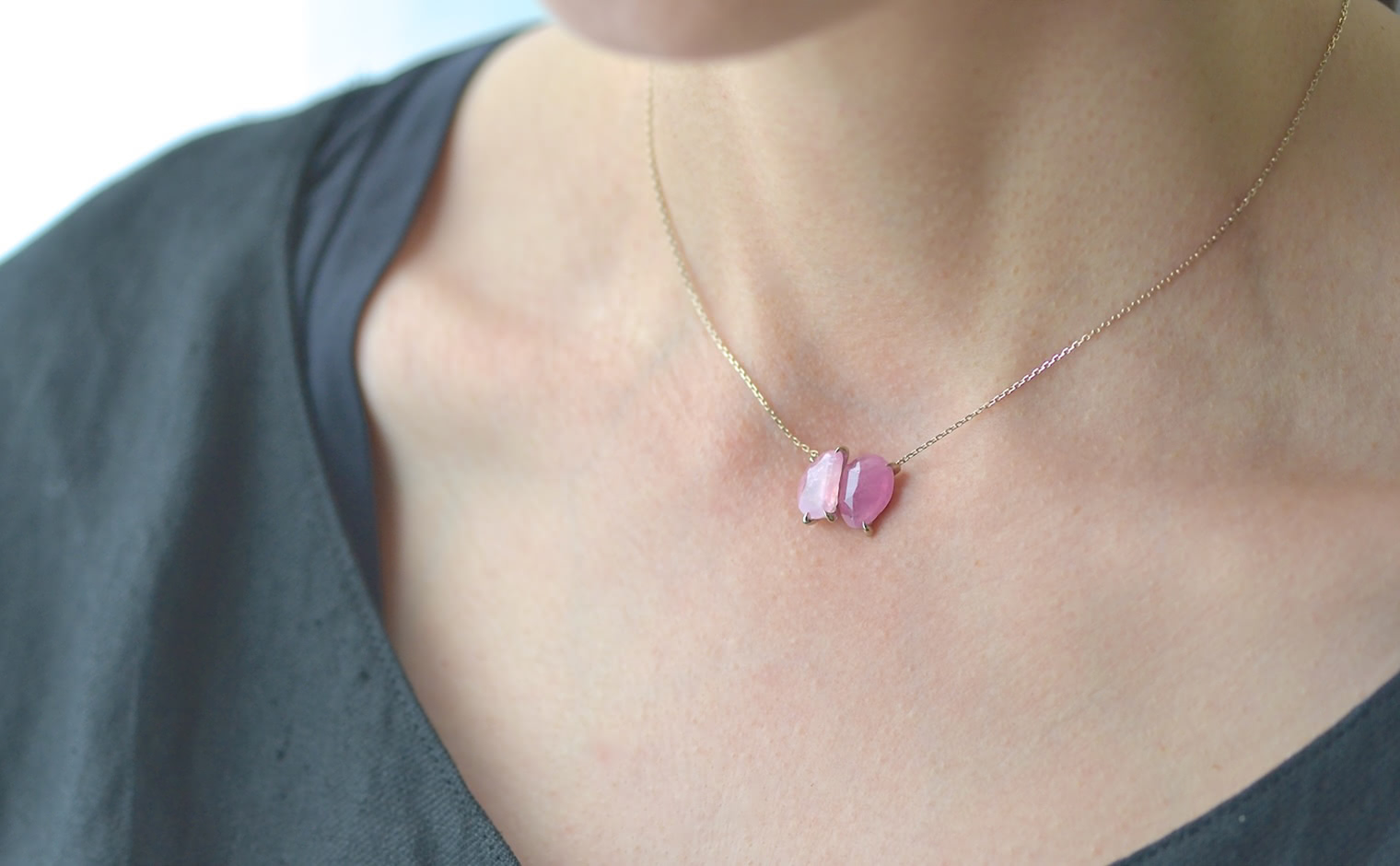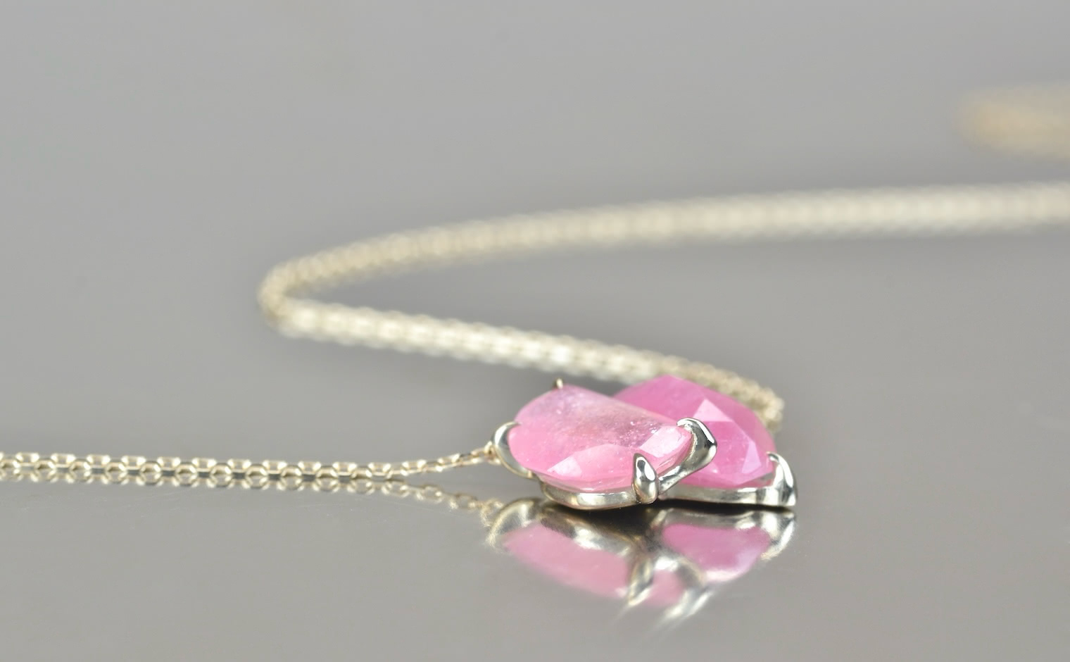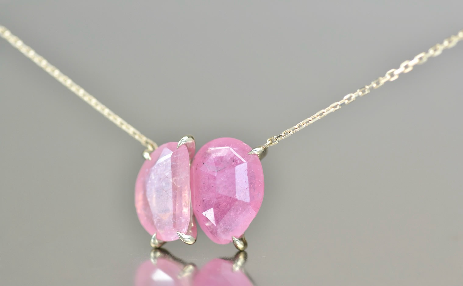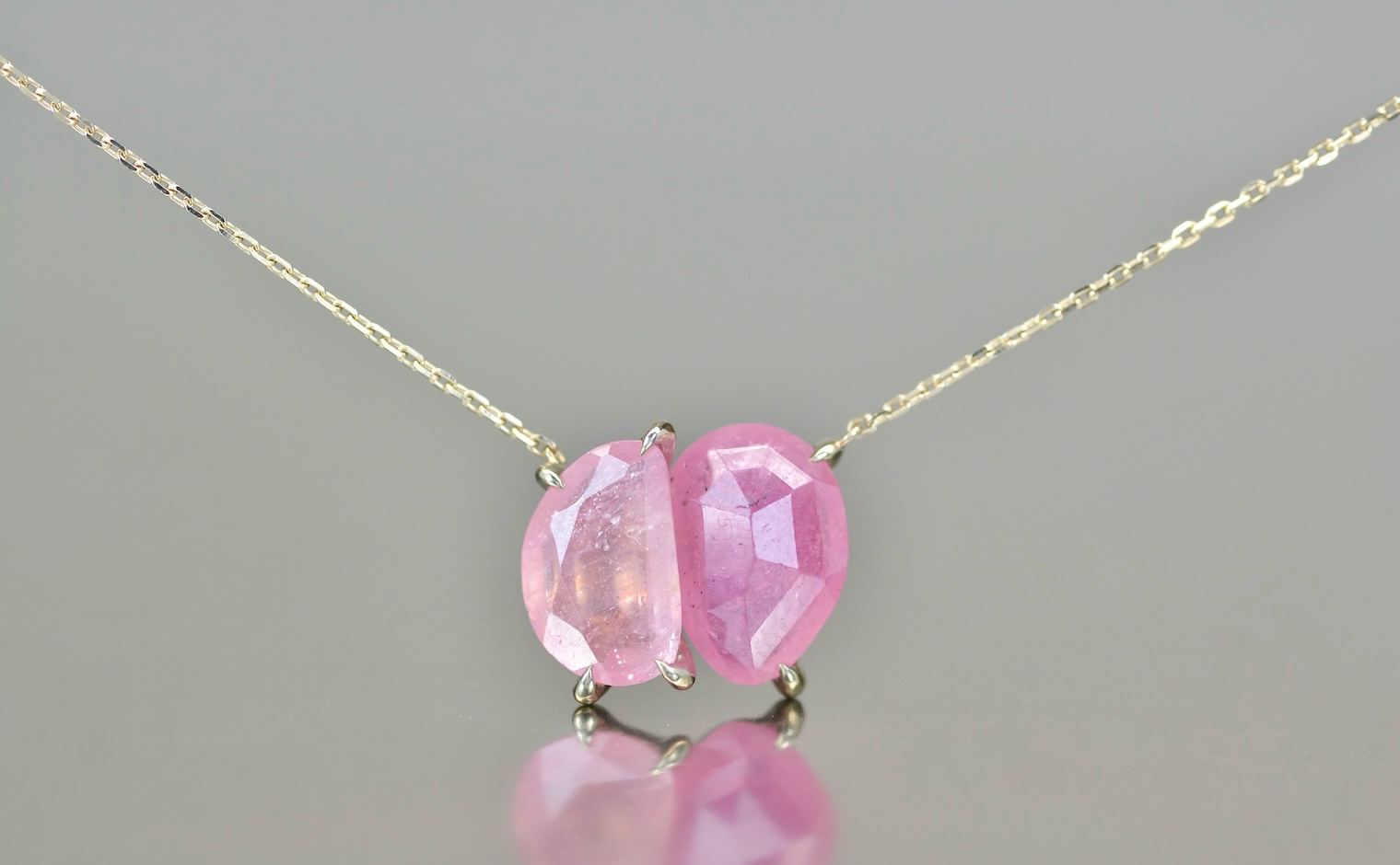 These two blushing pink sapphires have been hand selected and faceted like the petals on a rose.