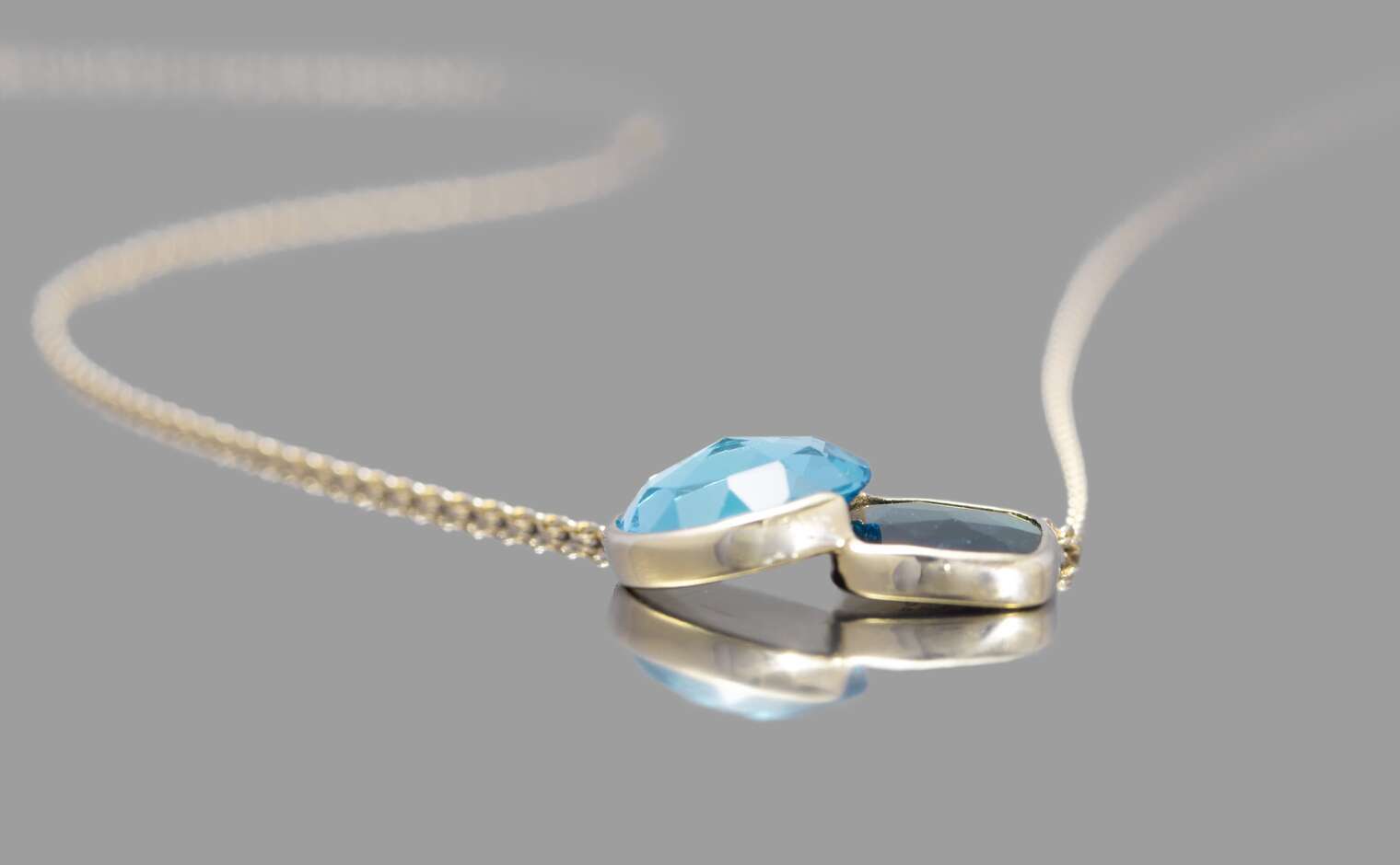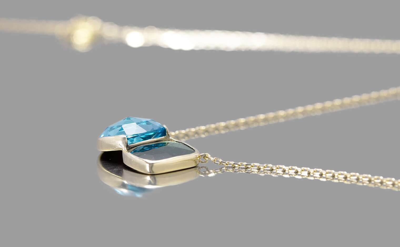 Worn every day or on special occasions, this one-of-kind bezel set necklace has been designed to allow the gems to appear as they are floating, creating a delightful and appealing statement. -