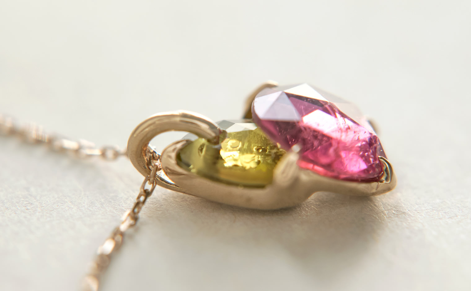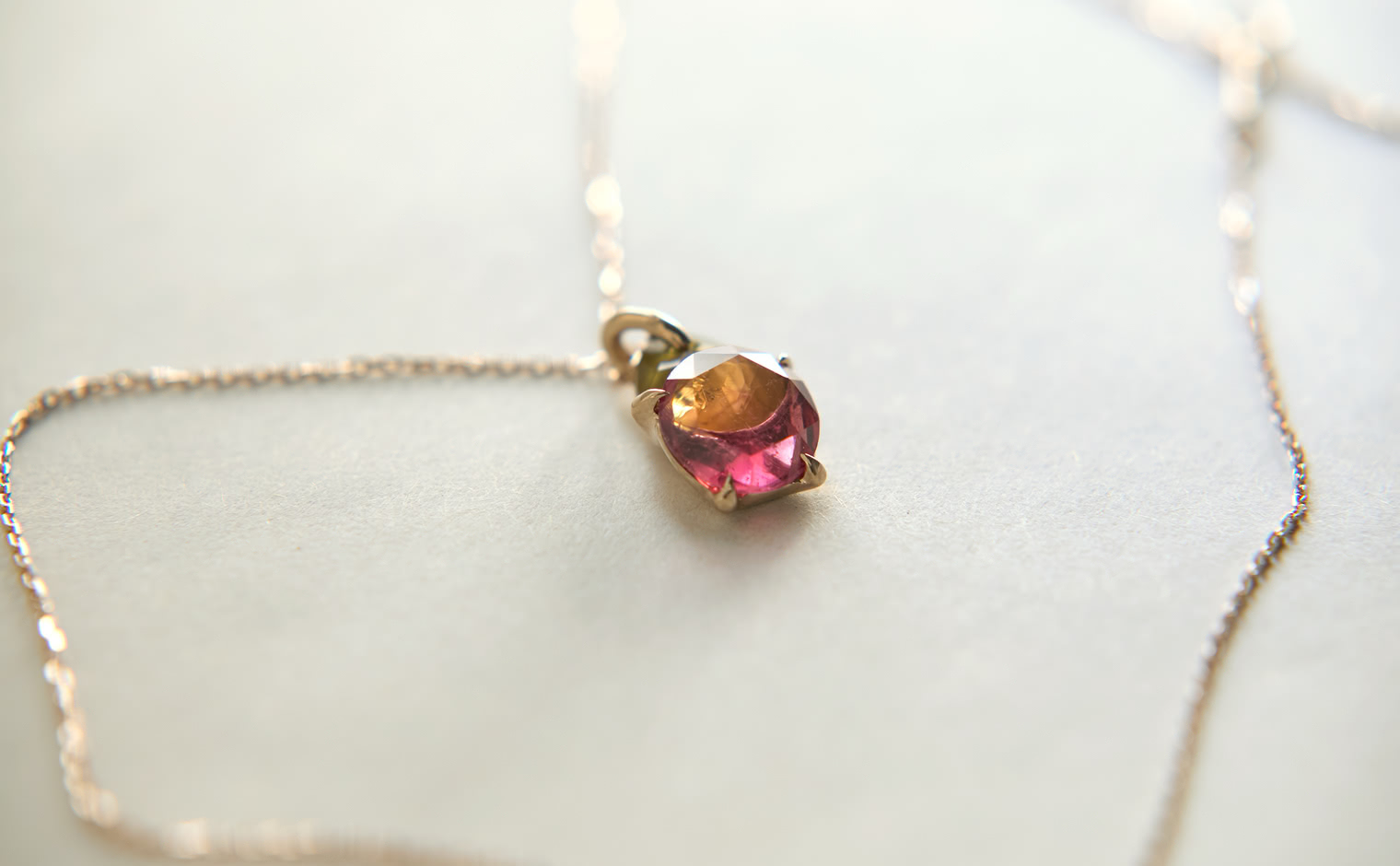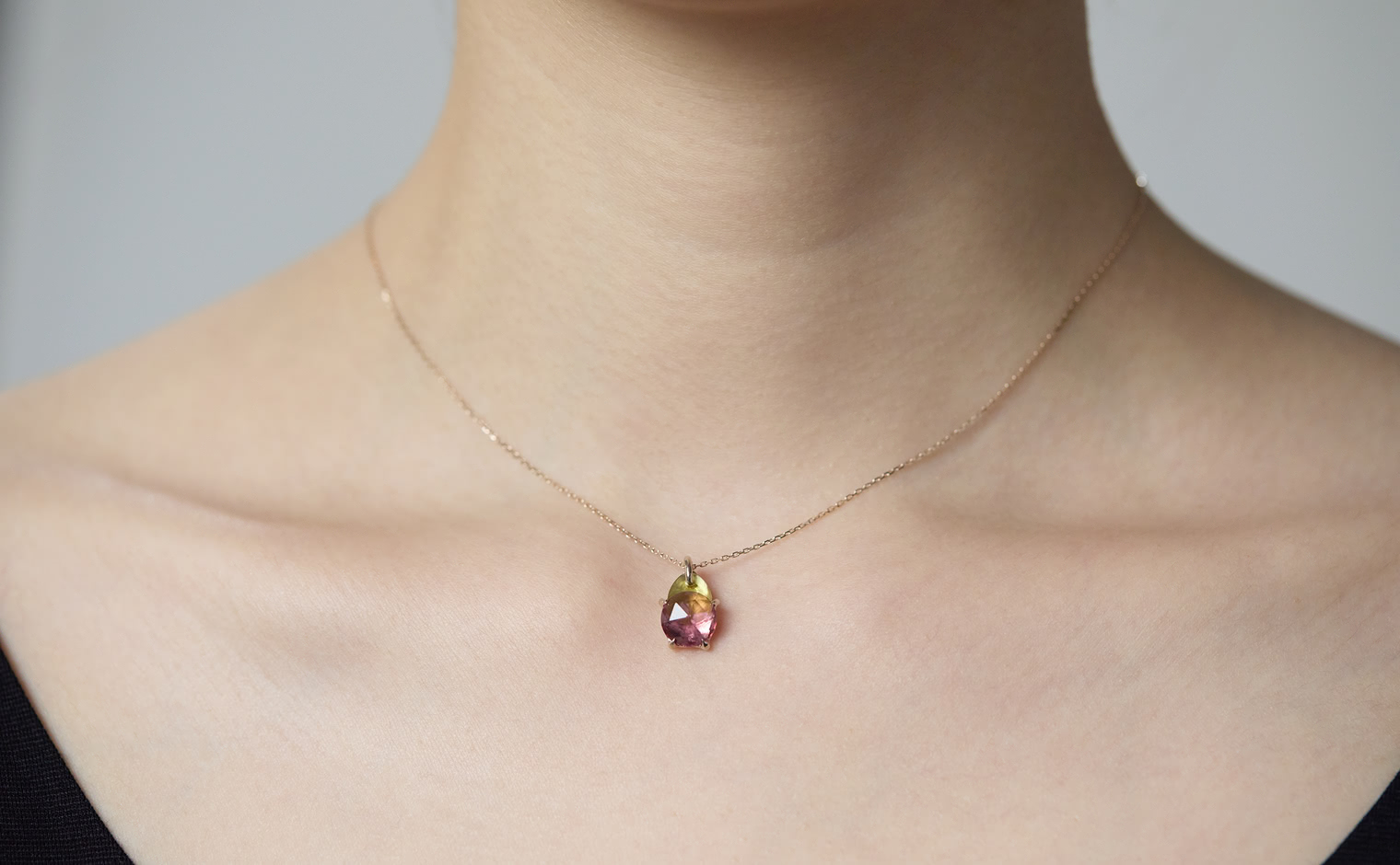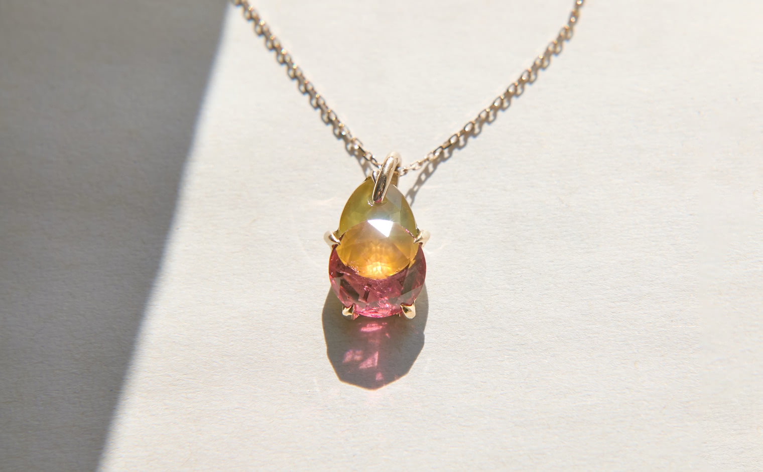 A soft shimmer, where tourmalines capture the warmth of fleeting light. The Calyx Necklace–Sunset embodies refined elegance, an enduring expression of balance—graceful and eternal.