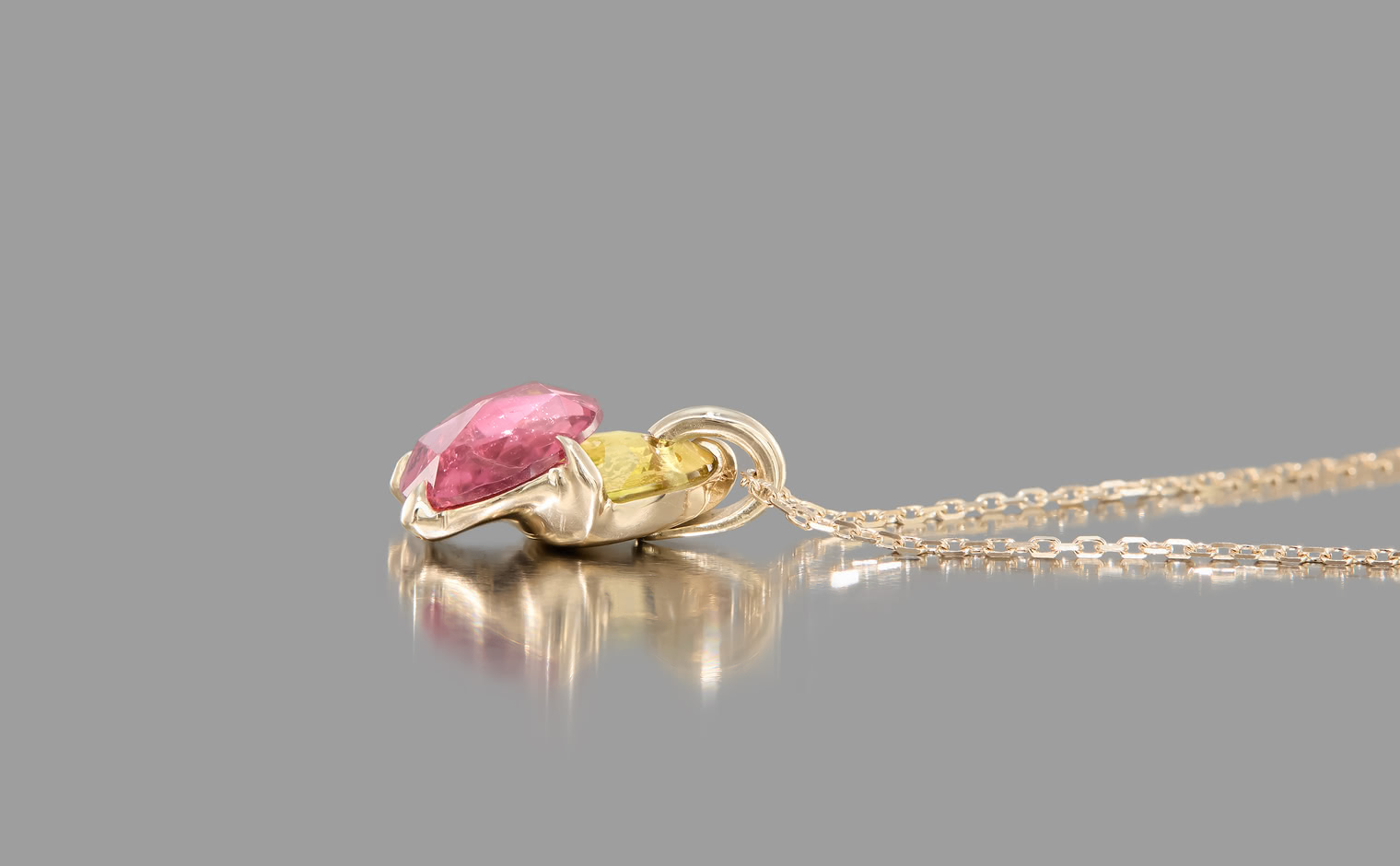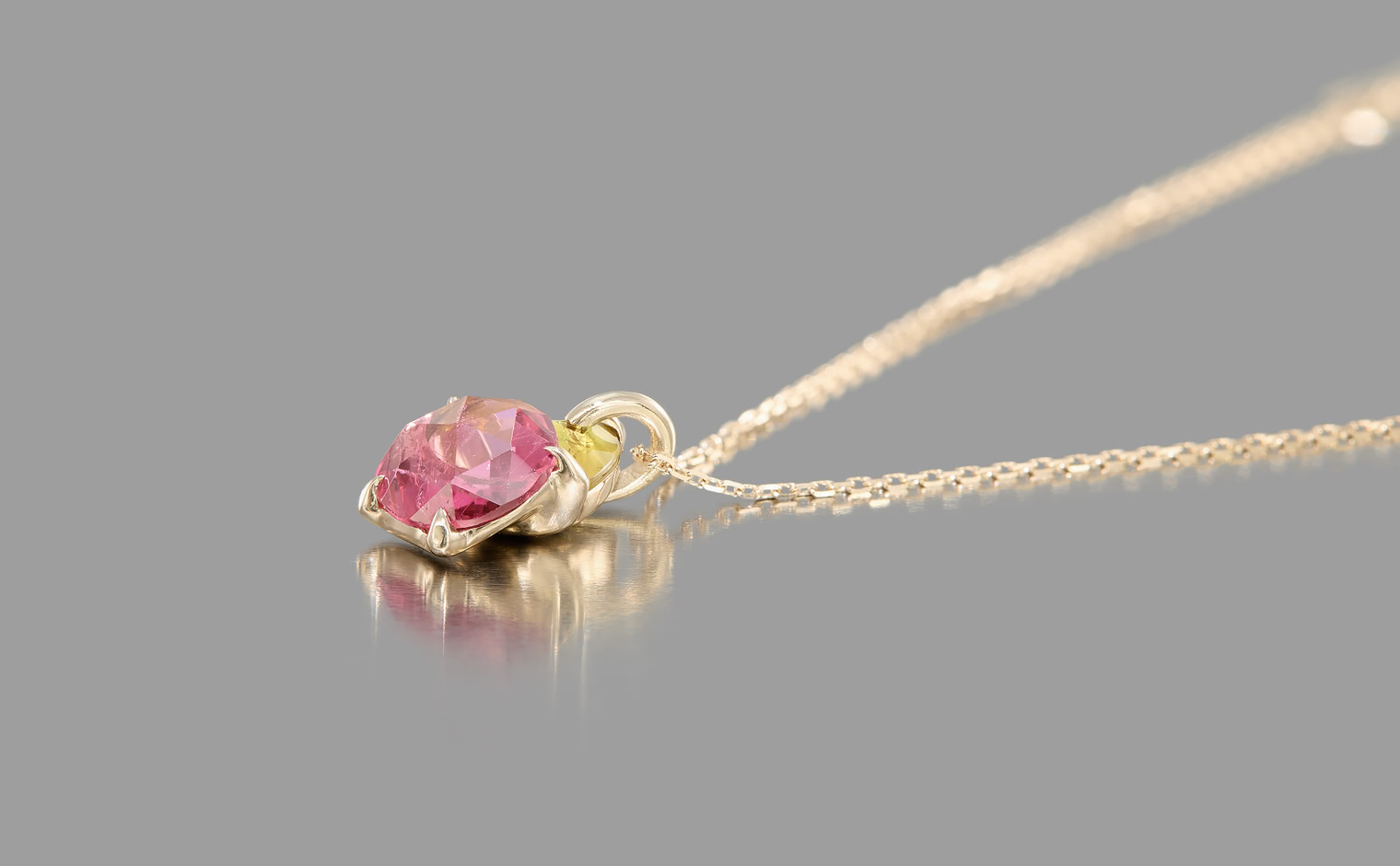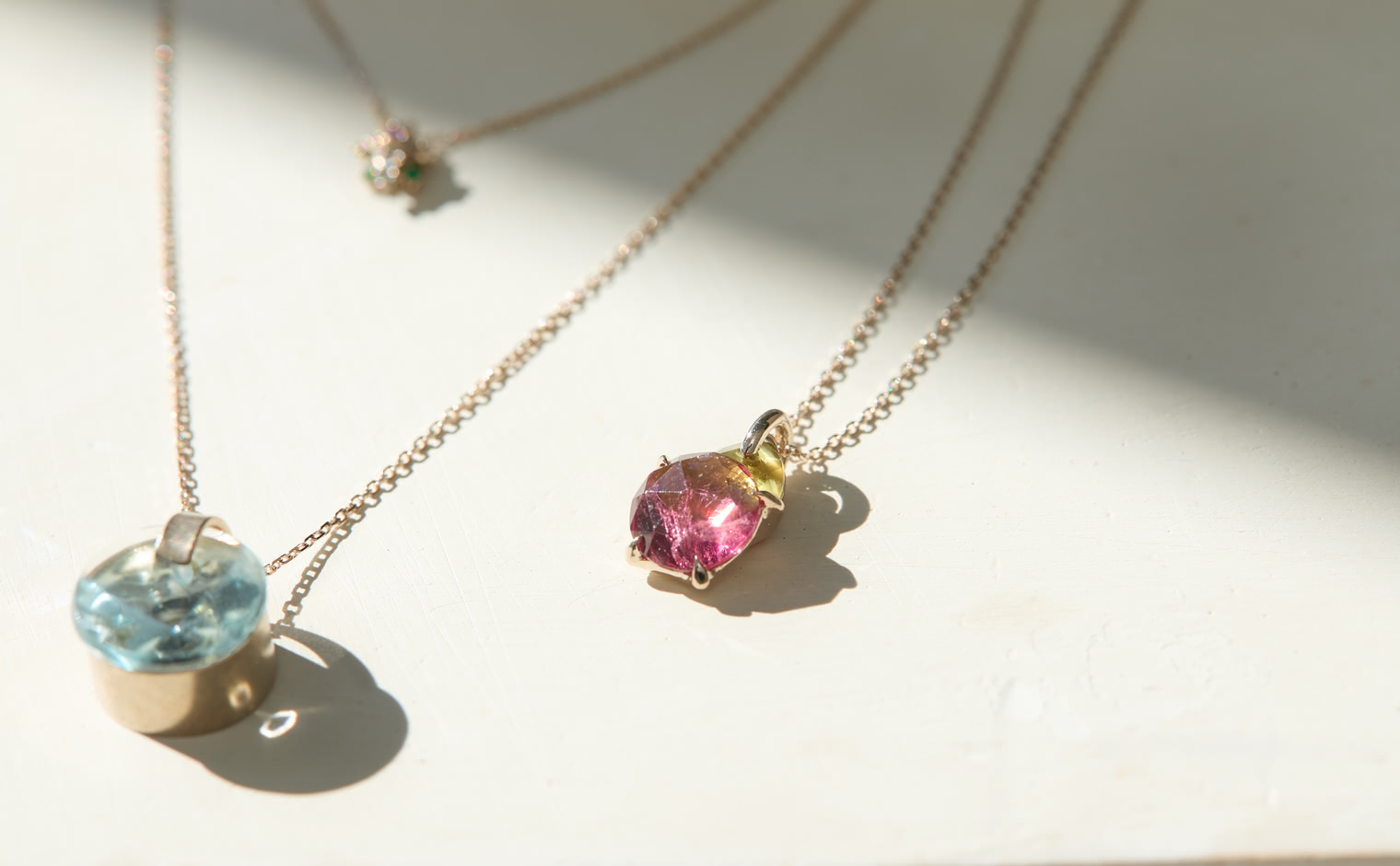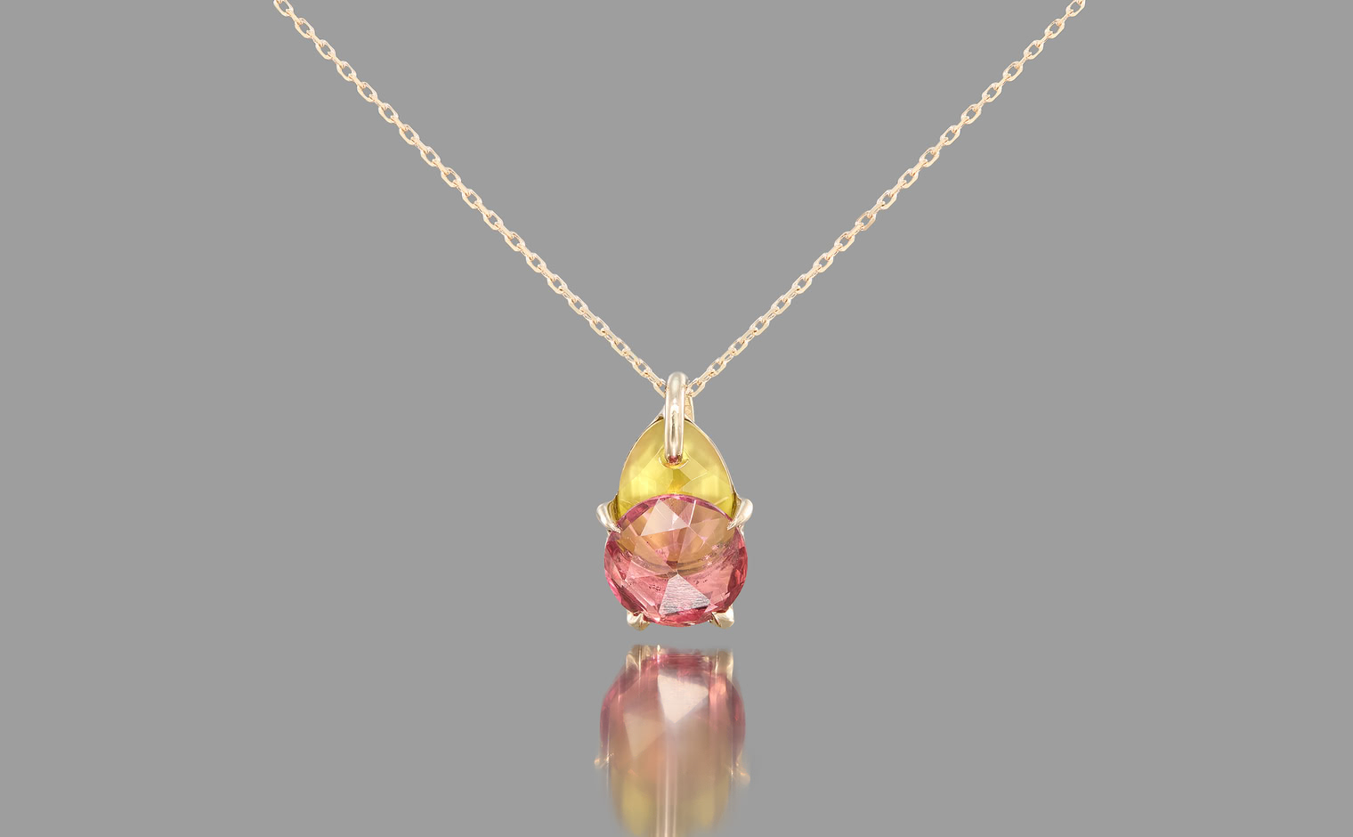 A soft shimmer, where tourmalines capture the warmth of fleeting light. The Calyx Necklace–Sunset embodies refined elegance, an enduring expression of balance—graceful and eternal.