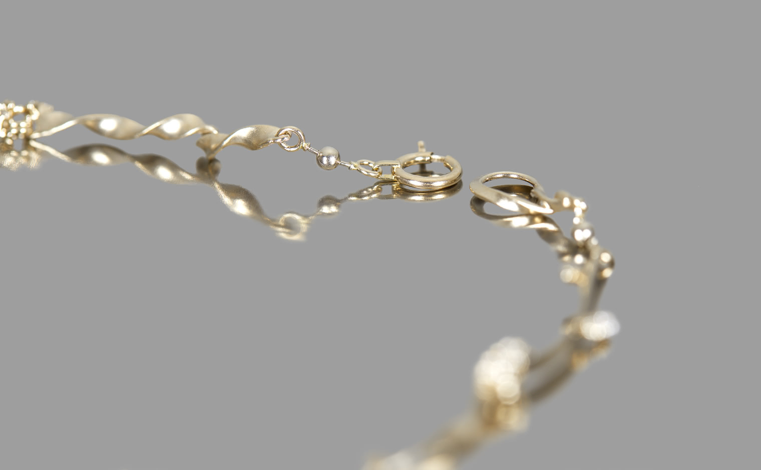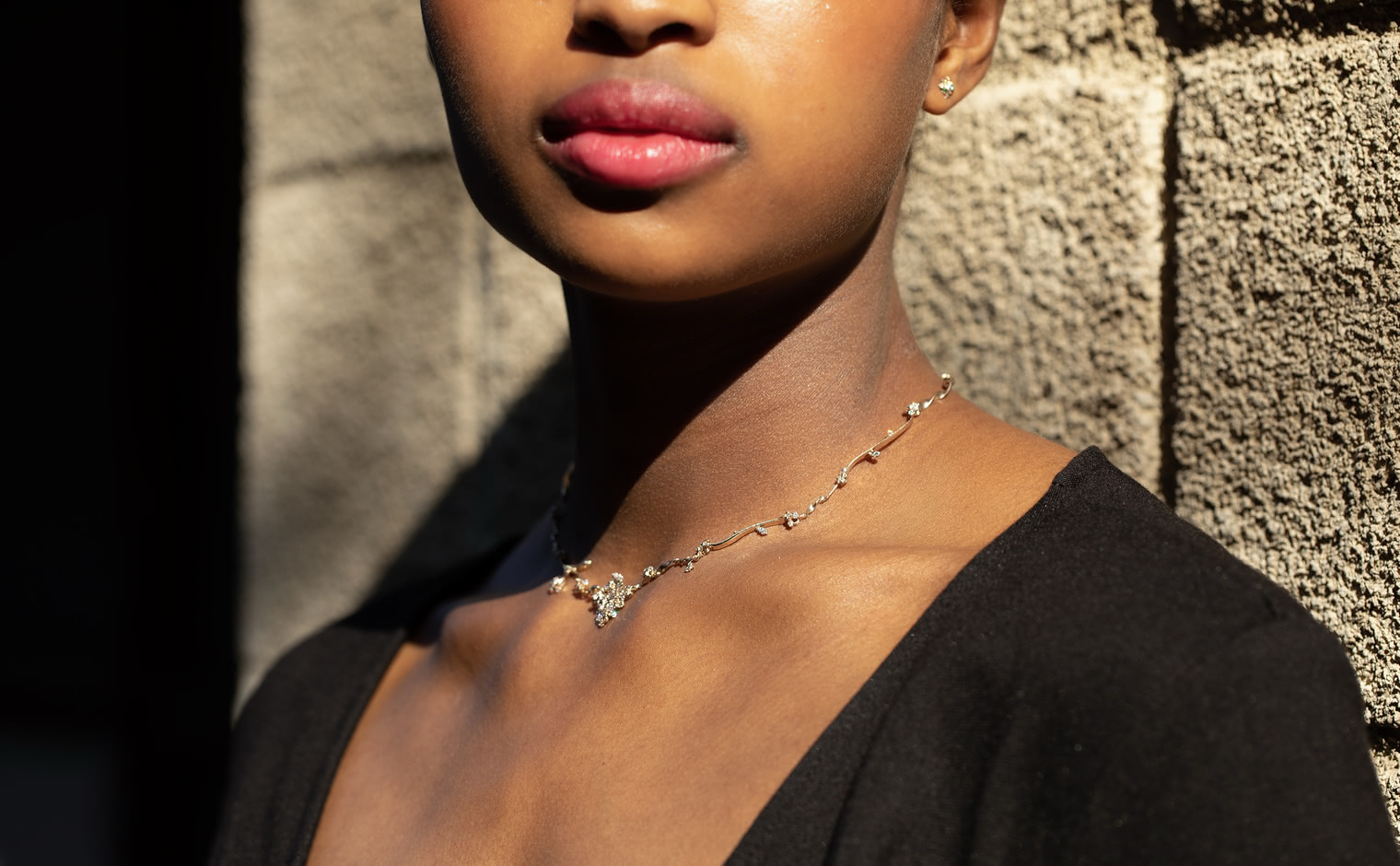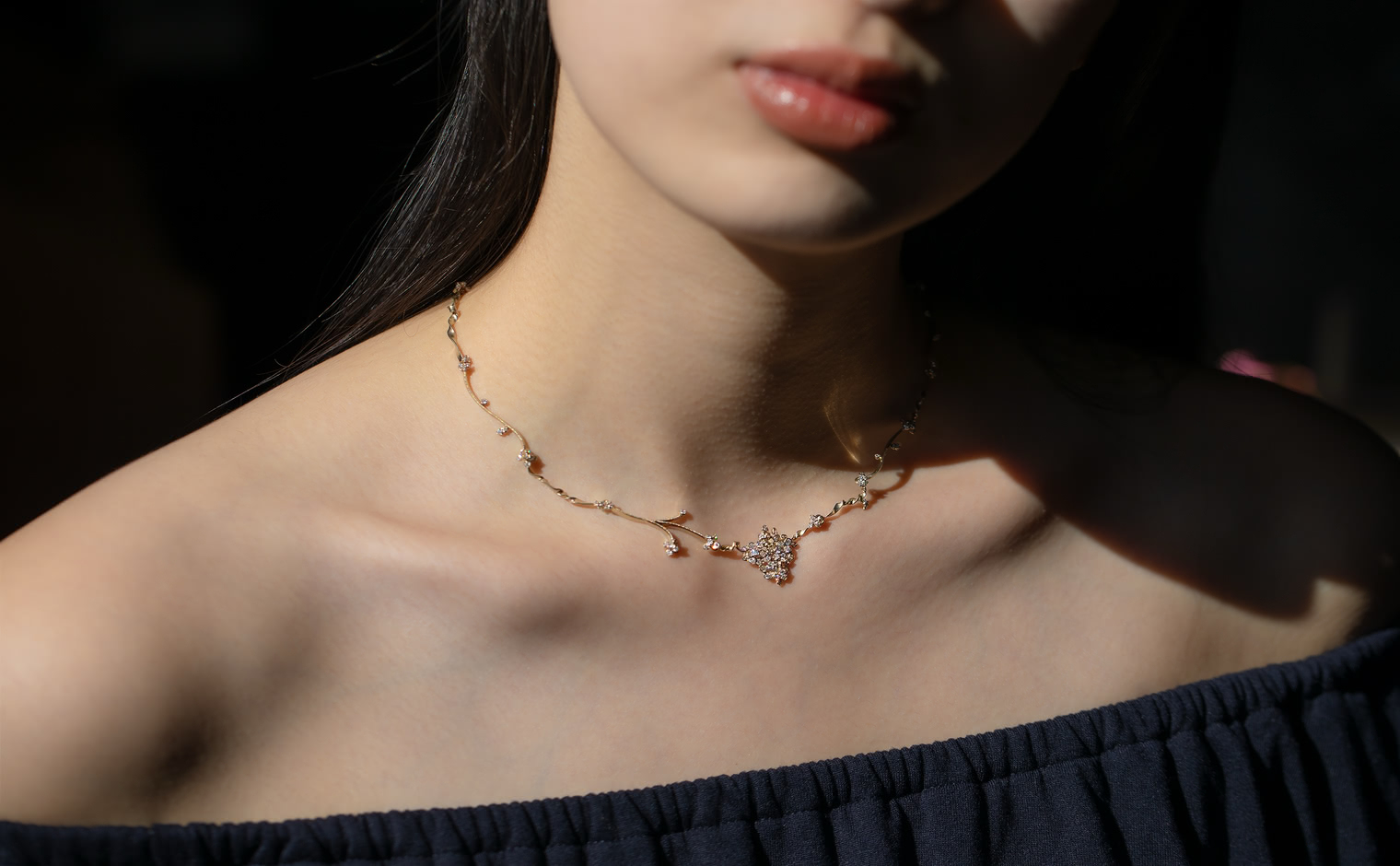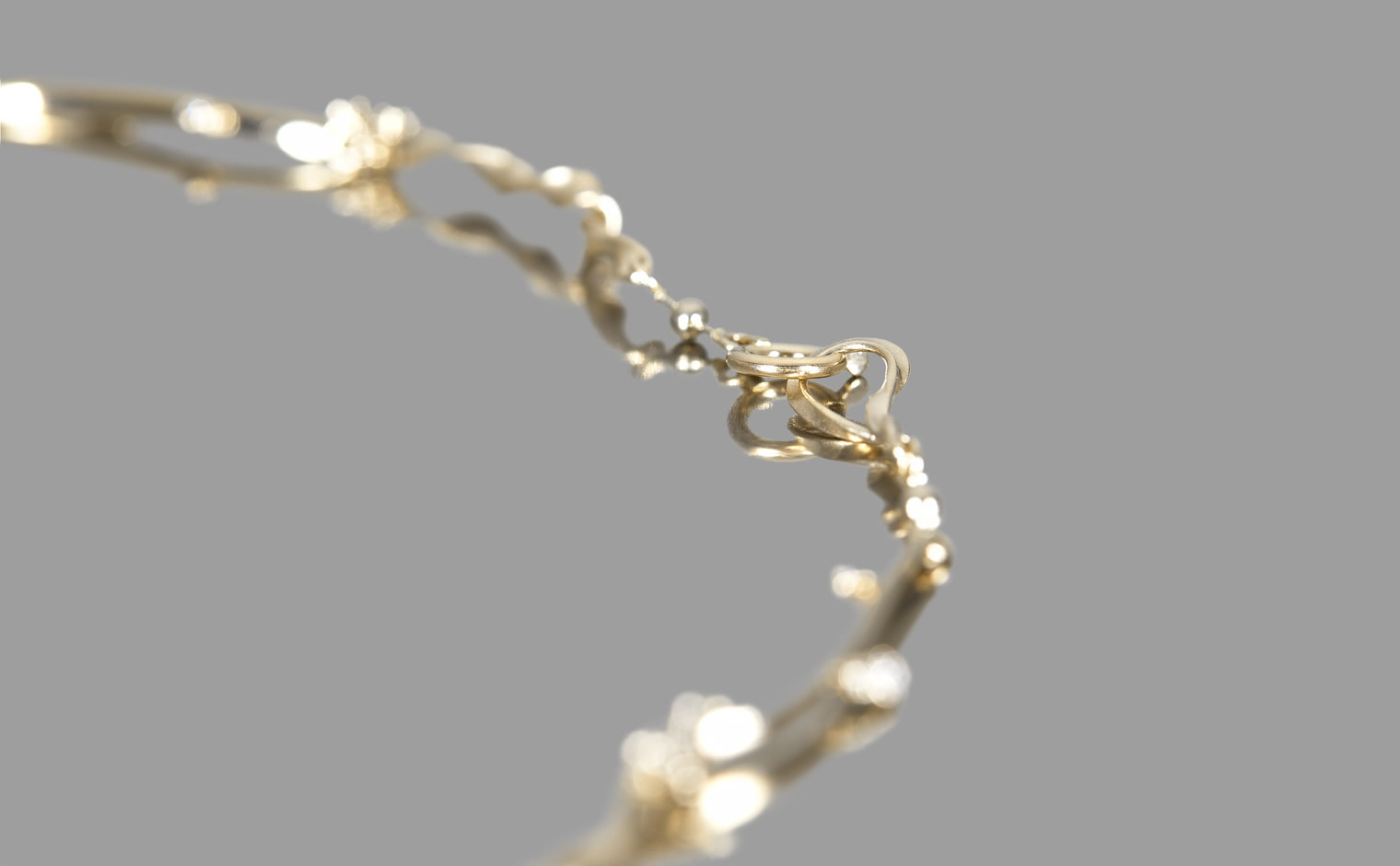 A sight to behold, this masterpiece of twirling, textured and gleaming metal wraps closely around your neck.