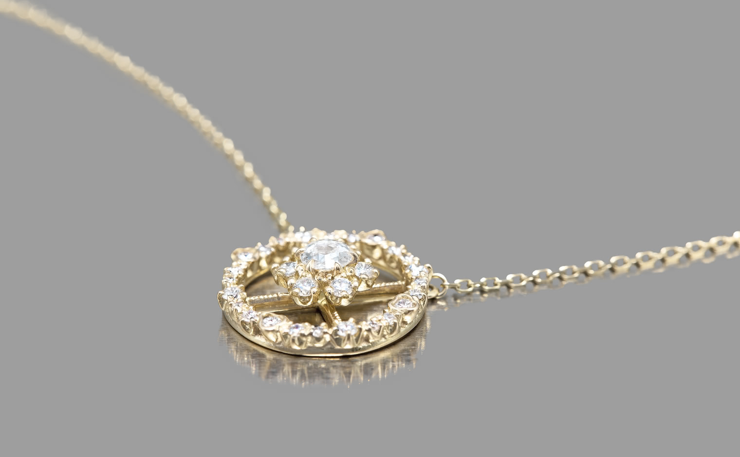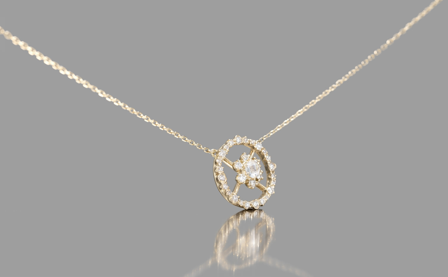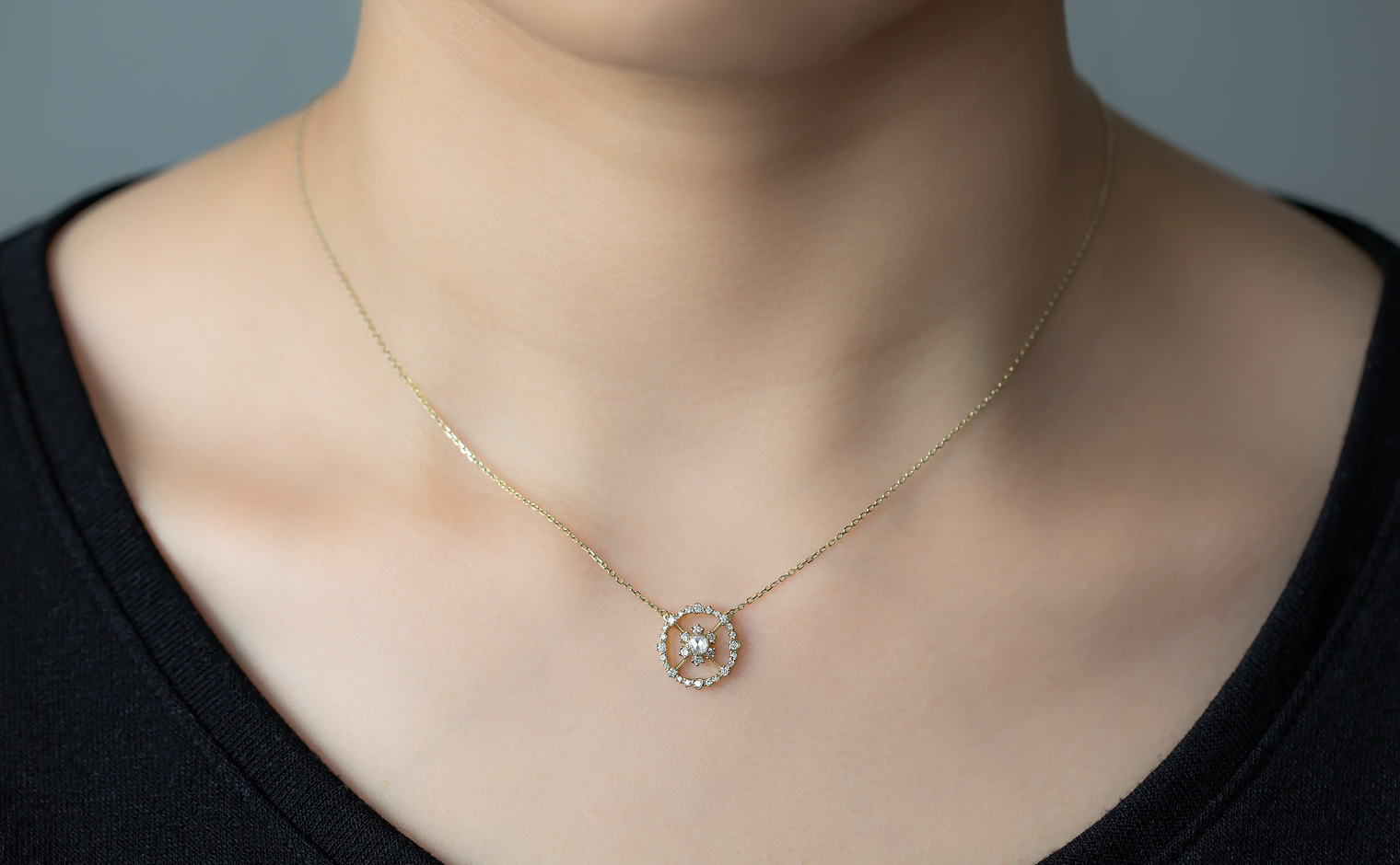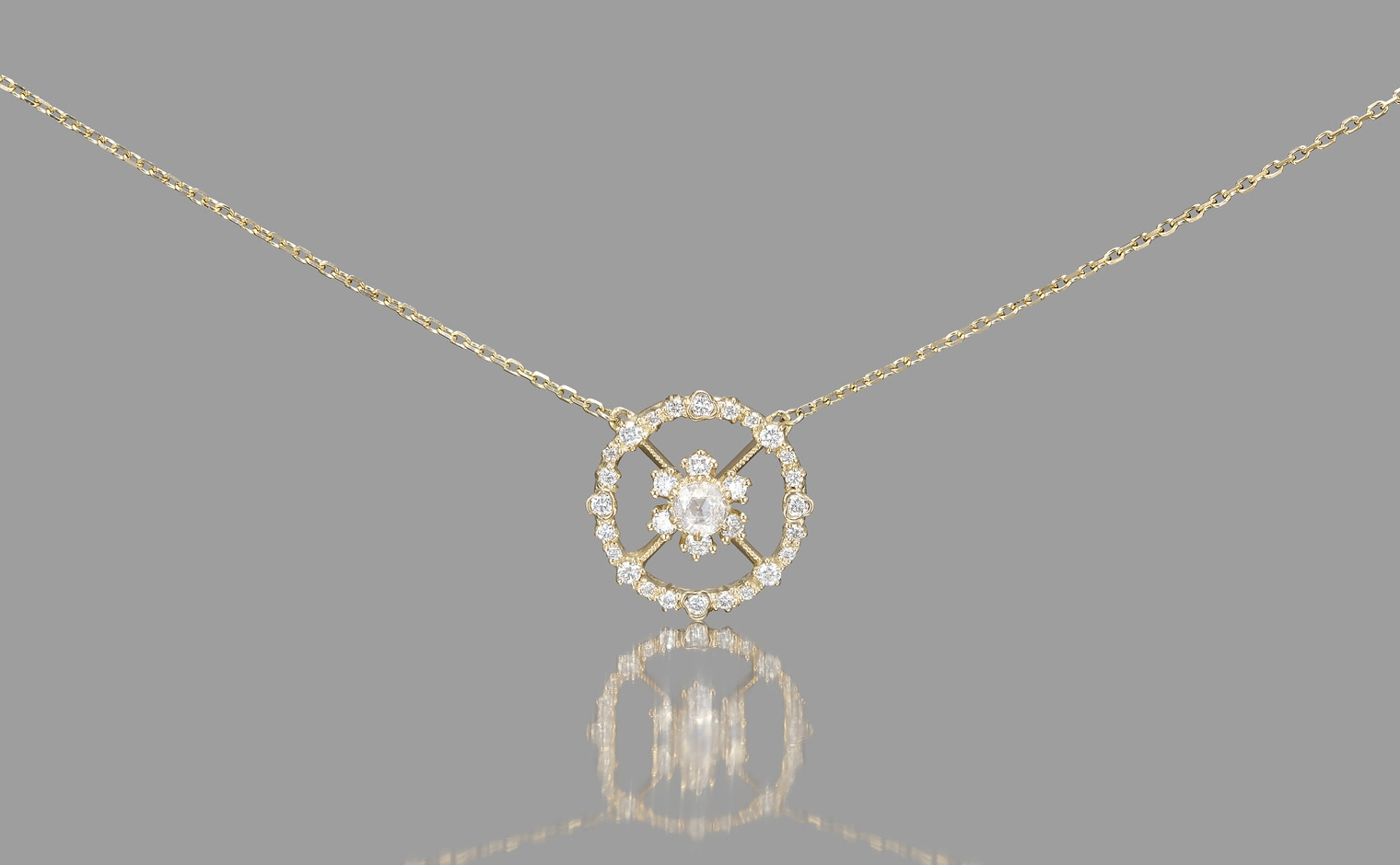 Diamonds, their light unfolding with gentle glow, rest in perfect balance. The Compass Necklace reflects refined artistry, a timeless expression of precision and elegance.