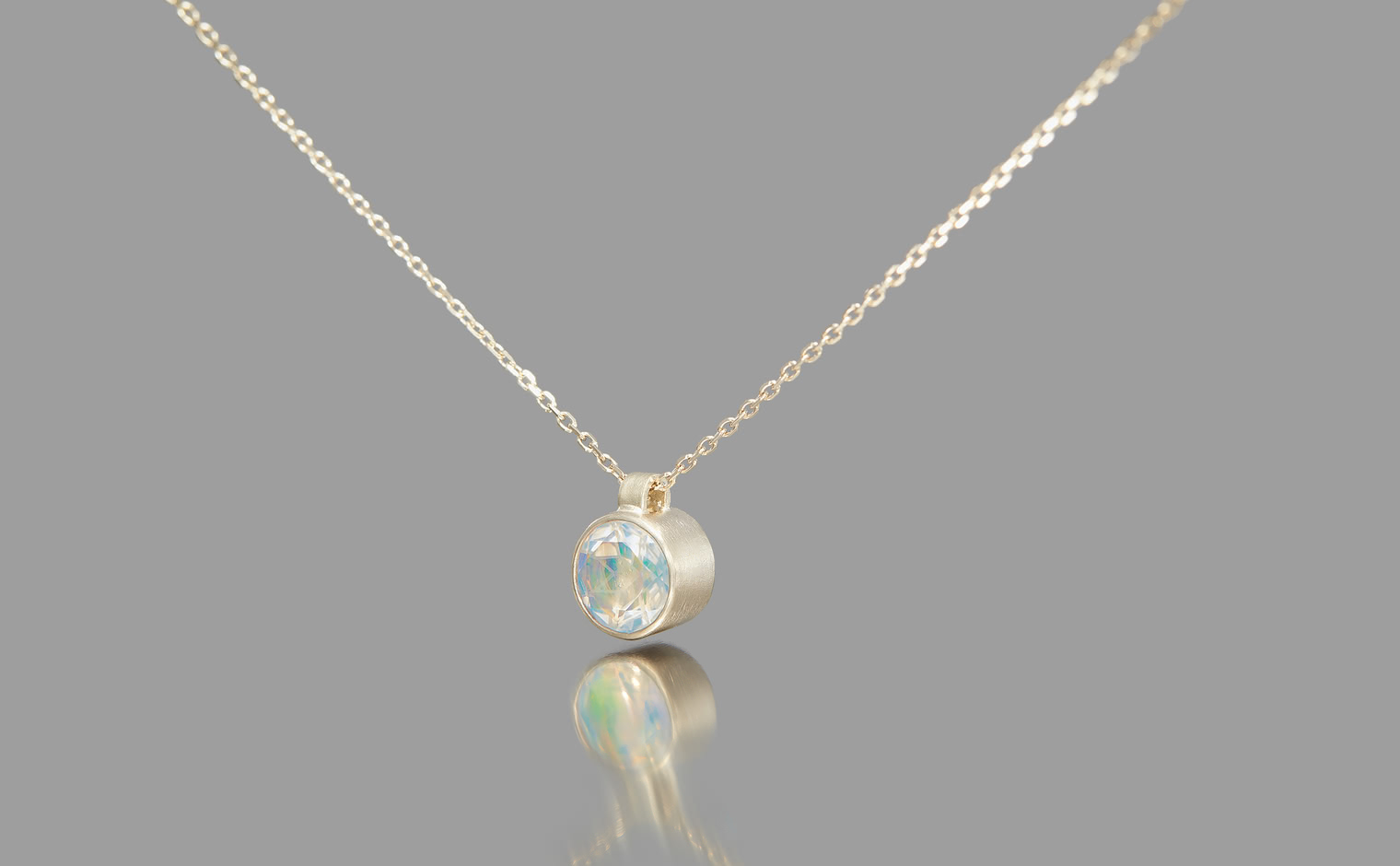 The Cosmic Opal Necklace captures the harmonious beauty of the universe in a stunning creation. This one-of-a-kind masterpiece features an opal with bright green, deep blue, vivid purple, and scarlet red hues hand-cut and set into an gold setting that sways freely from a silk-thin adjustable gold chain.