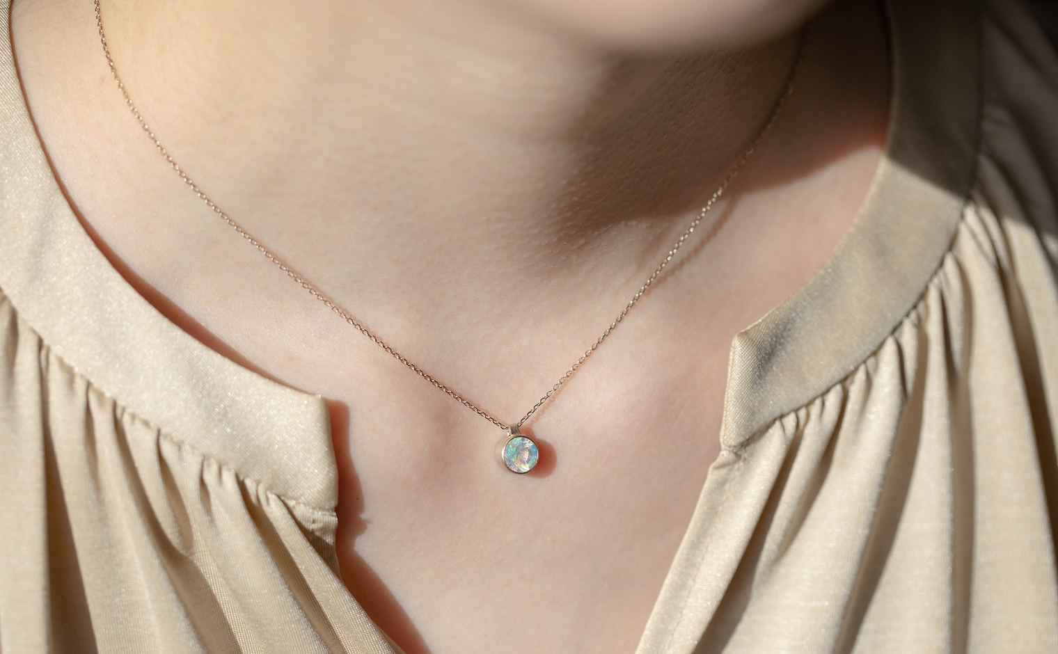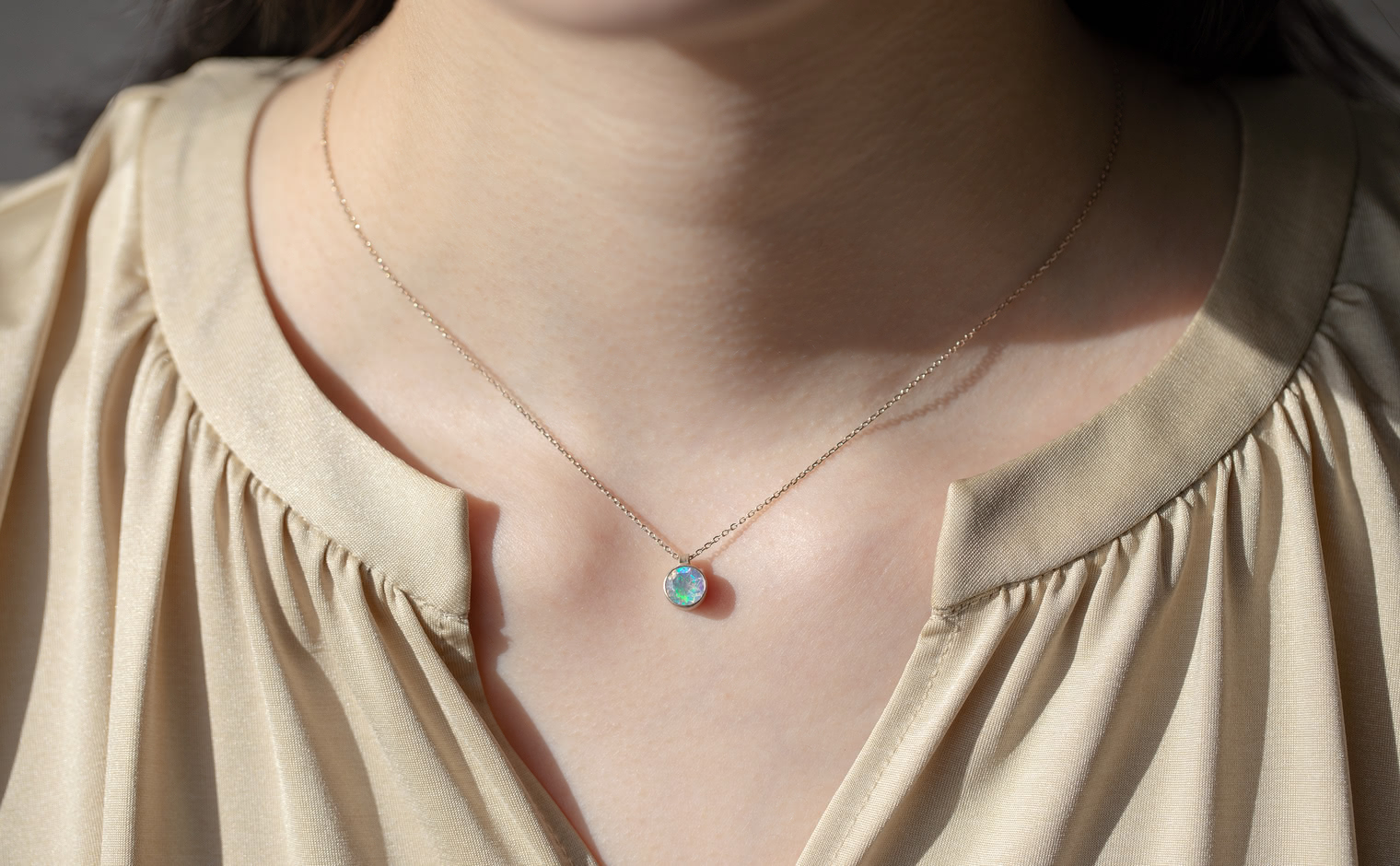 Experience exceptional craftsmanship and timeless beauty with the Cosmic Opal Necklace. Its intricate gold setting and luxurious silk-thin adjustable chain make it the perfect choice for those who appreciate the finer things in life. Indulge in the harmony of beauty and embrace the wonder of the universe that surrounds us all. -