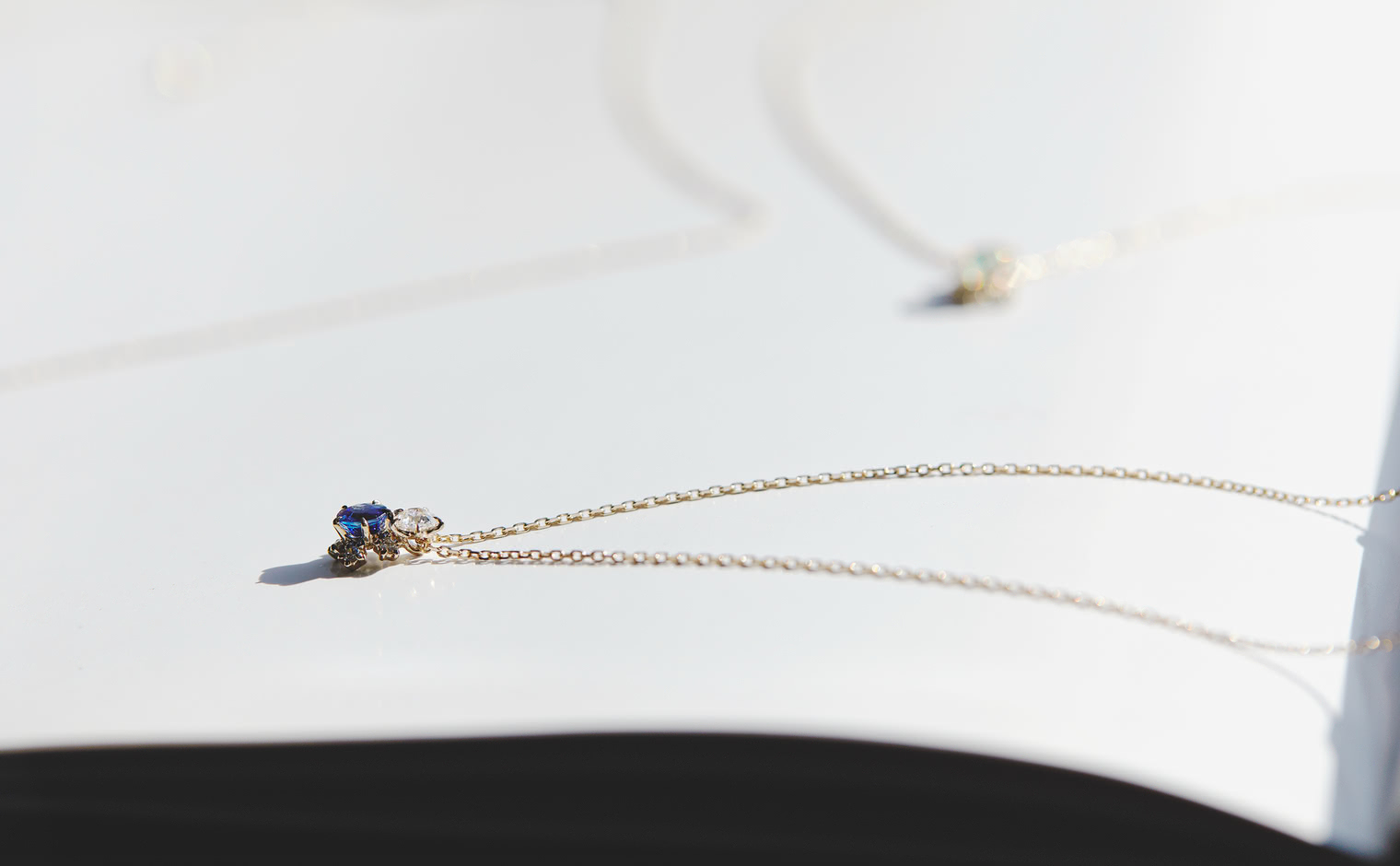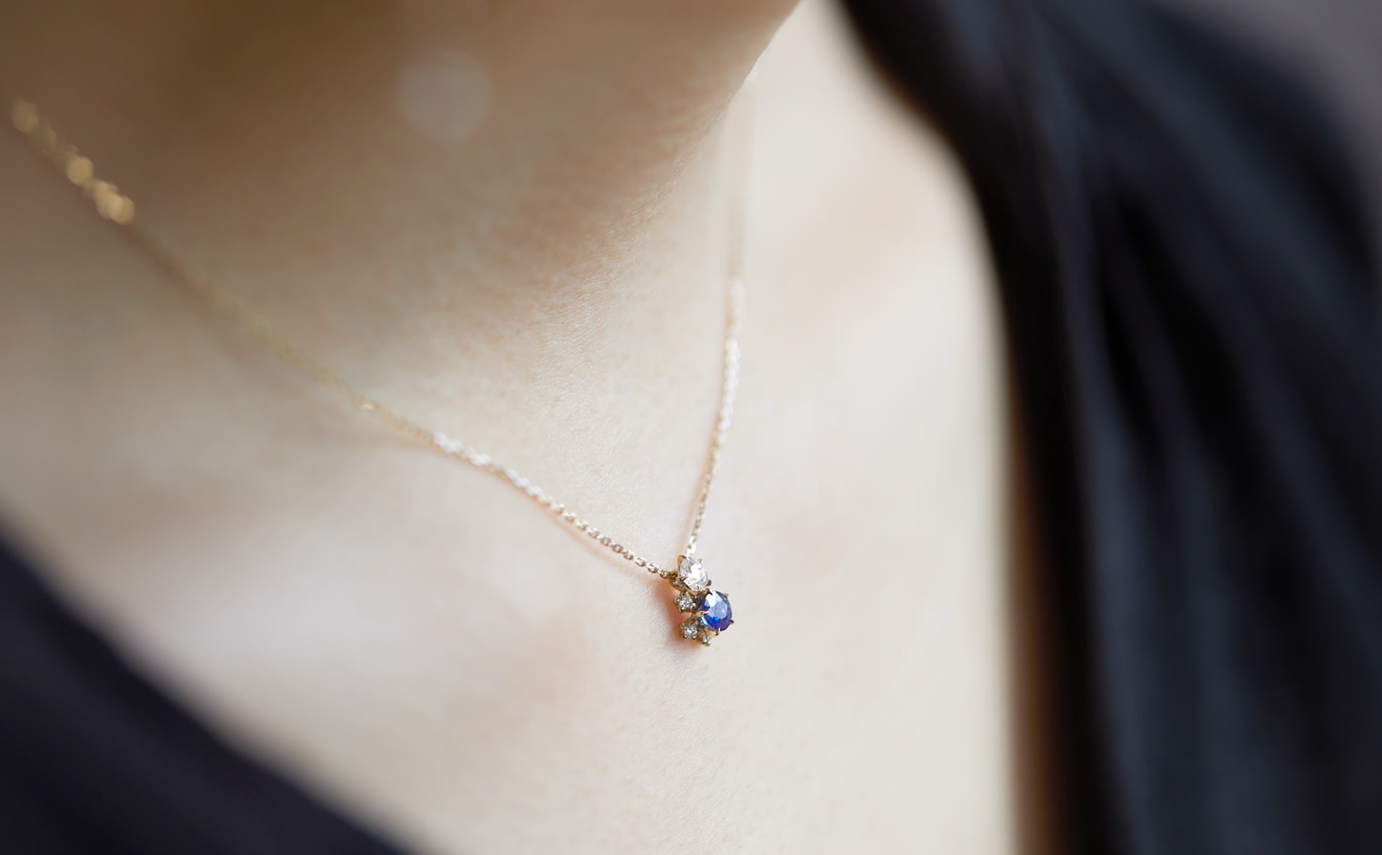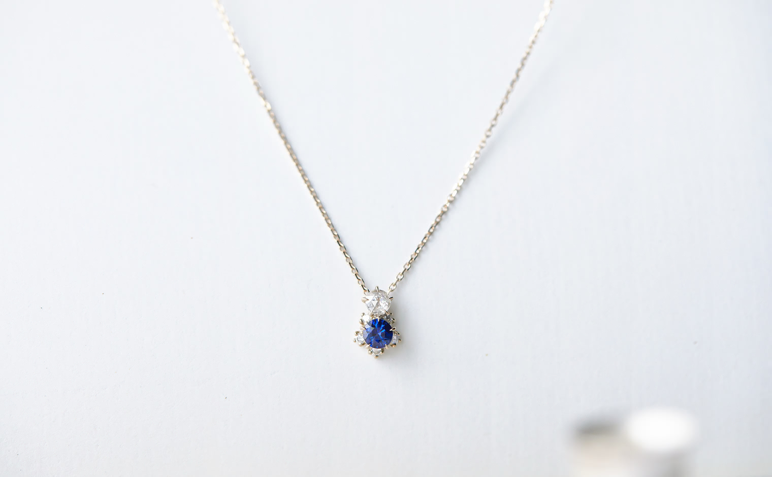 A quiet radiance lingers, where sapphire and diamonds flow in graceful harmony. The Crest Necklace–Sapphire whispers sophistication, a serene expression of enduring beauty and charm.