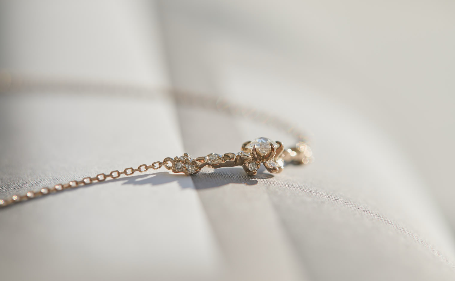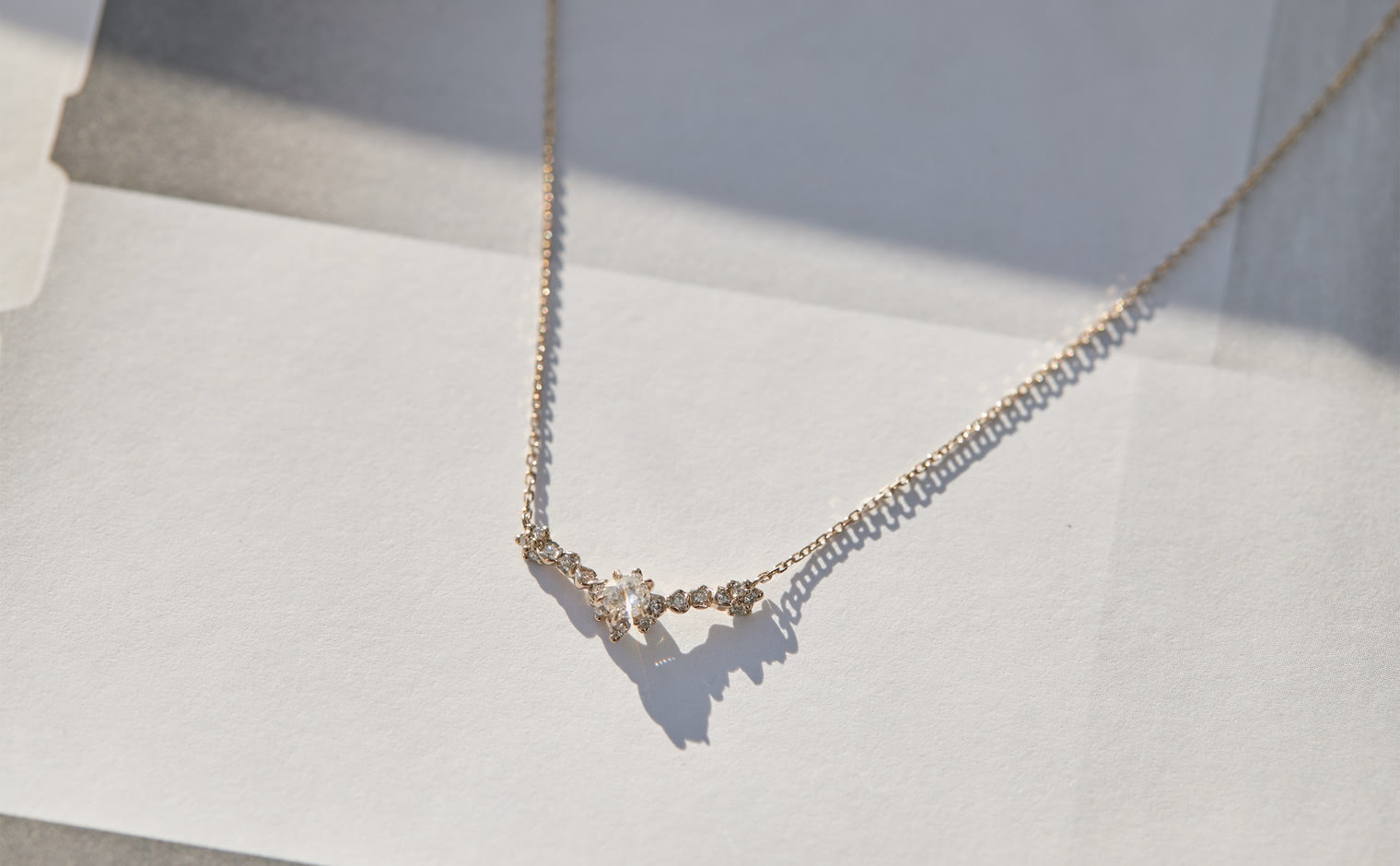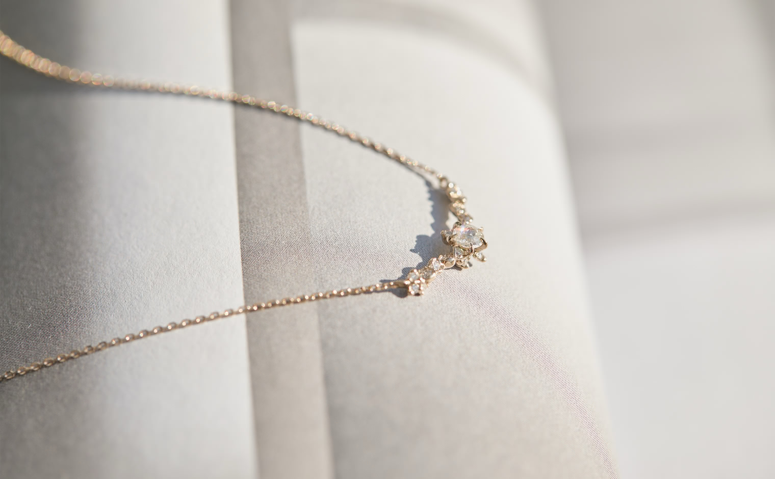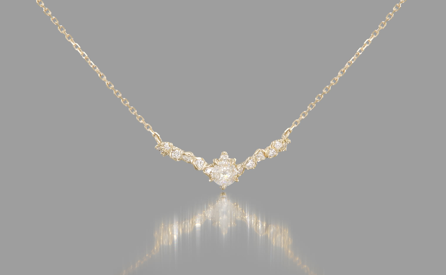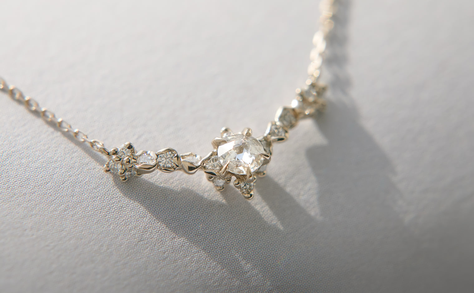 A dance of light and form, where diamonds shimmer in quiet harmony. The Curved Snowflake Necklace–Diamond reflects enduring grace, its elegance revealed in every delicate movement—timeless and refined.