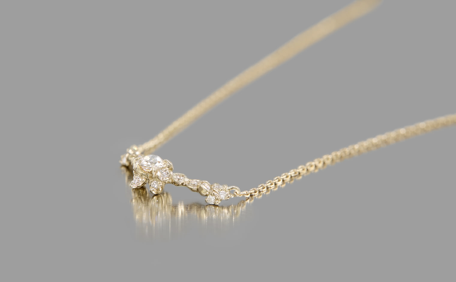 Curved Snowflake Necklace–Diamond