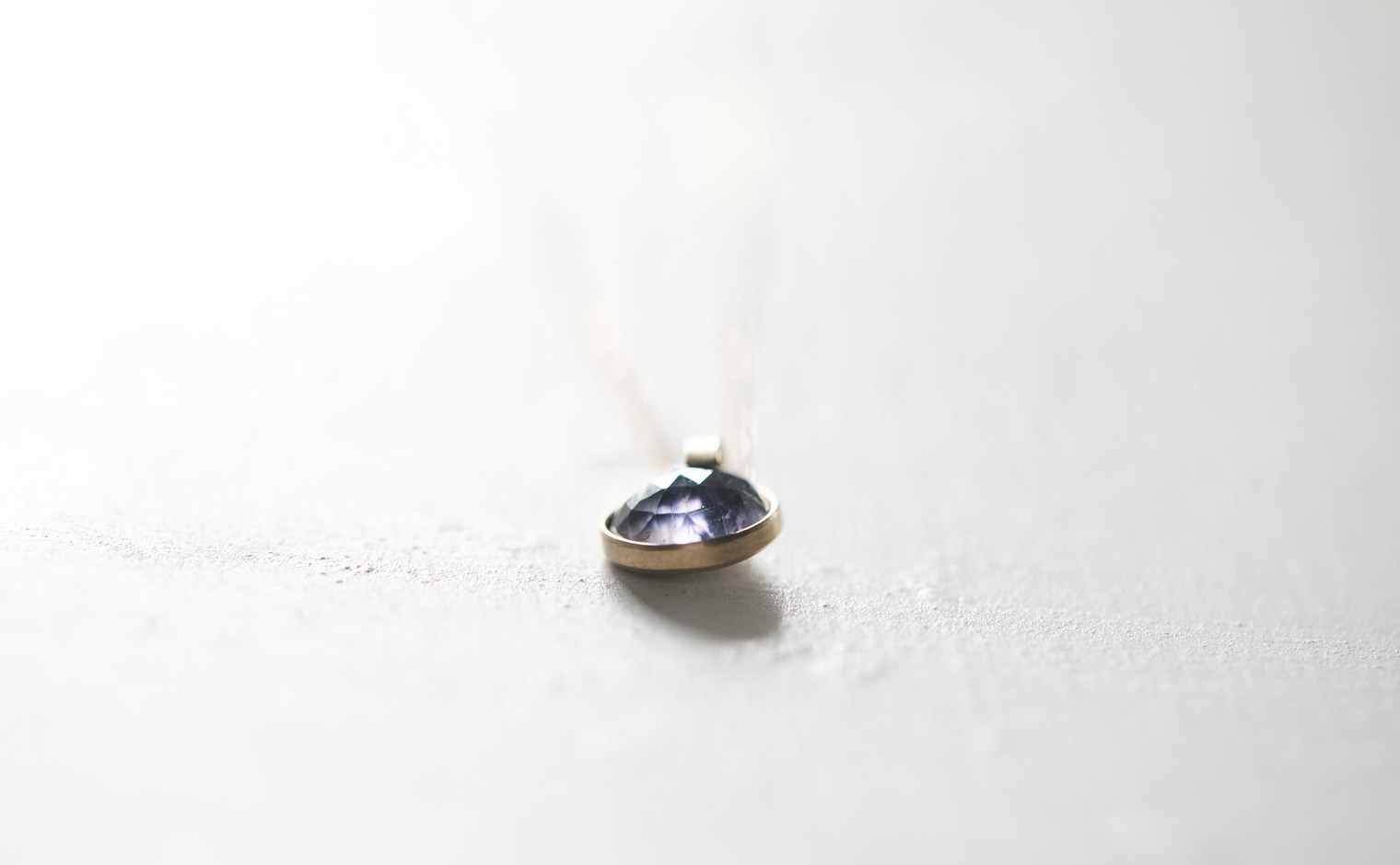 An iolite casting its indigo hue like a quiet echo of night. The Horizon Iolite Necklace evokes subtle mystery, a delicate expression of depth and shadowed light.