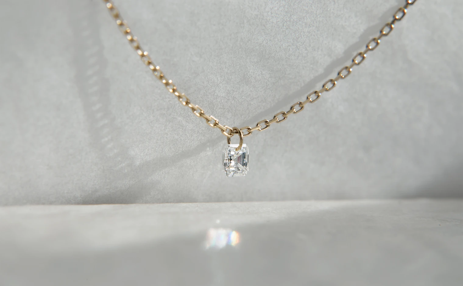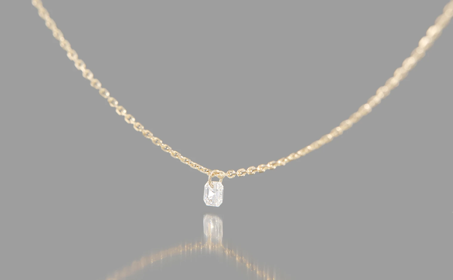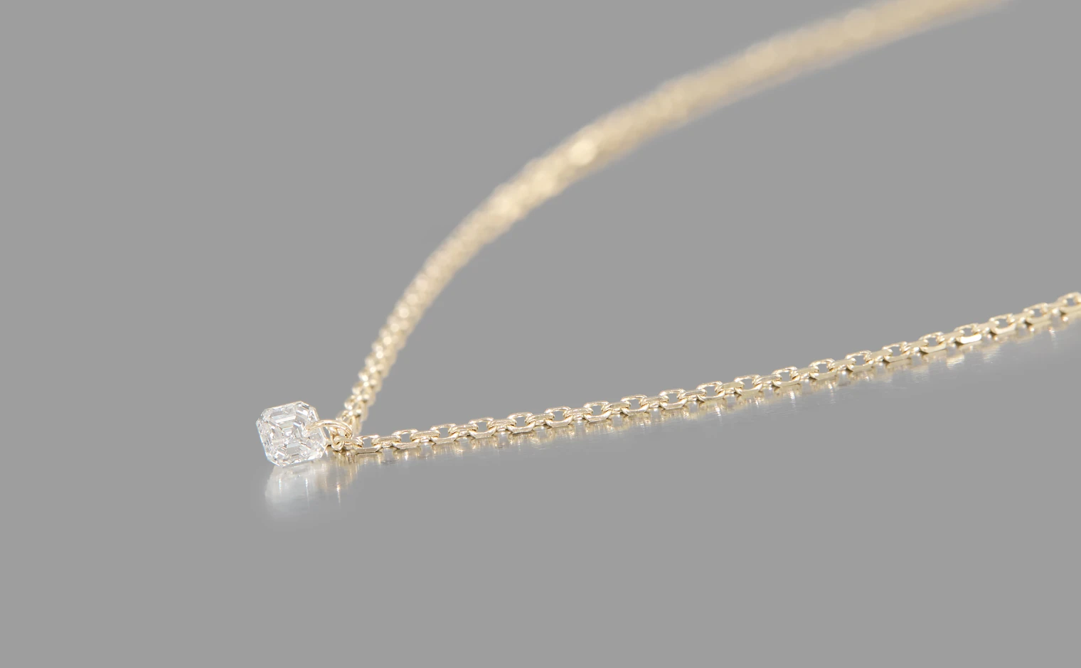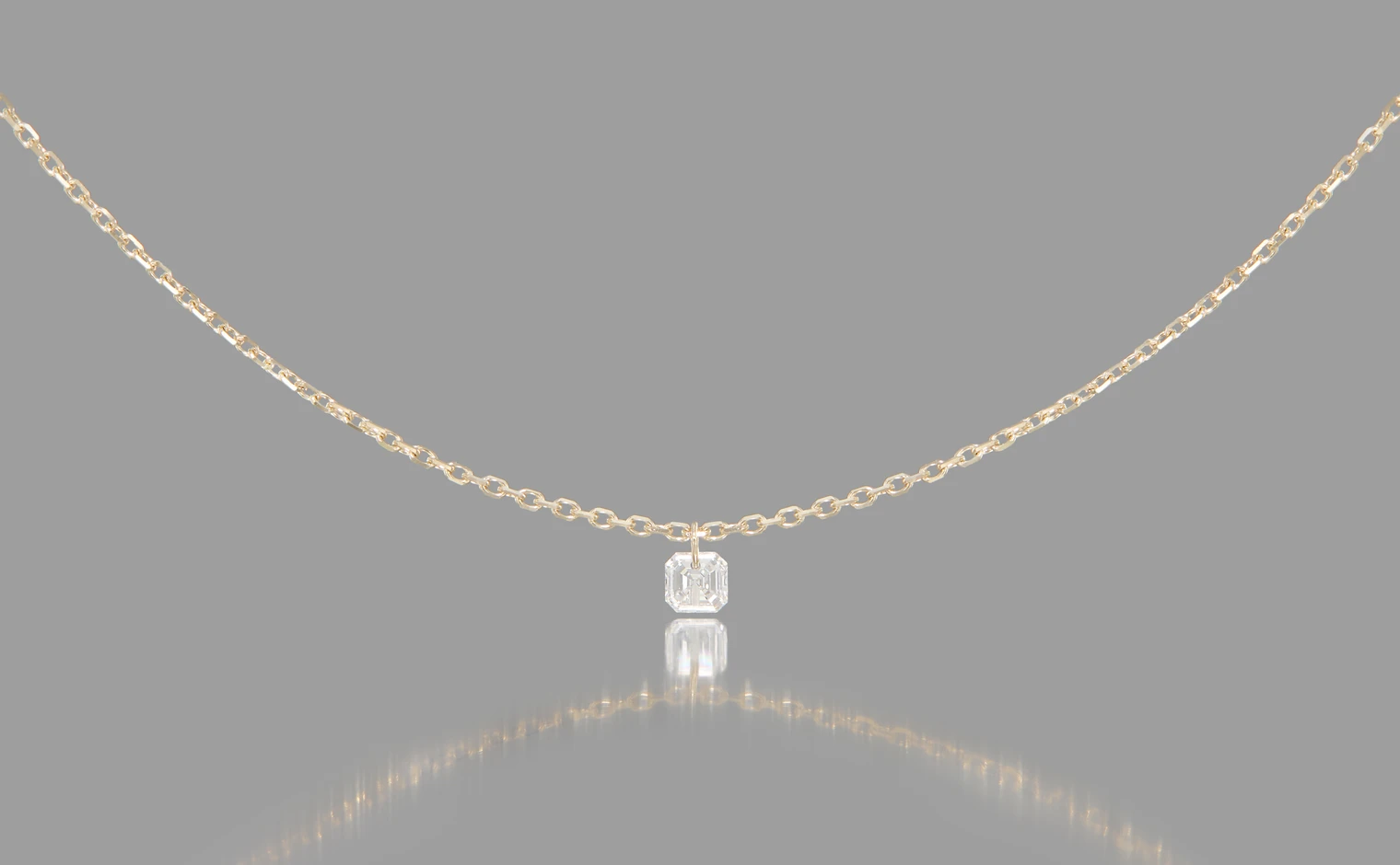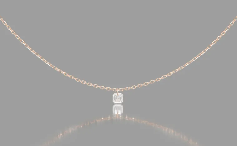 Asscher cut, F color, clarity SI1, very good cut and polish. - Chain: adjustable, 45 cm (18") maximum length, centered at 40 cm.