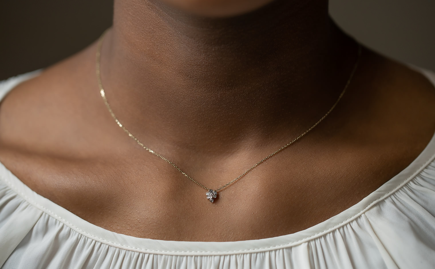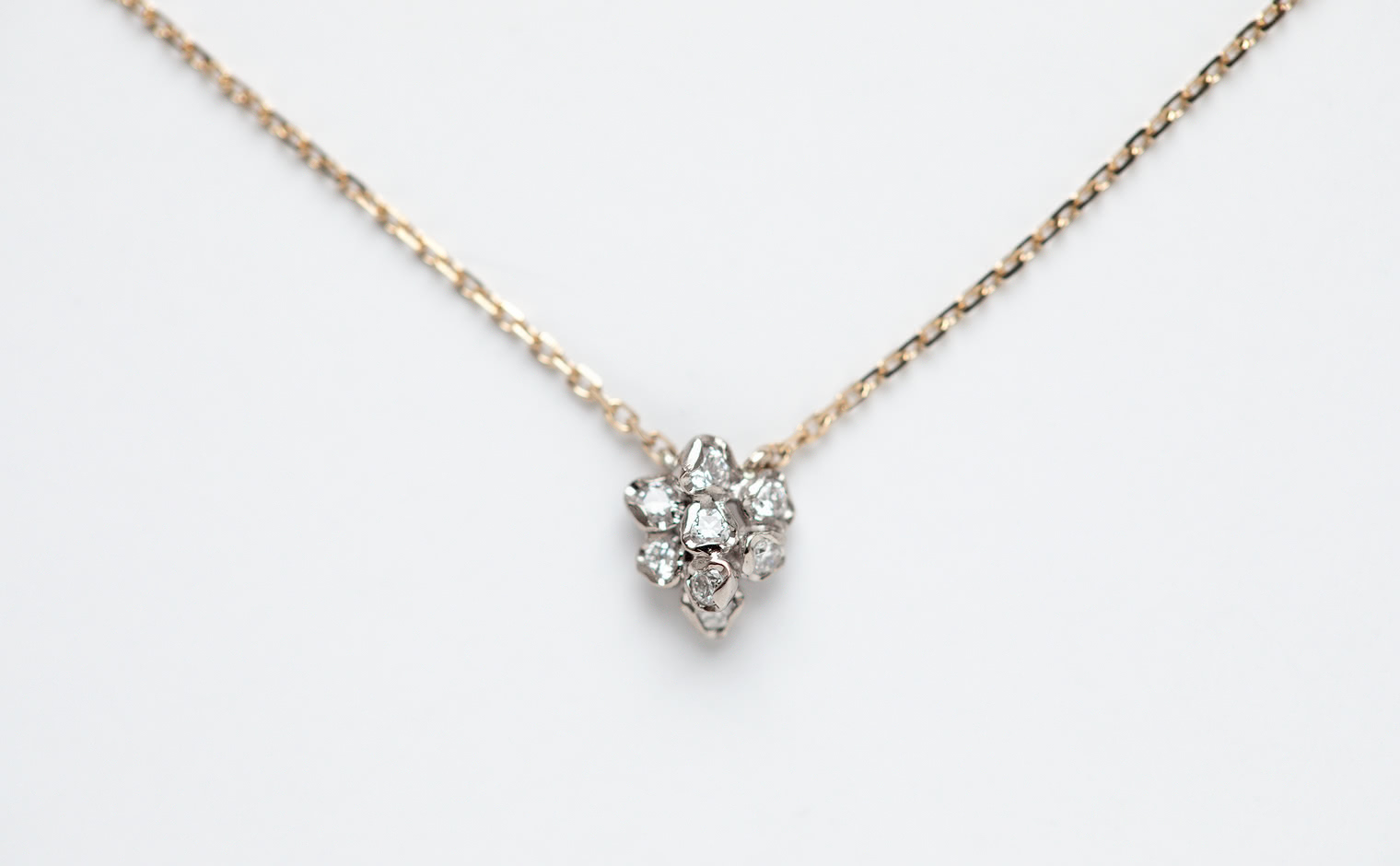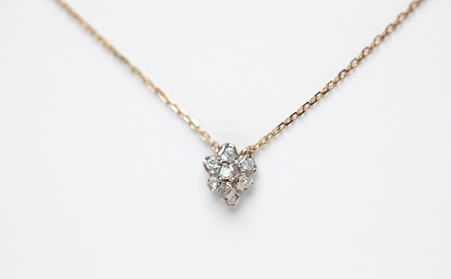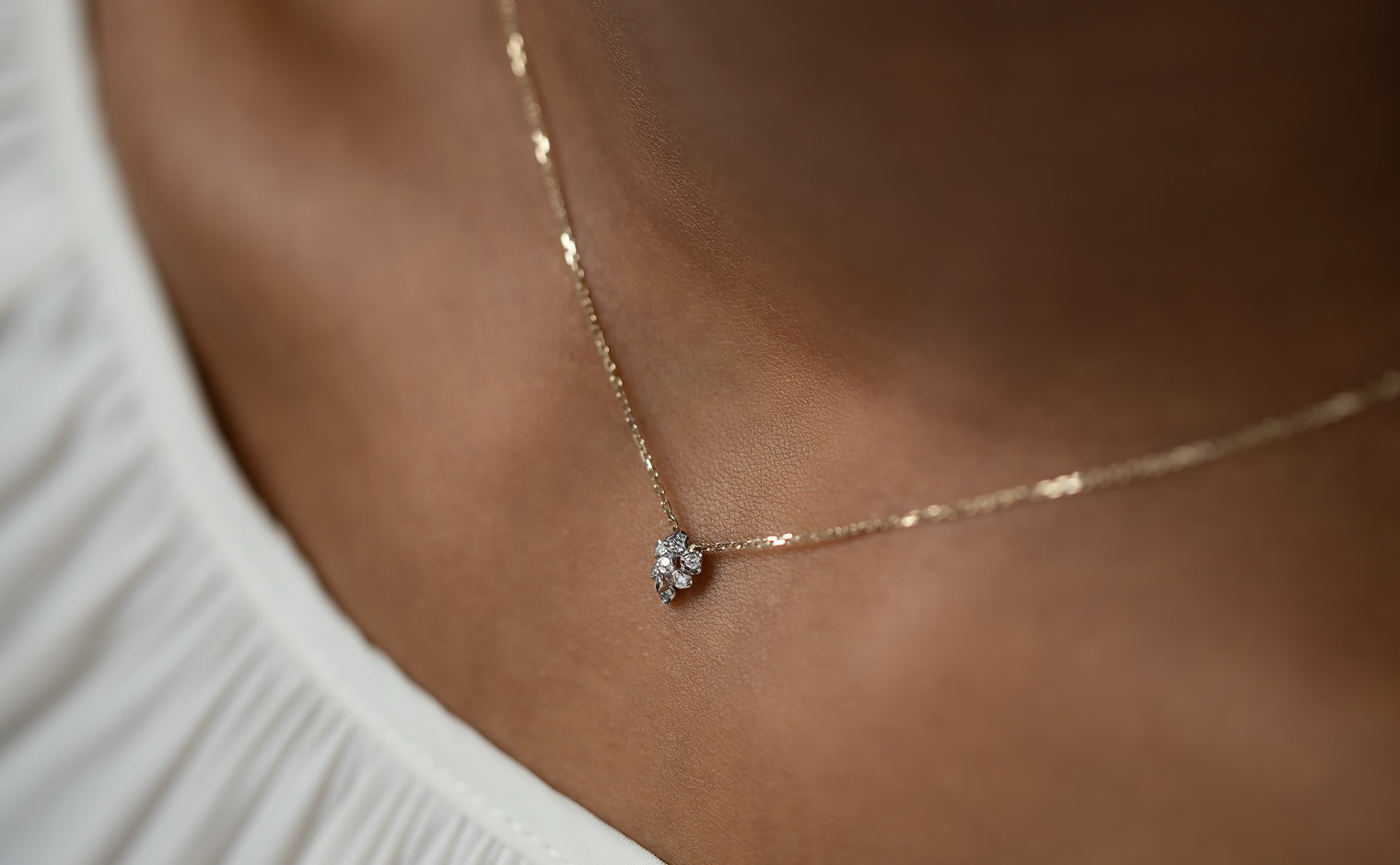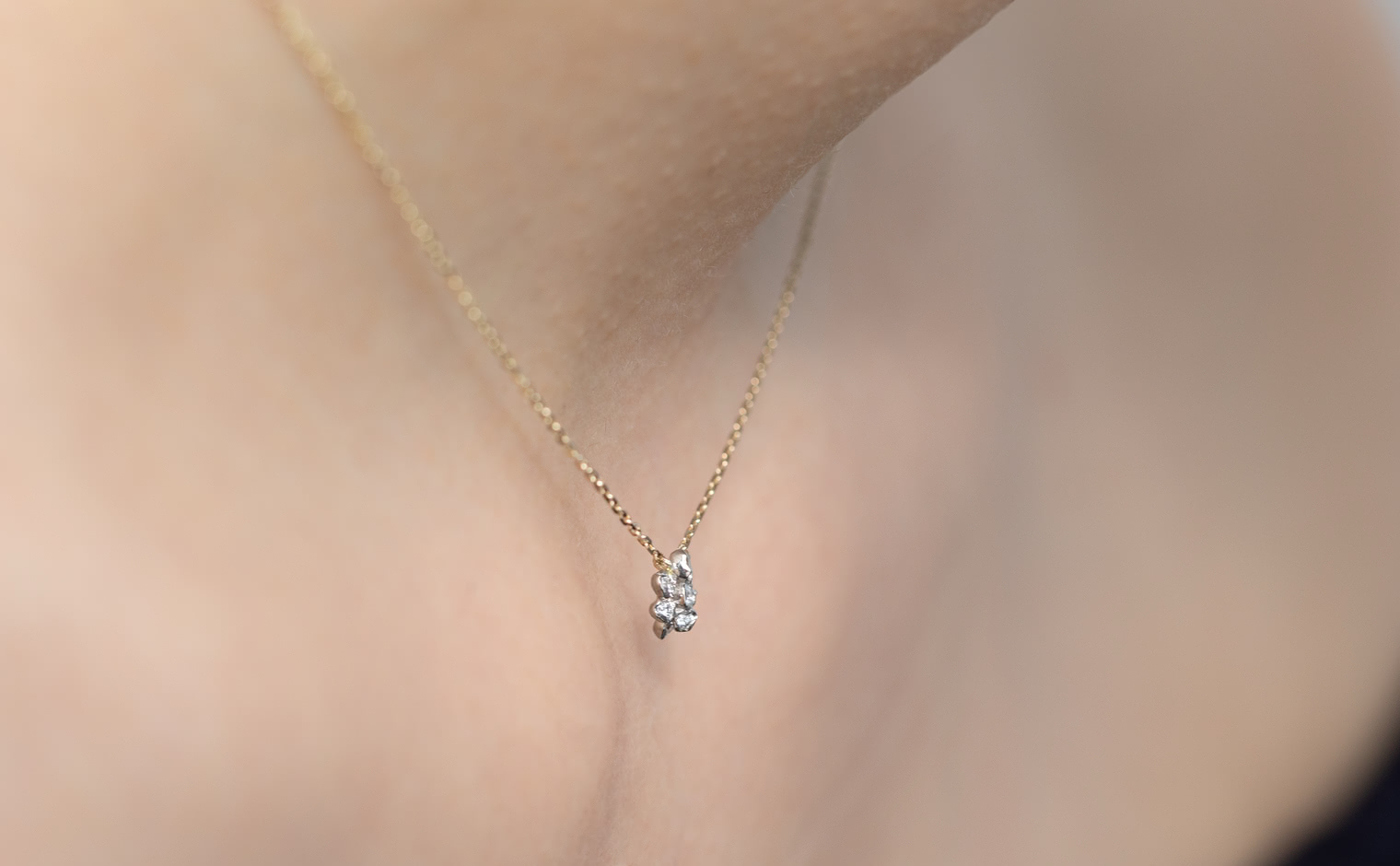 Light gathers in delicate formation, a quiet bloom in motion. The Little Bud Necklace reflects nature’s poetry, a whispered expression of elegance—graceful, radiant, and enduring.