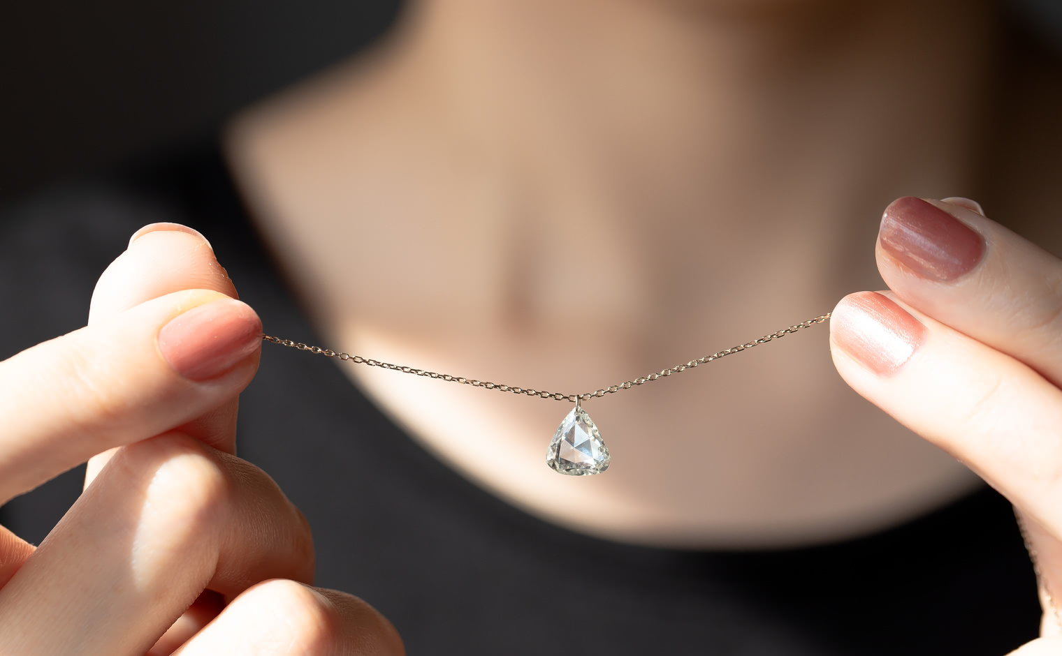 The thin chain of the finest custom-blended metal with its special handmade sliding lock gives you the freedom to wear this necklace at your perfect length.