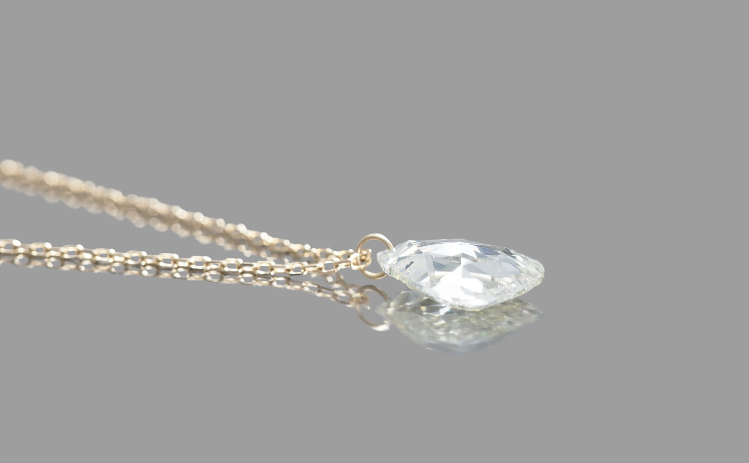This beautiful pyramid diamond is selected and cut with facets that catch the light and reflect it deeply, creating a fire and sparkly glow.