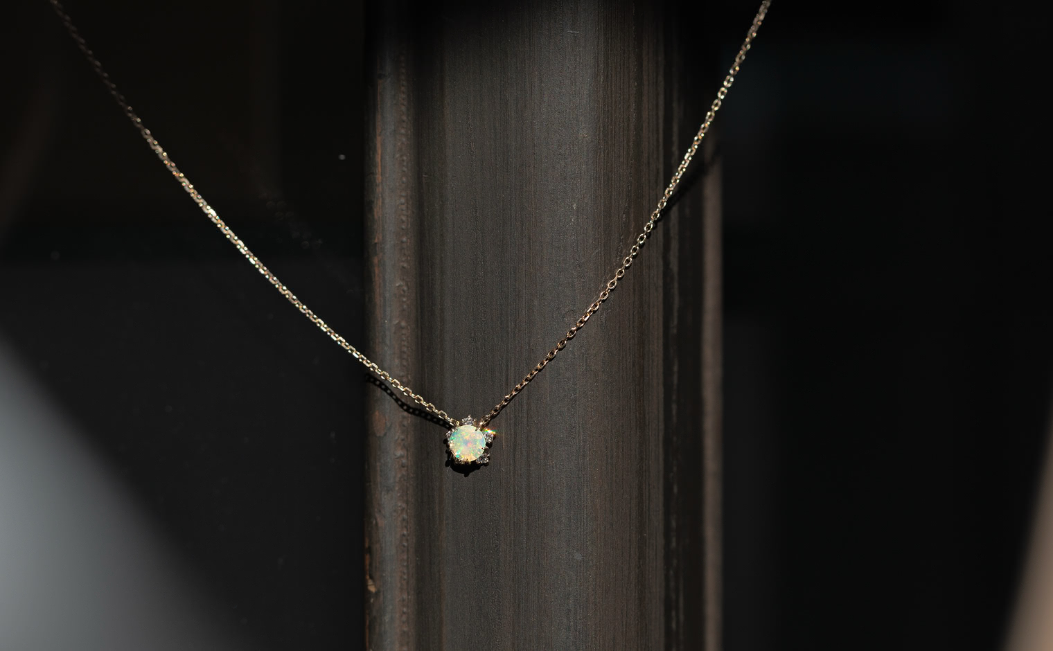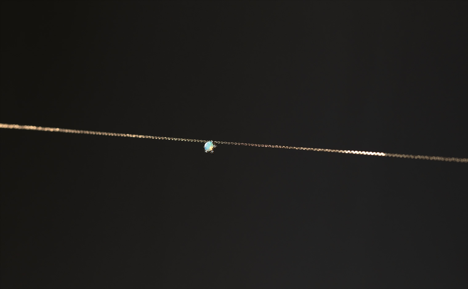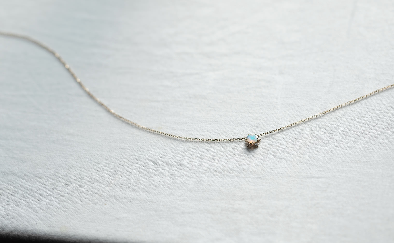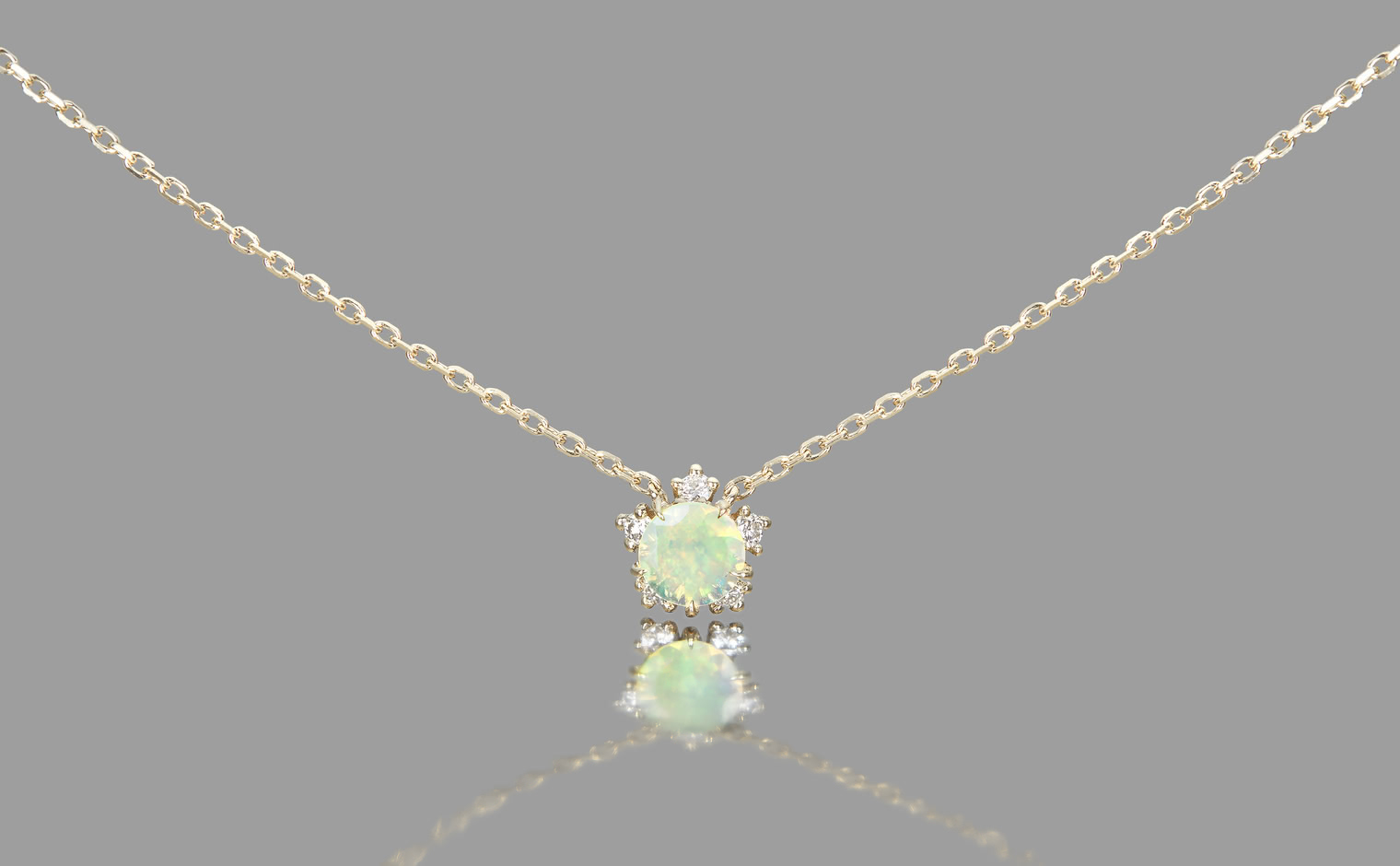 Wish upon a magical snowflake. With its incandescently beaming round-cut opal nestled upon the quaint, glittering halo of five ice-white diamonds of the Snowflake setting which hangs gracefully from a barely-there adjustable satin-like custom-metal linked chain, the Snowflake Necklace-Opal creates an enchanting illusion of a little glacial wonder floating elegantly against your skin.