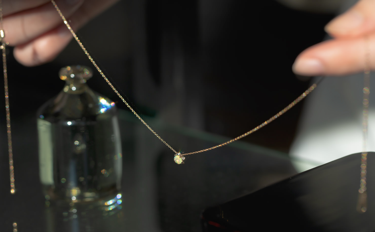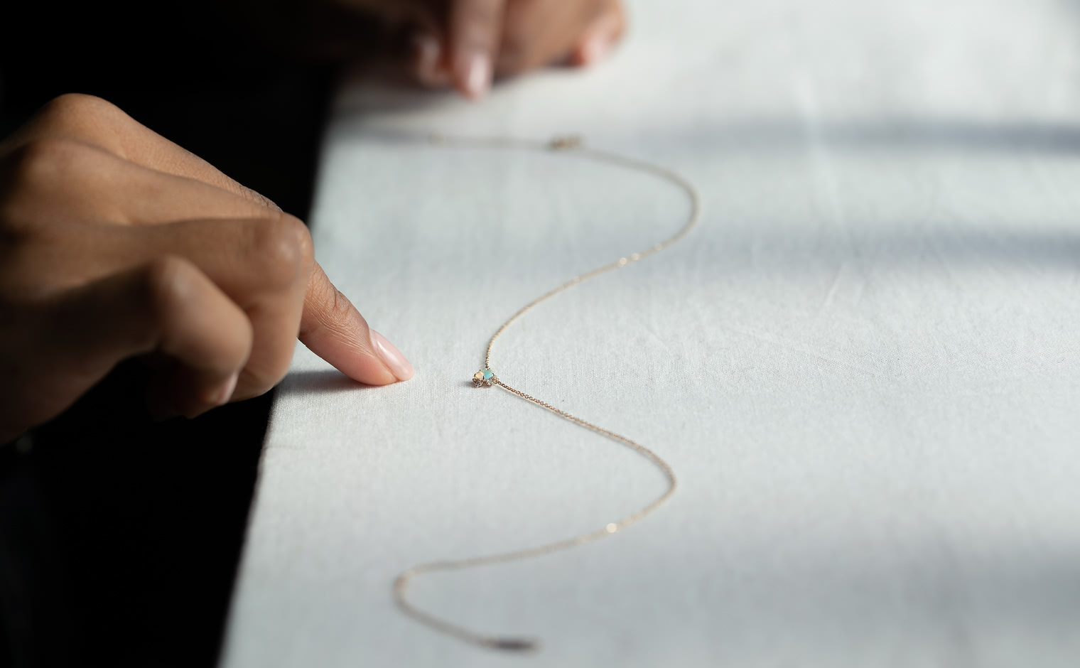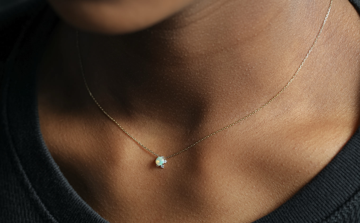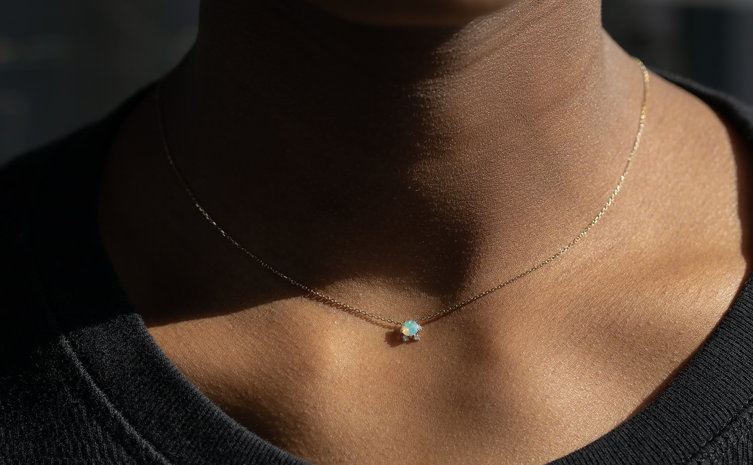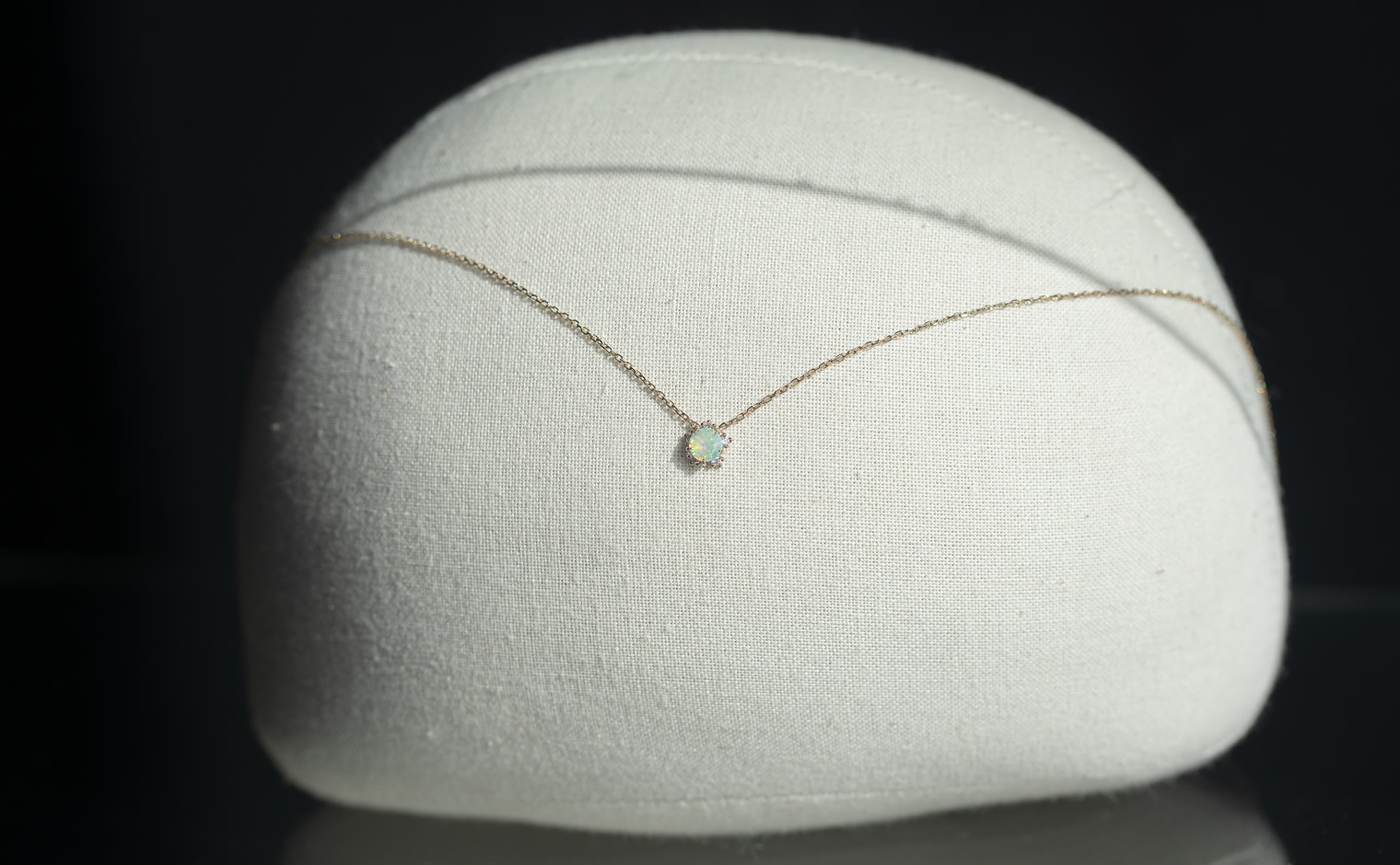 Wish upon a magical snowflake. With its incandescently beaming round-cut opal nestled upon the quaint, glittering halo of five ice-white diamonds of the Snowflake setting which hangs gracefully from a barely-there adjustable satin-like custom-metal linked chain, the Snowflake Necklace-Opal creates an enchanting illusion of a little glacial wonder floating elegantly against your skin.