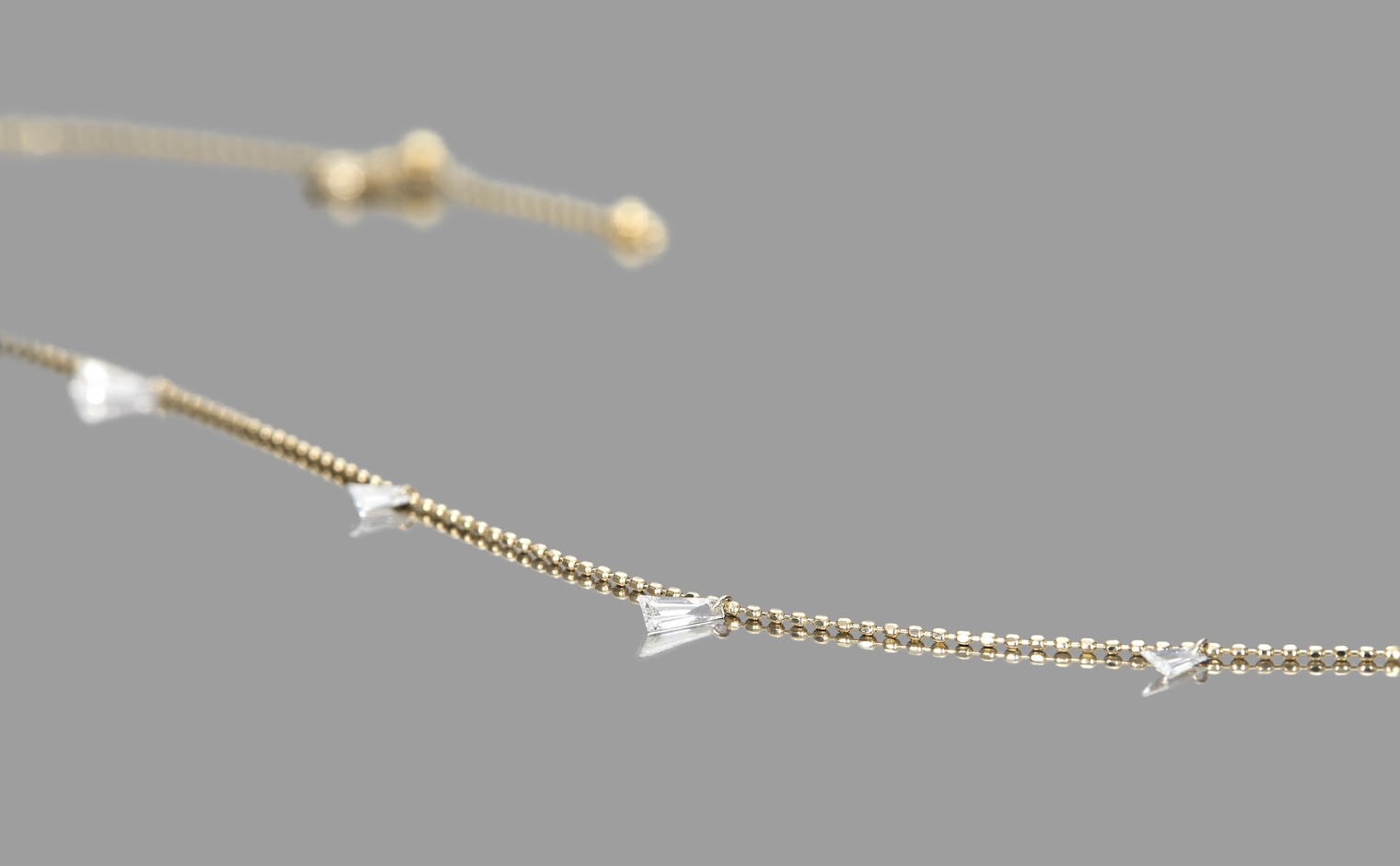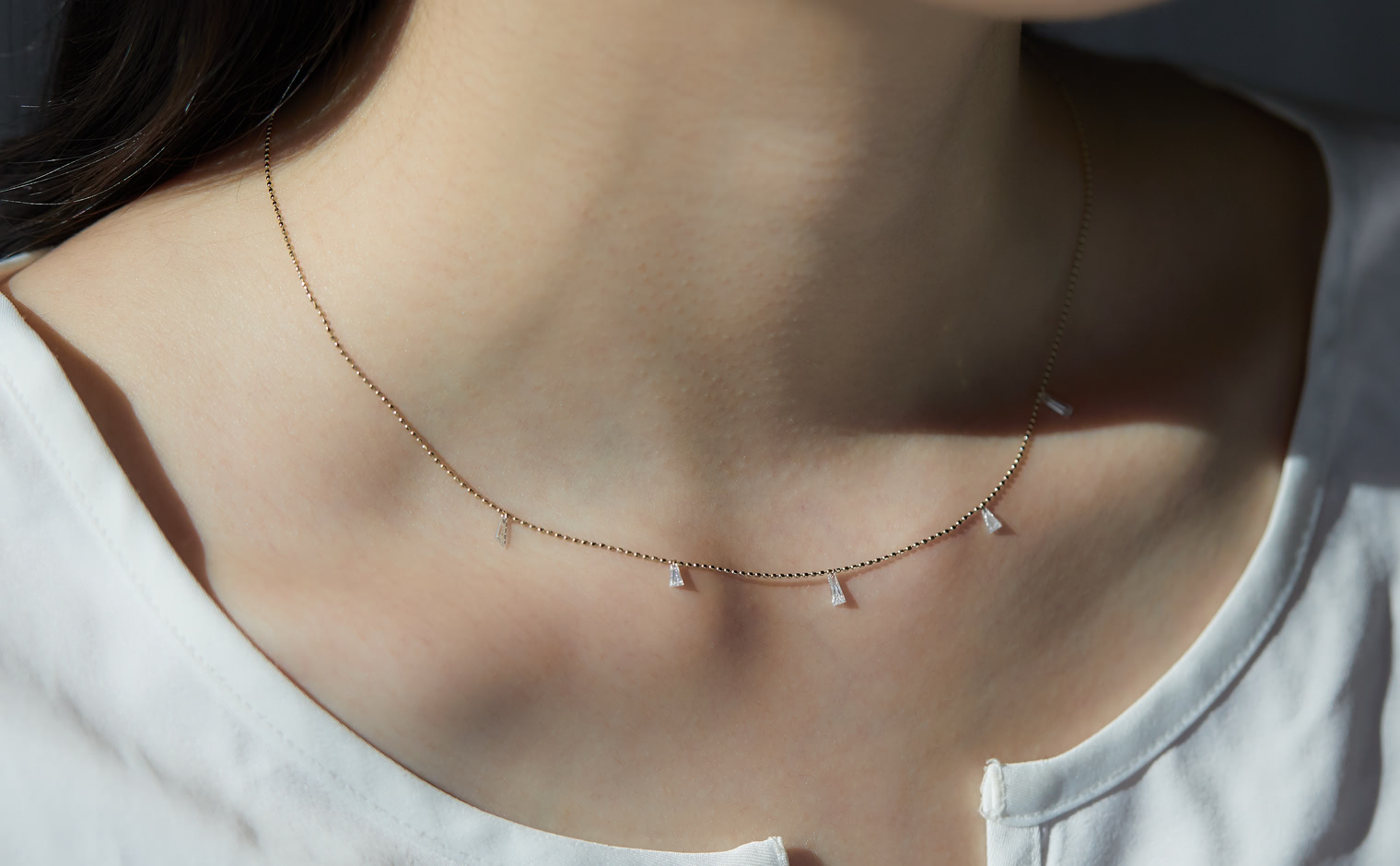 Light flows in a quiet cascade, where brilliance meets harmony. The Tapered Diamond Necklace evokes understated beauty and lasting grace.