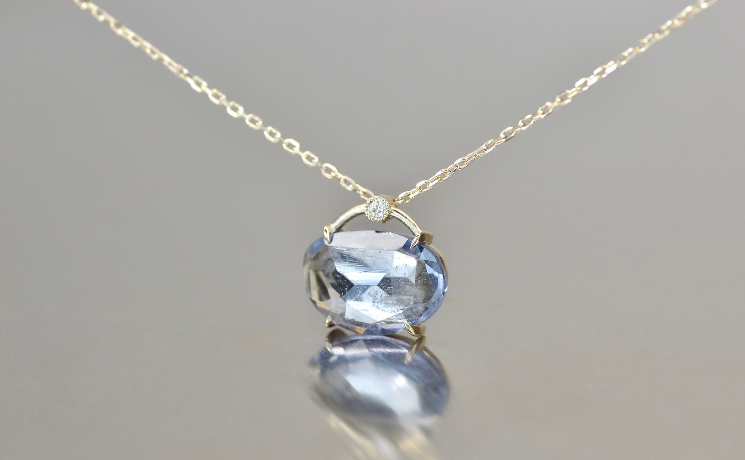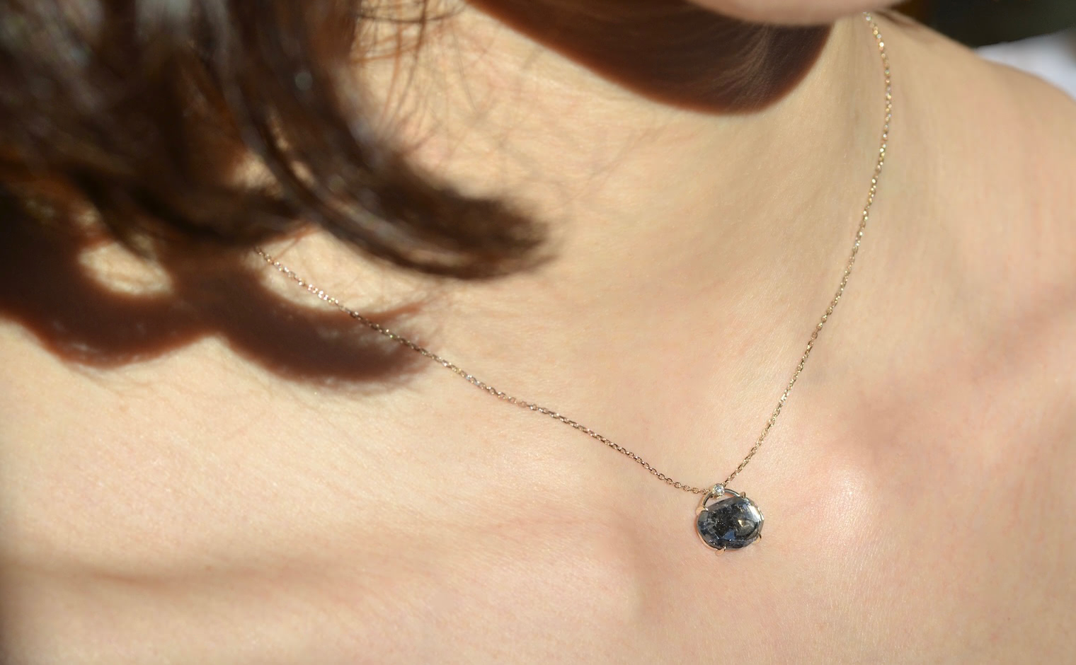 A moody, smoky blue tourmaline is selected by hand and expertly faceted to catch the light from every angle. High karat gold is sourced and blended to create custom hues, complimenting these natural gemstones perfectly. For complete freedom of length, a sliding lock mechanism has been engineered for everyday use, enabling the edginess of a beautiful choker-style statement or a classic, elegant approach.