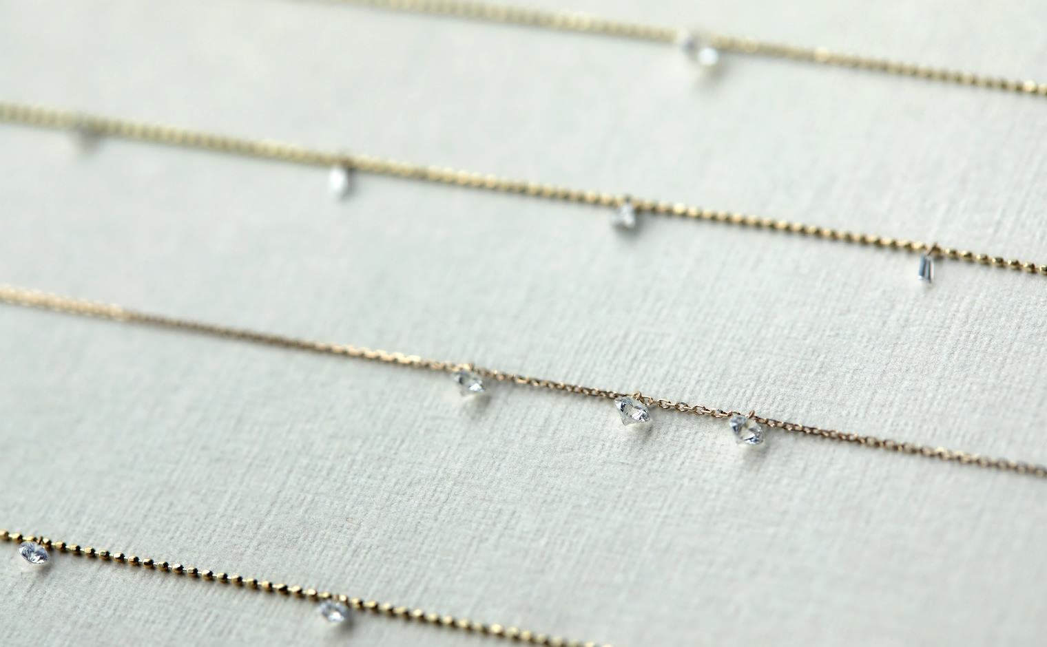Sliding freely along a thin chain these stones seem to dance and play while you move, capturing the light and stealing the show.