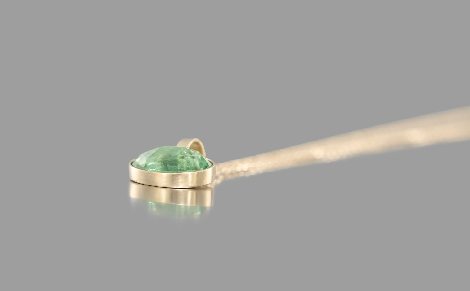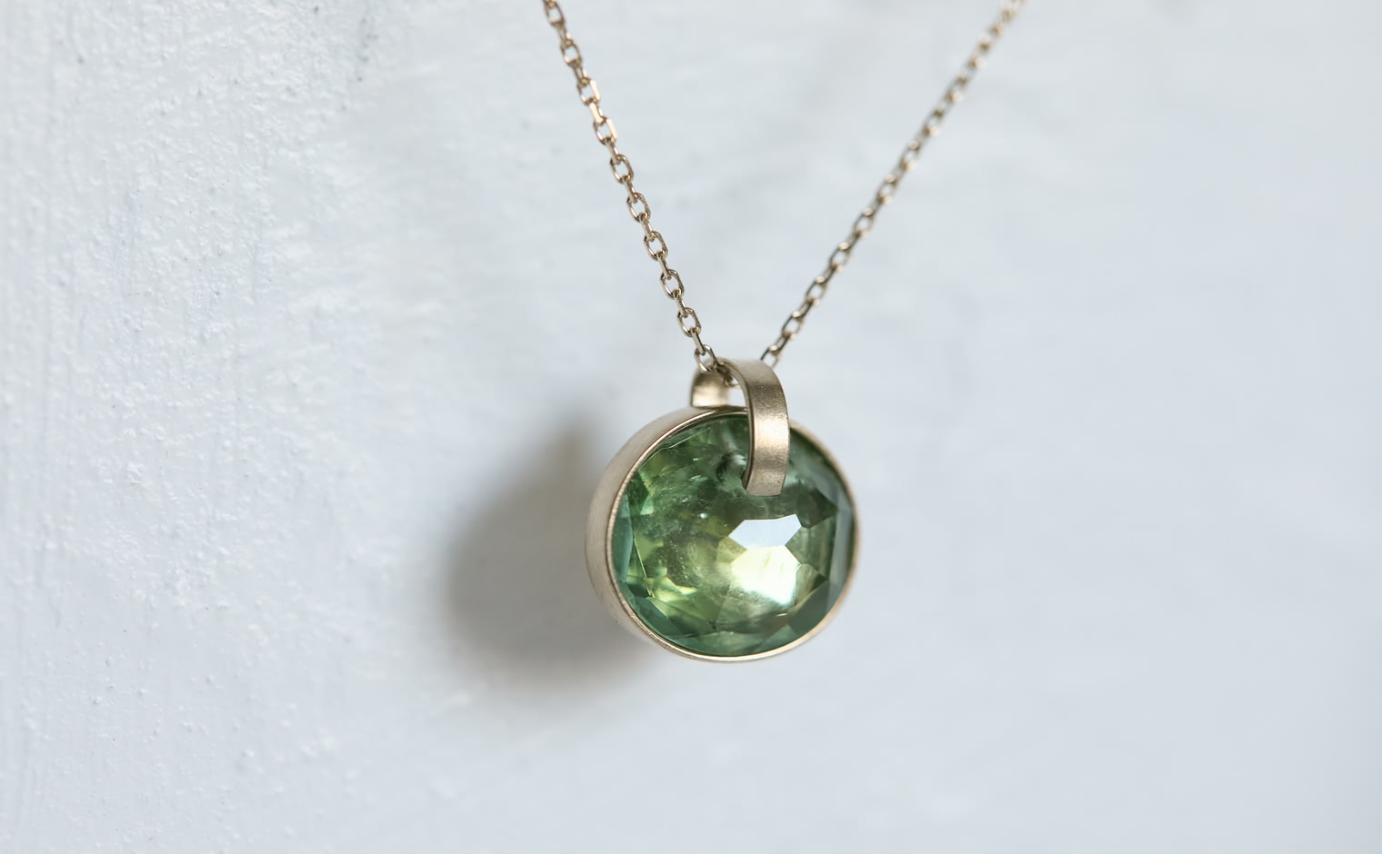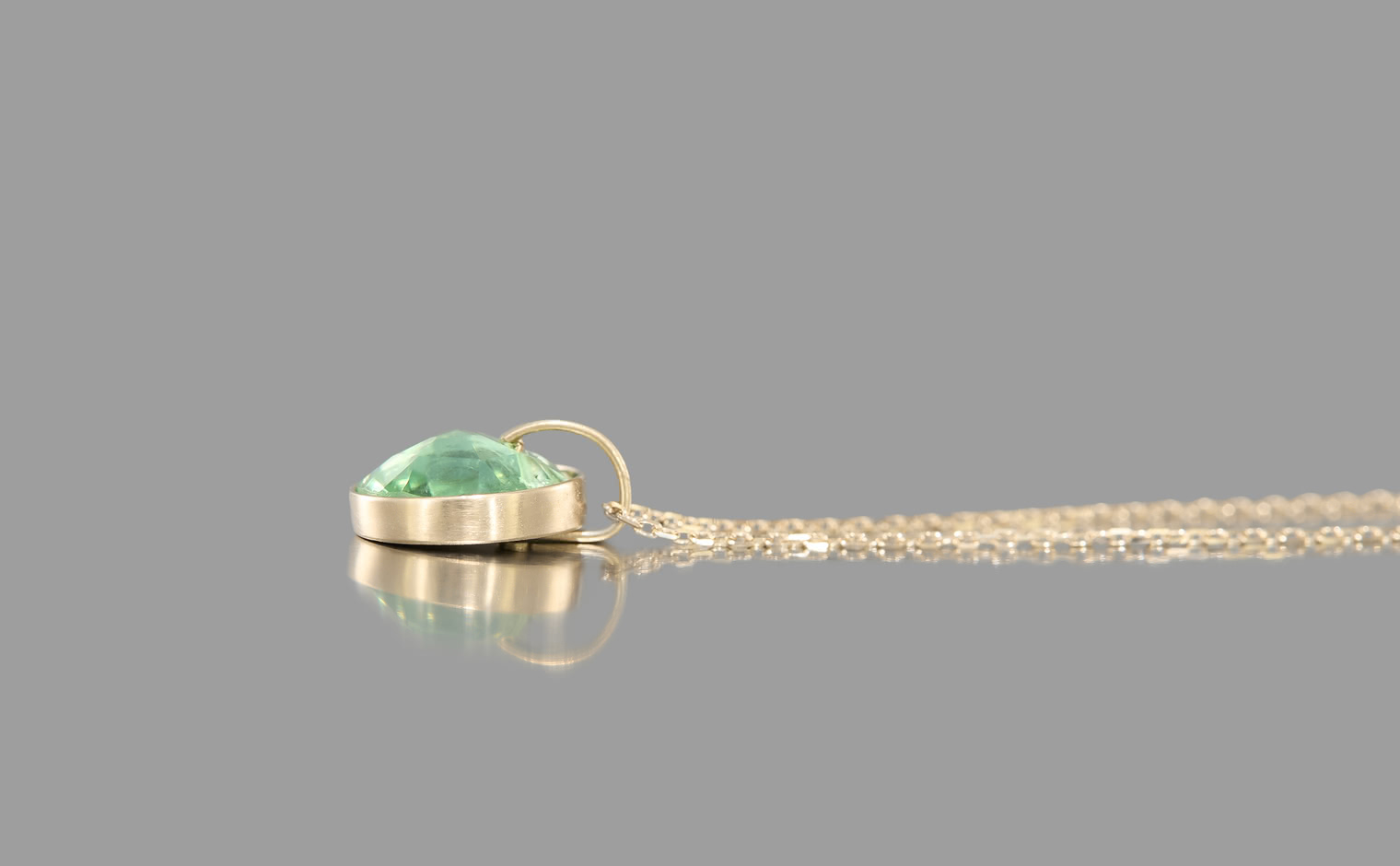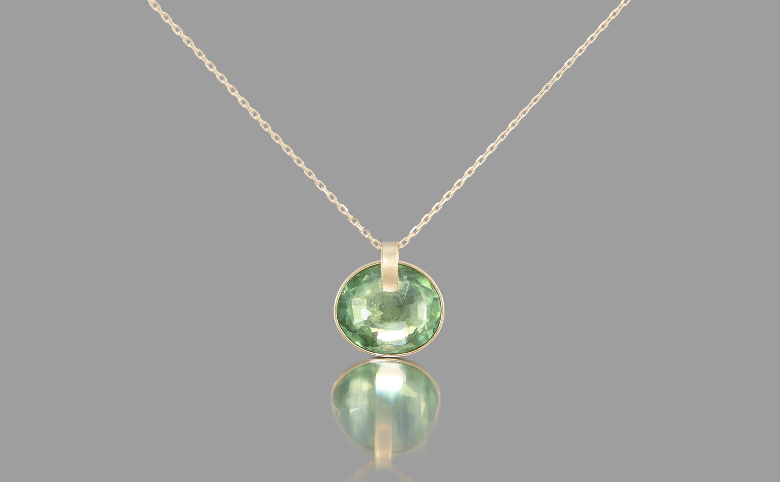 A tourmaline steeped in forested calm, its surface exuding quiet richness. The Verdance Tourmaline Necklace reflects serene depth, a subtle expression of grounding beauty and inner stillness.