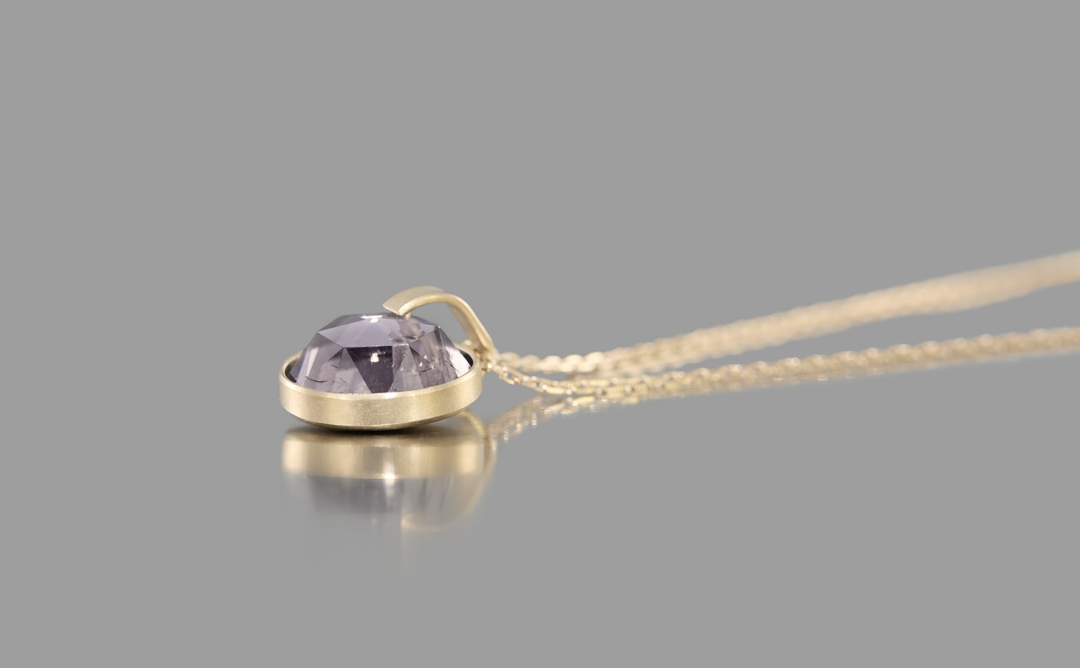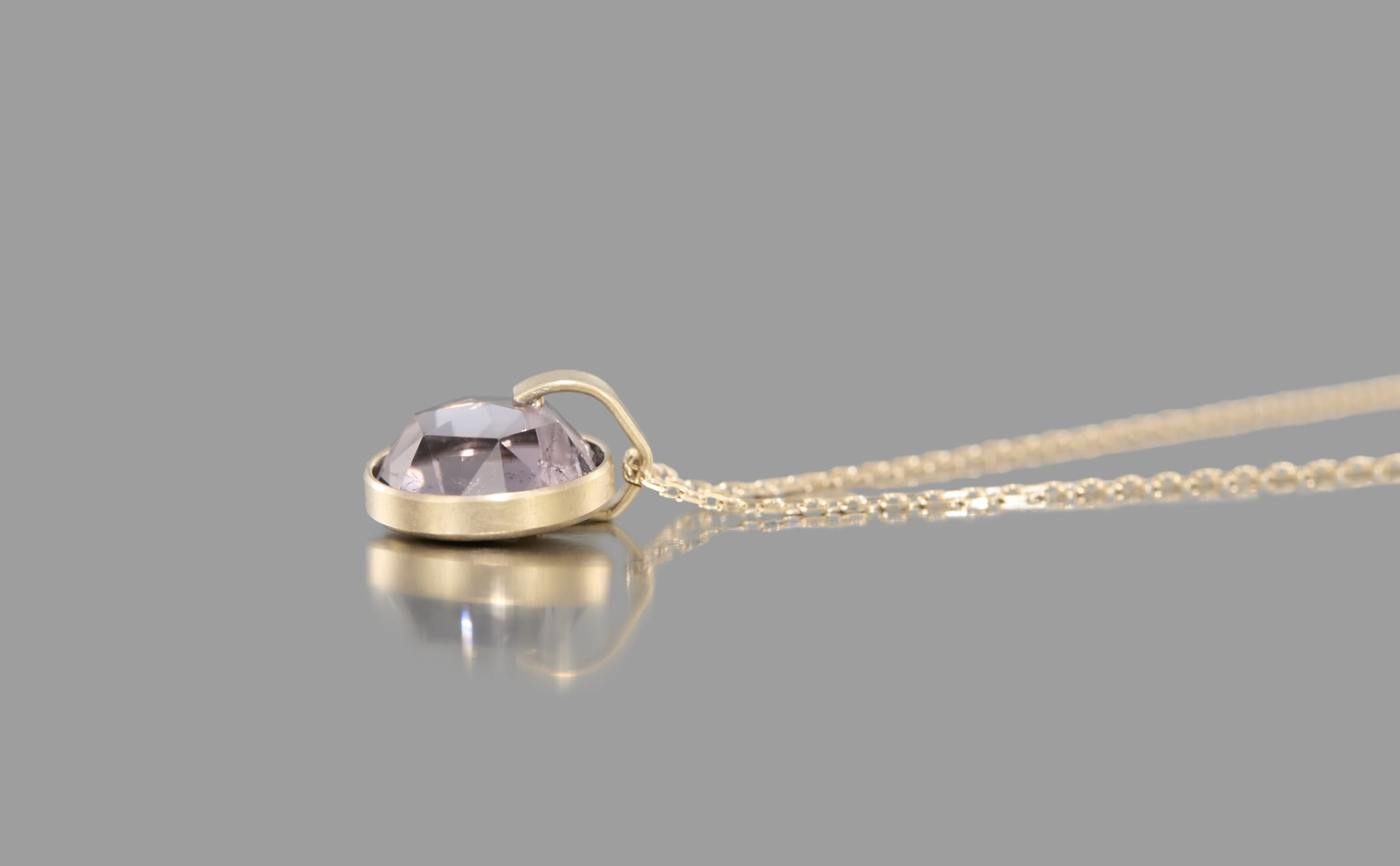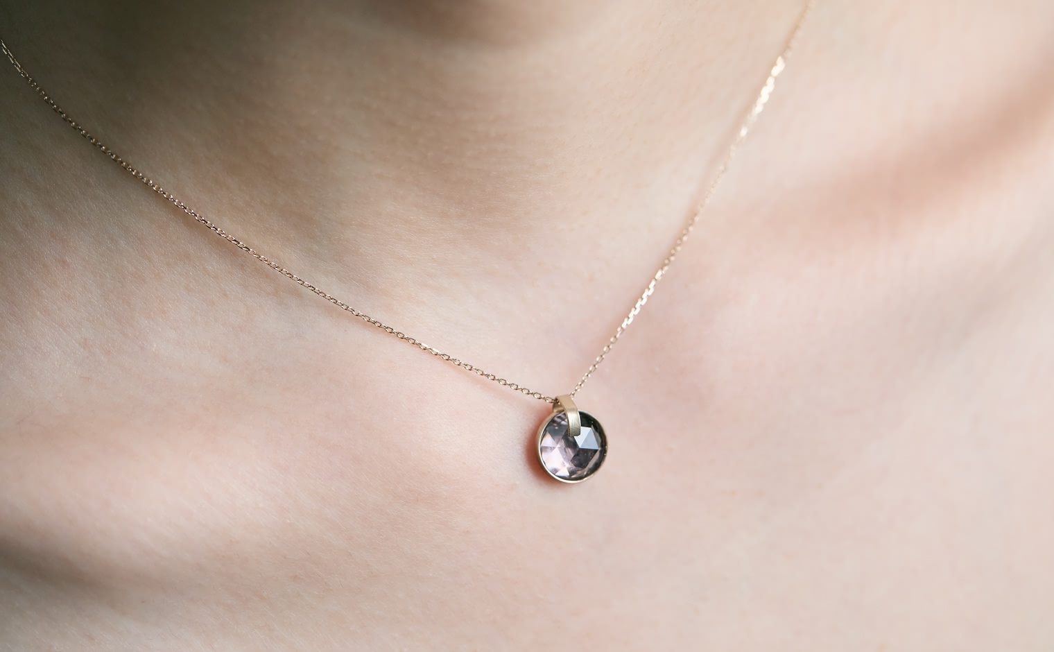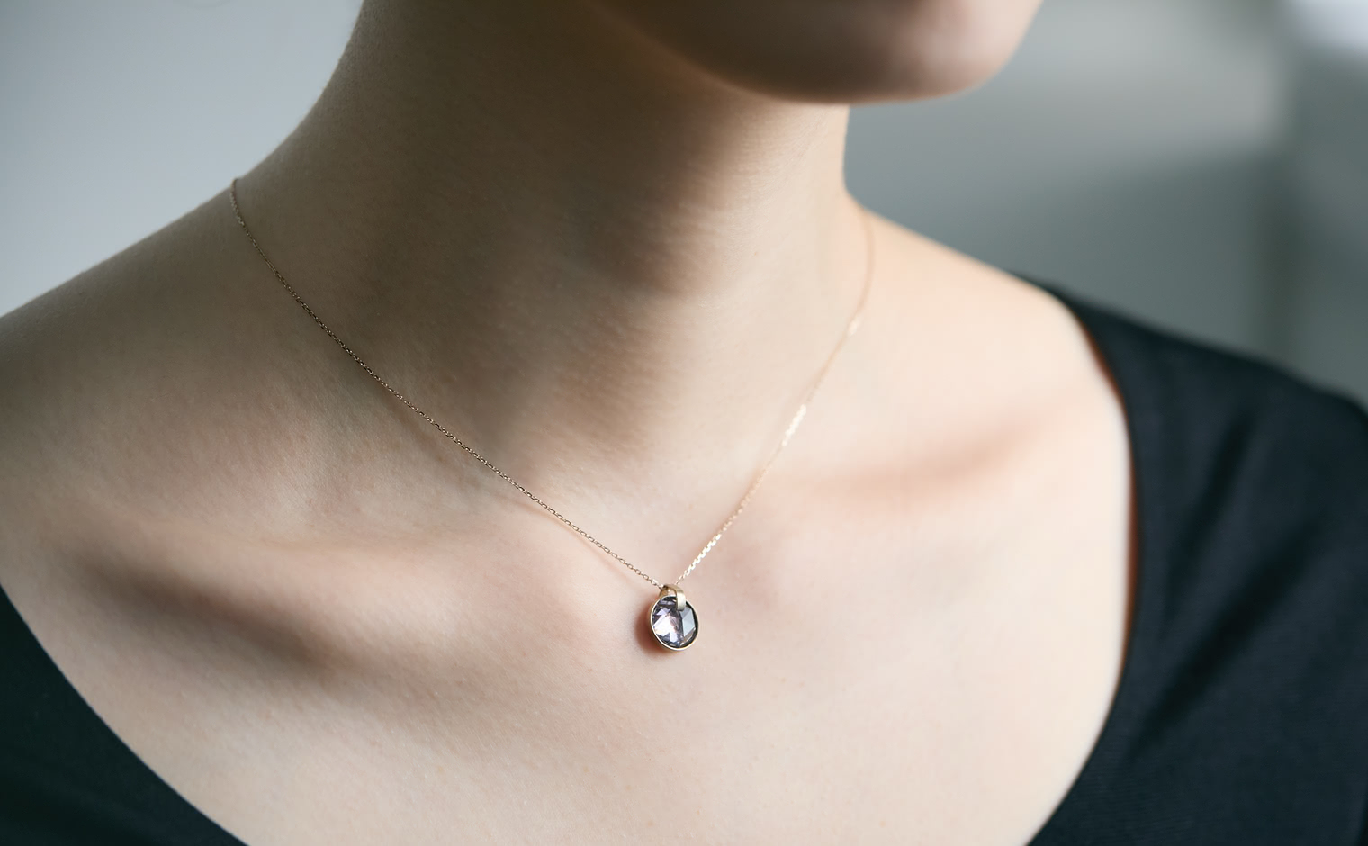 A tourmaline veiled in shadowed light, its tone deep and understated. The Vesper Tourmaline Necklace reflects quiet depth, a subtle expression of mystery and refined restraint.