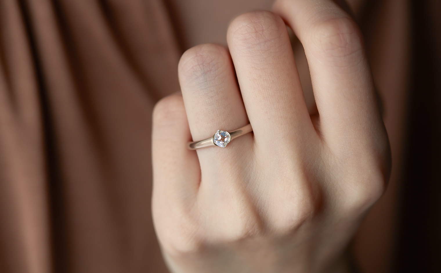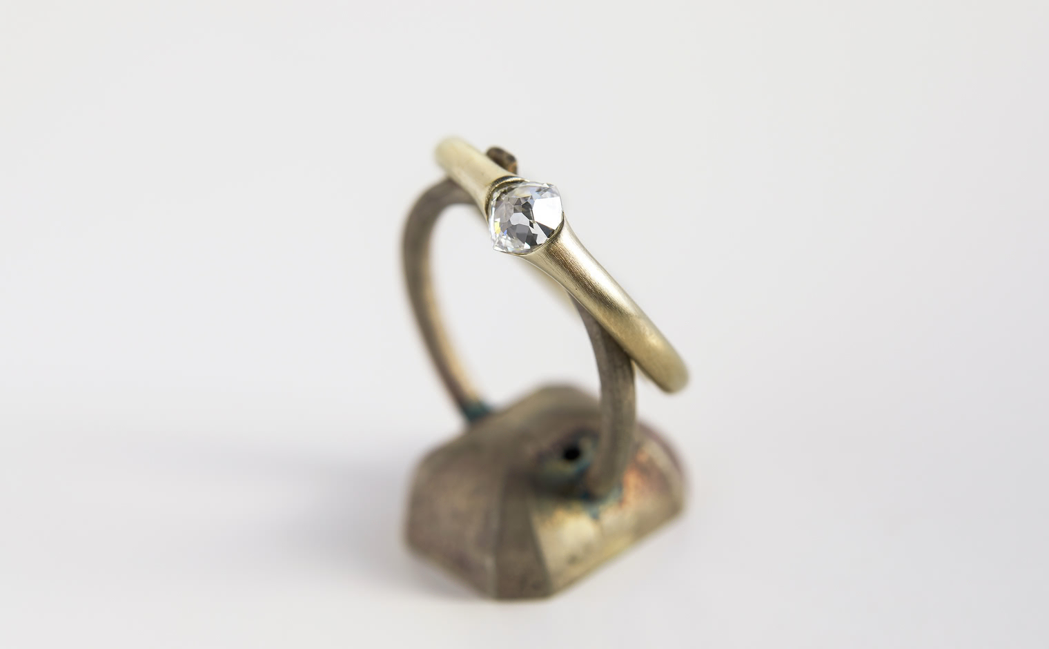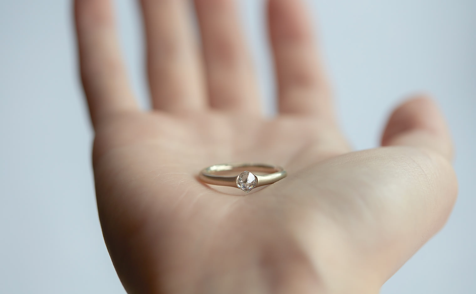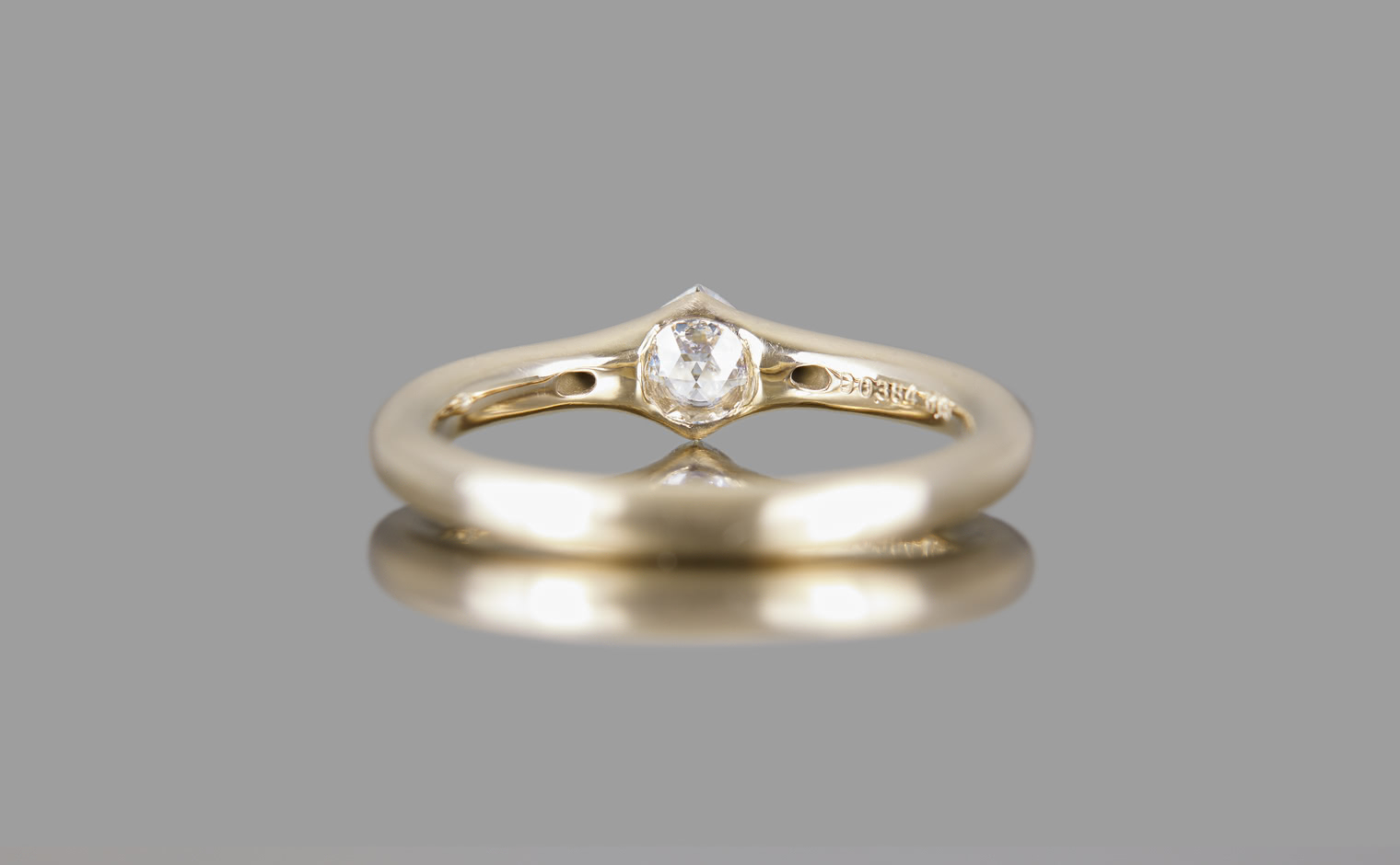 A Time for Pillow Talk. Let the radiant cushion-cut diamond take center stage as it nestles atop the delectable rose-cut diamond on a hand-polished beige gold band.