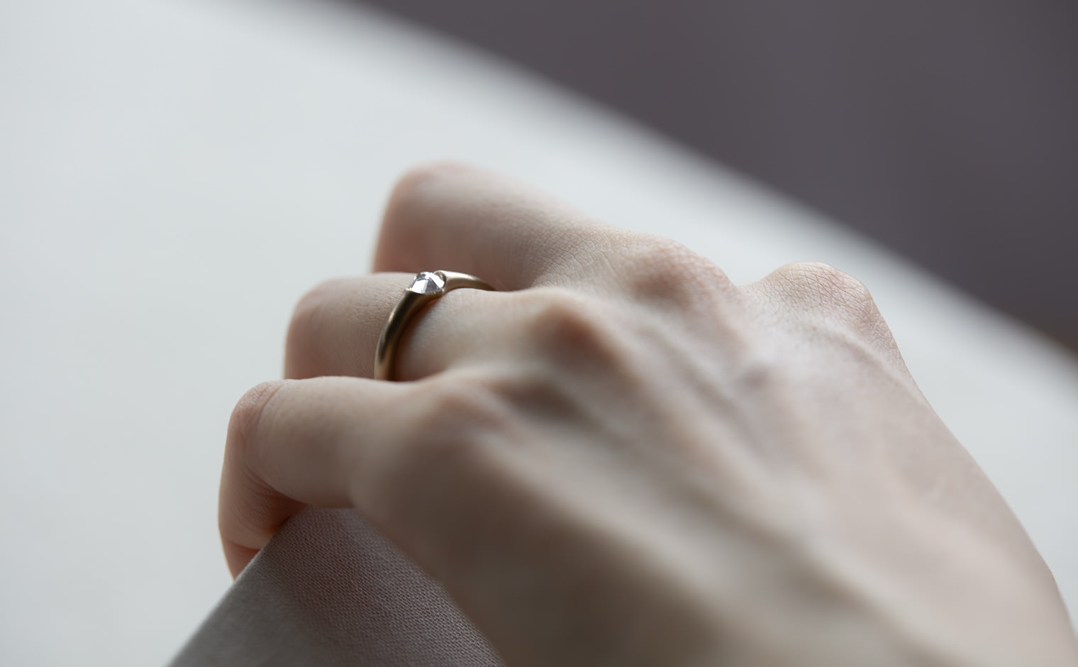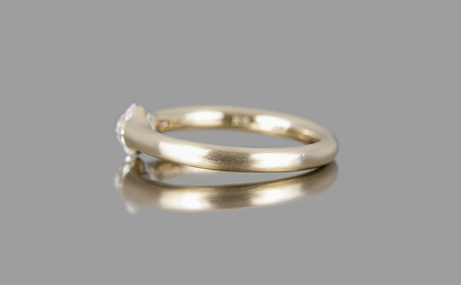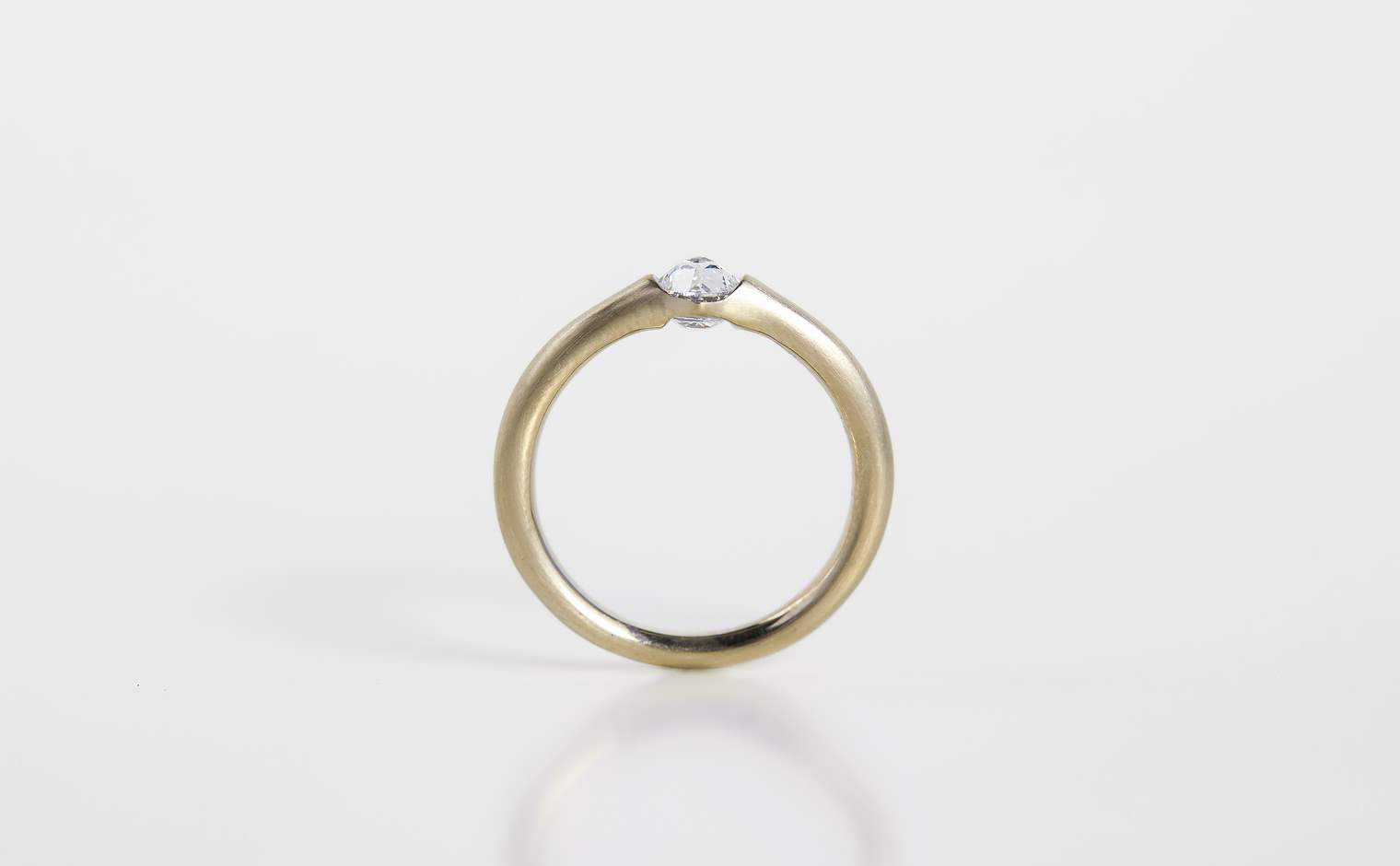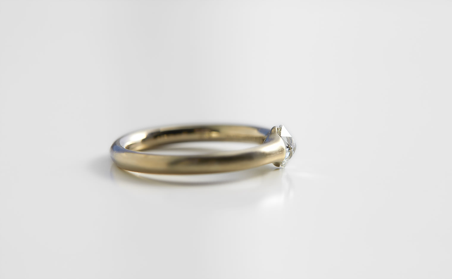 A Time for Pillow Talk. Let the radiant cushion-cut diamond take center stage as it nestles atop the delectable rose-cut diamond on a hand-polished beige gold band.