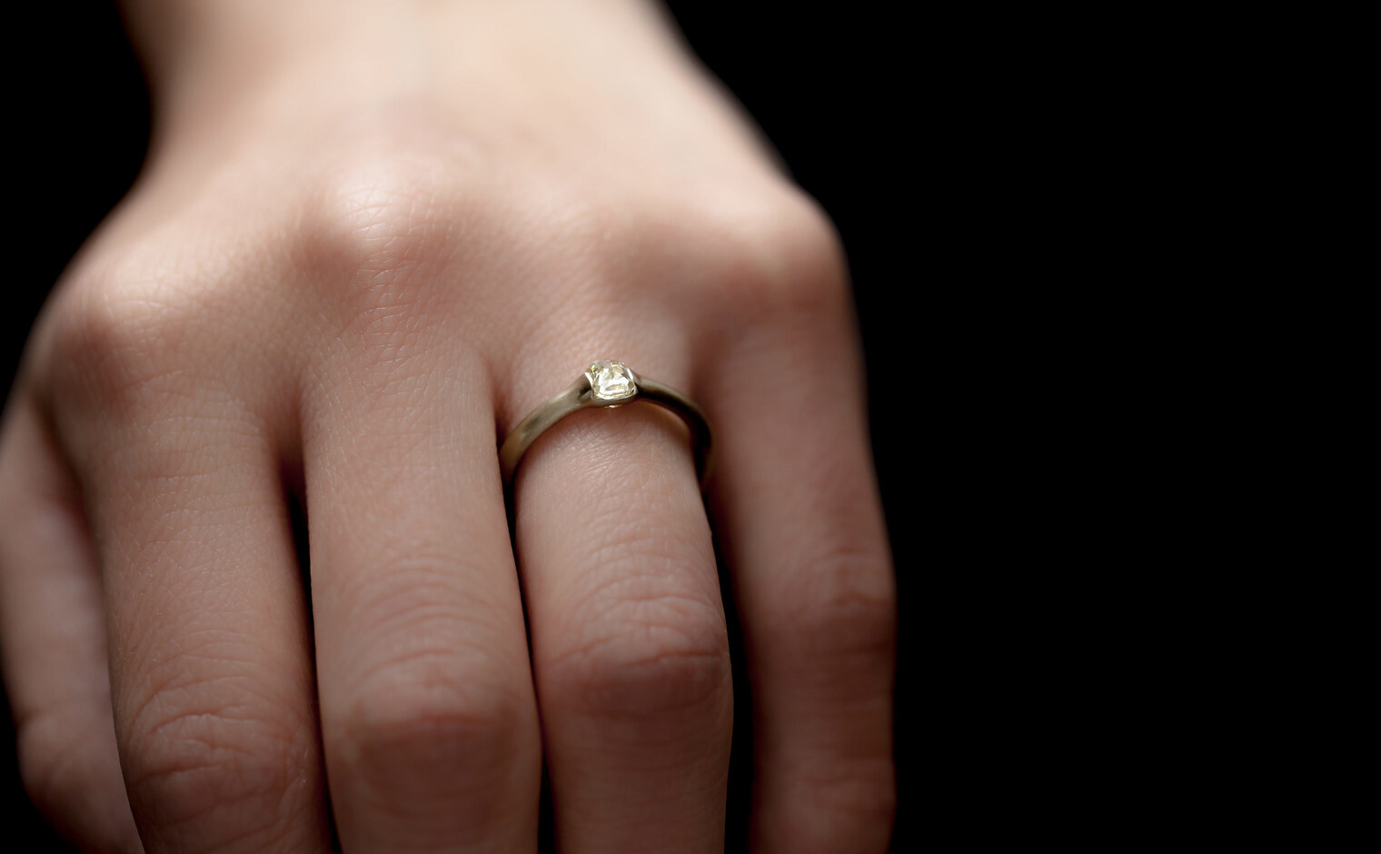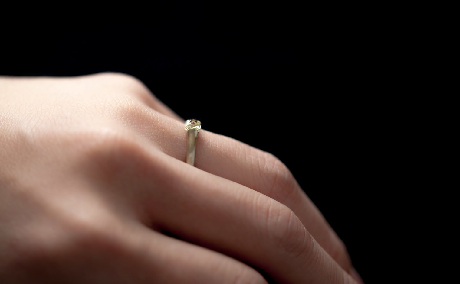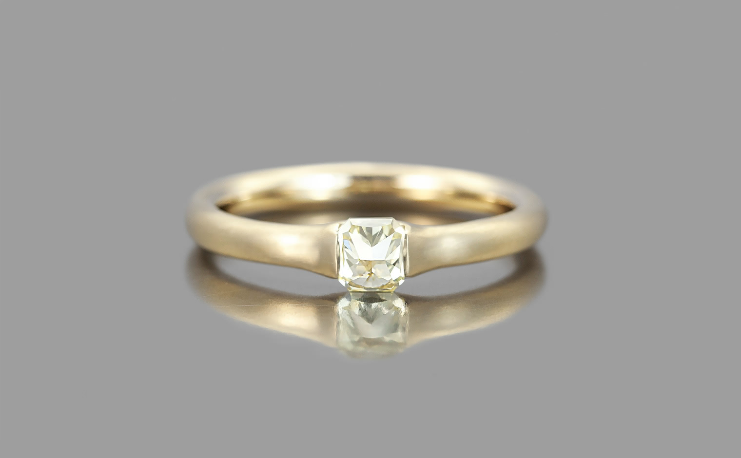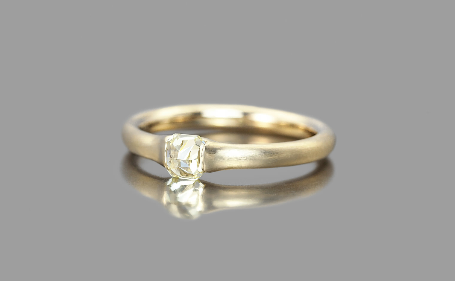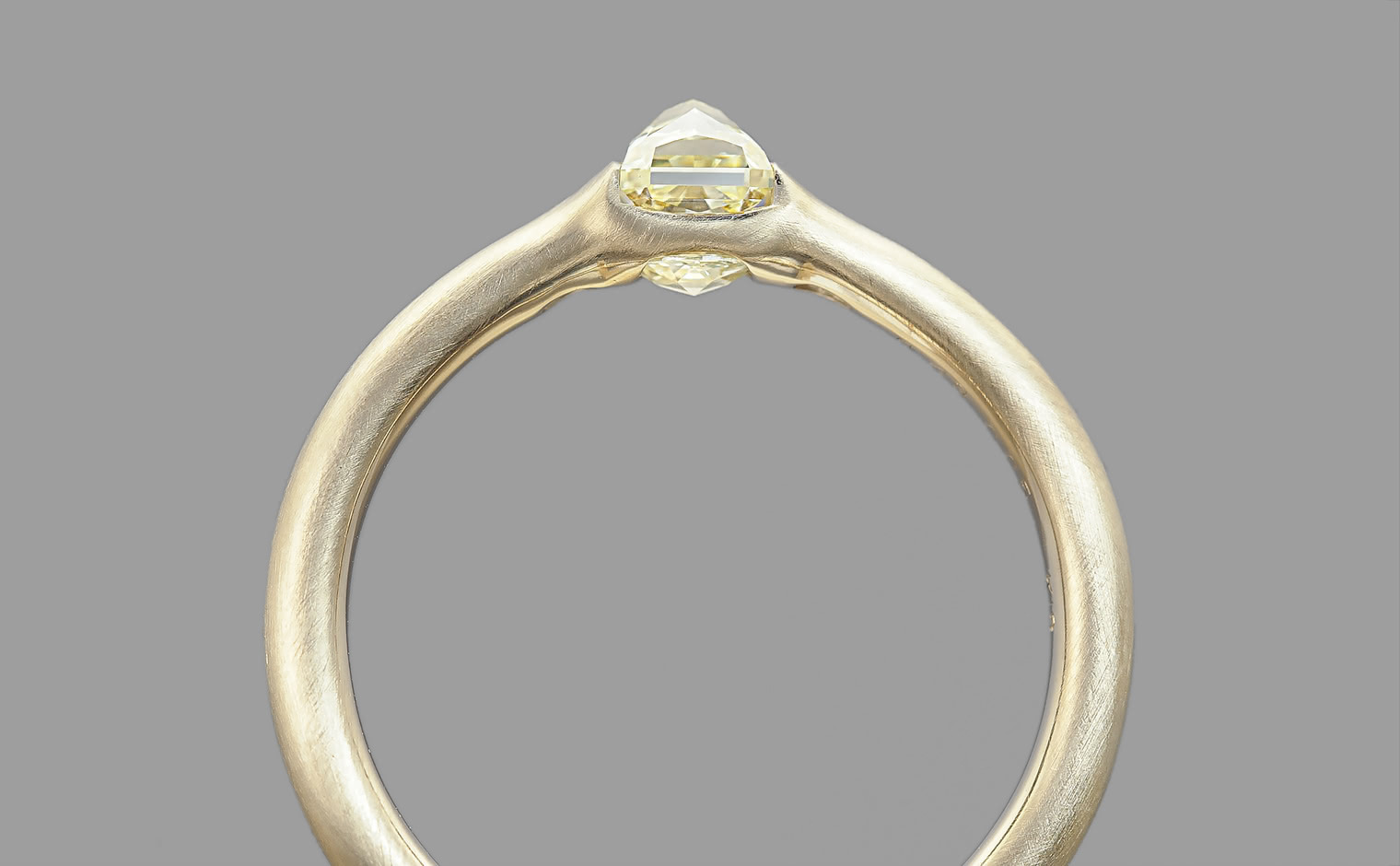 A striking colored diamond is hand-selected for its brilliance and cut to rise tall on your hand against a band of smooth-like-butter gold.This band, created from the highest quality gold is melded and then formed into shapes signature to kataoka; made to sit against the skin and become part of the wearer.