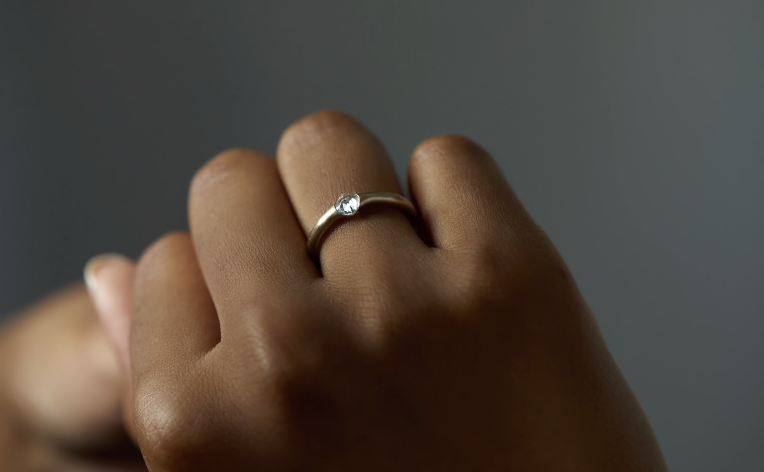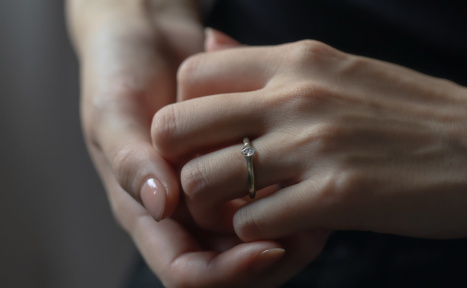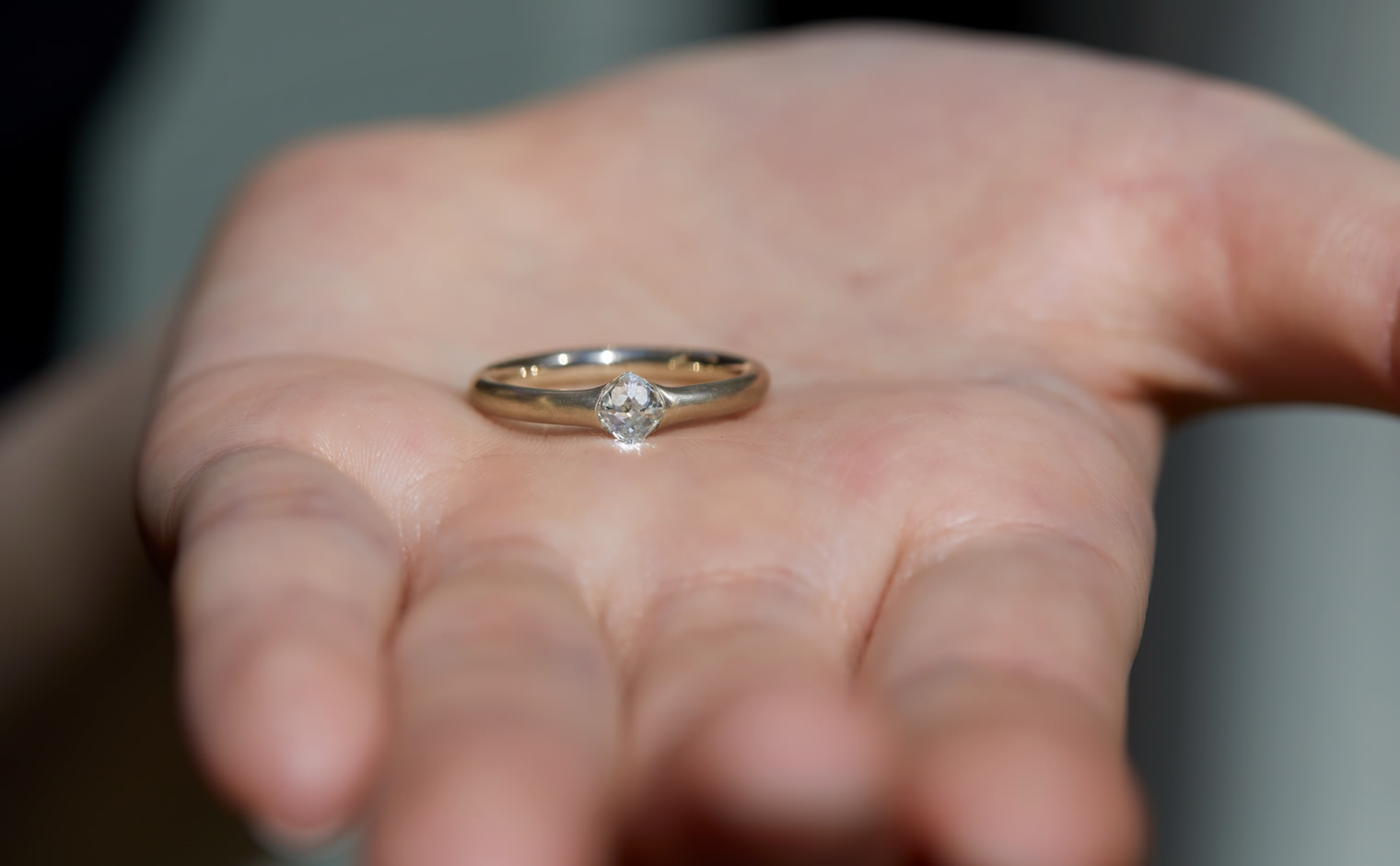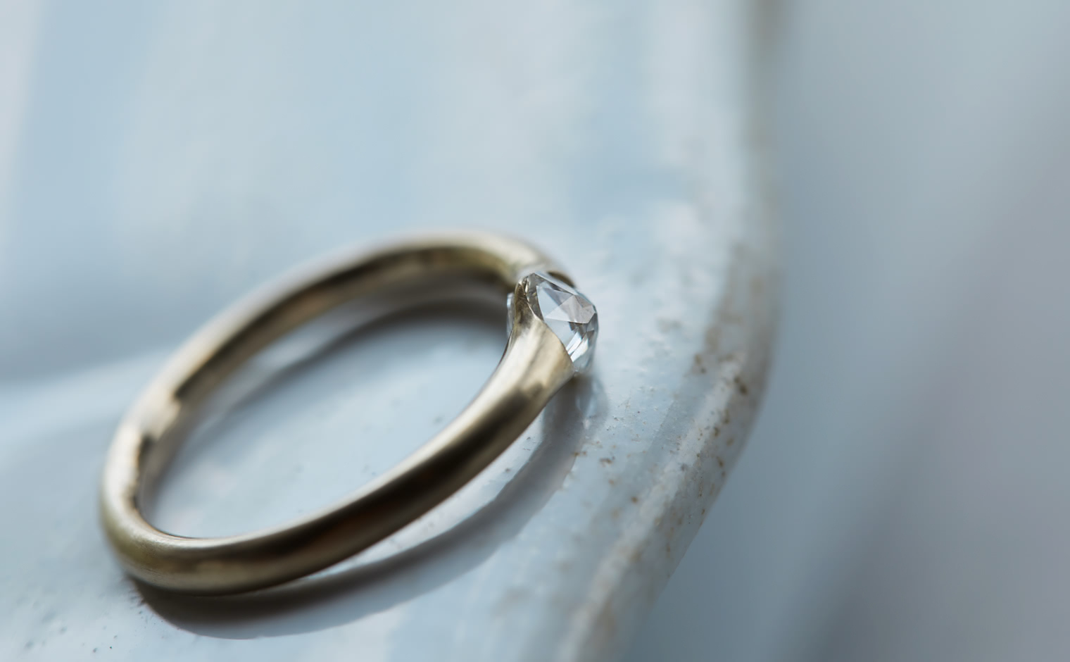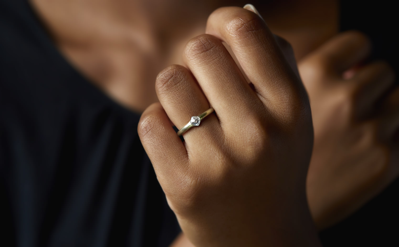 Back-to-back brilliance. With its two pristinely dazzling hand-cut diamonds set back-to-back with their culets exposed, one center and one under, embedded in the middle of a wide, partially polished band, the Diamond Adamas Ring–Iceberg denotes the timeless truth, that love must be strong and pure.